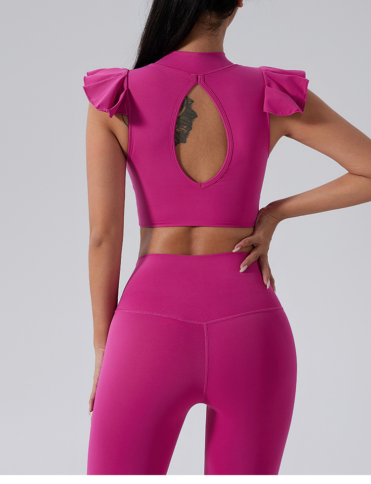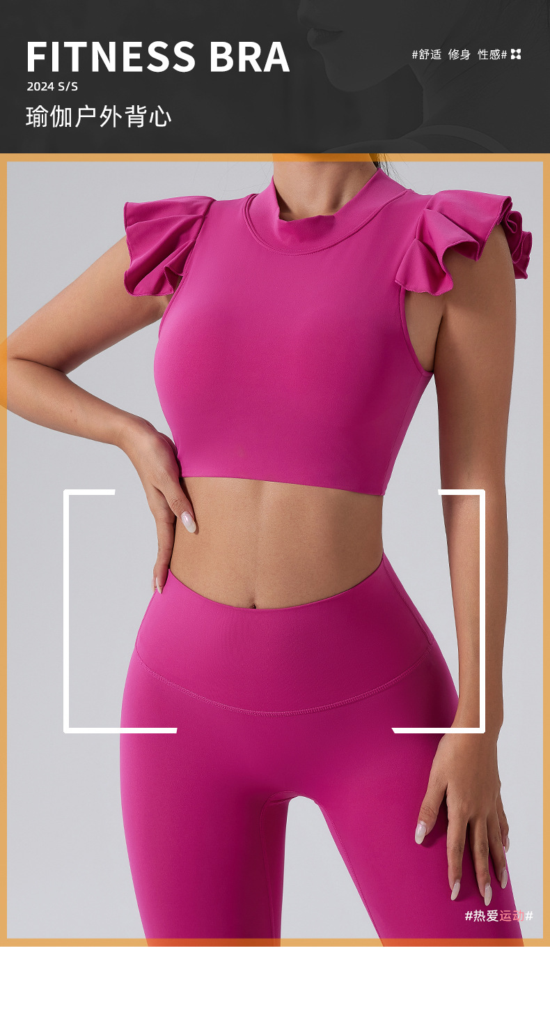 跃牌【洛水之神系列】高级裸感荷叶边瑜伽上衣女显瘦美背瑜伽健身文胸背心SY733