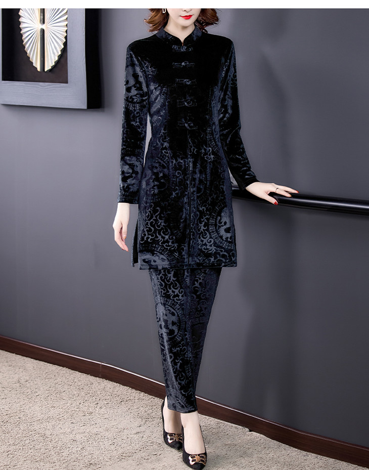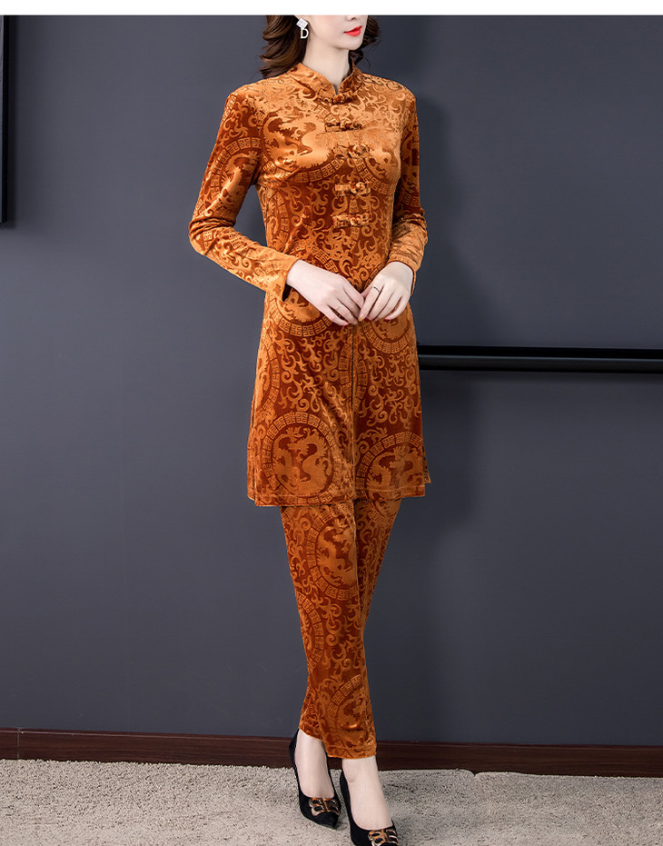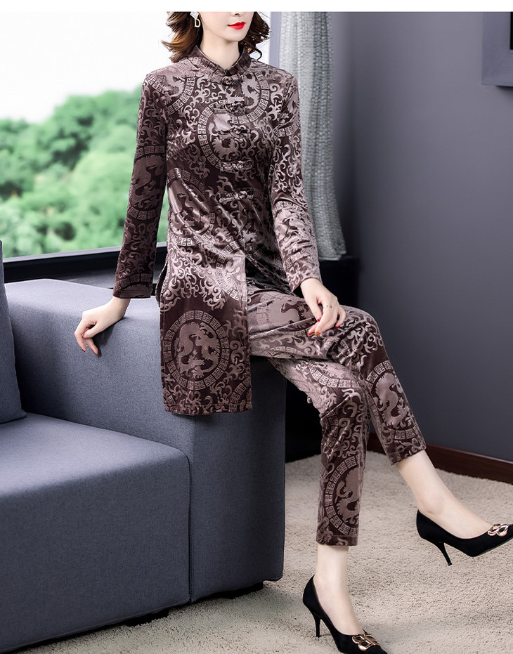 XTH-5999时尚印花金丝绒两件套新款妈妈气质女神范洋气套装