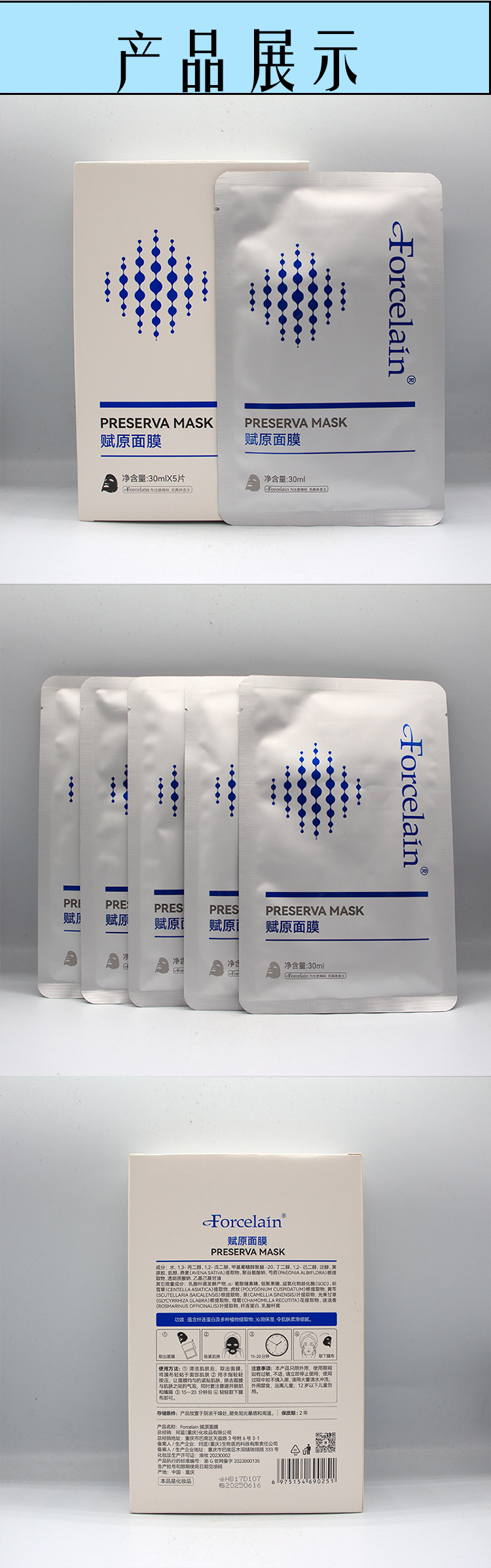 珂蓝蜜肌 肌肤医生 芙瑟琳新品赋原面膜30ml*5p纤连蛋白焕新面膜正品包邮补水保湿