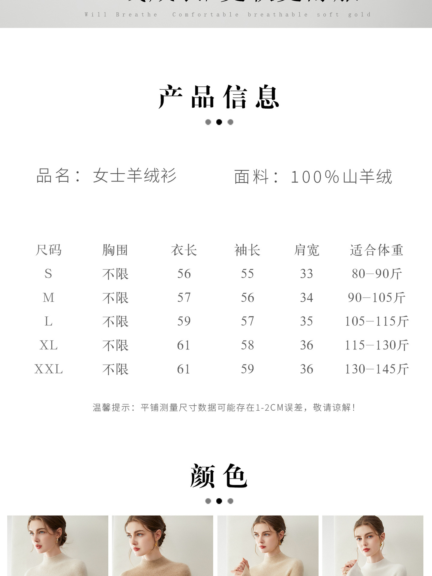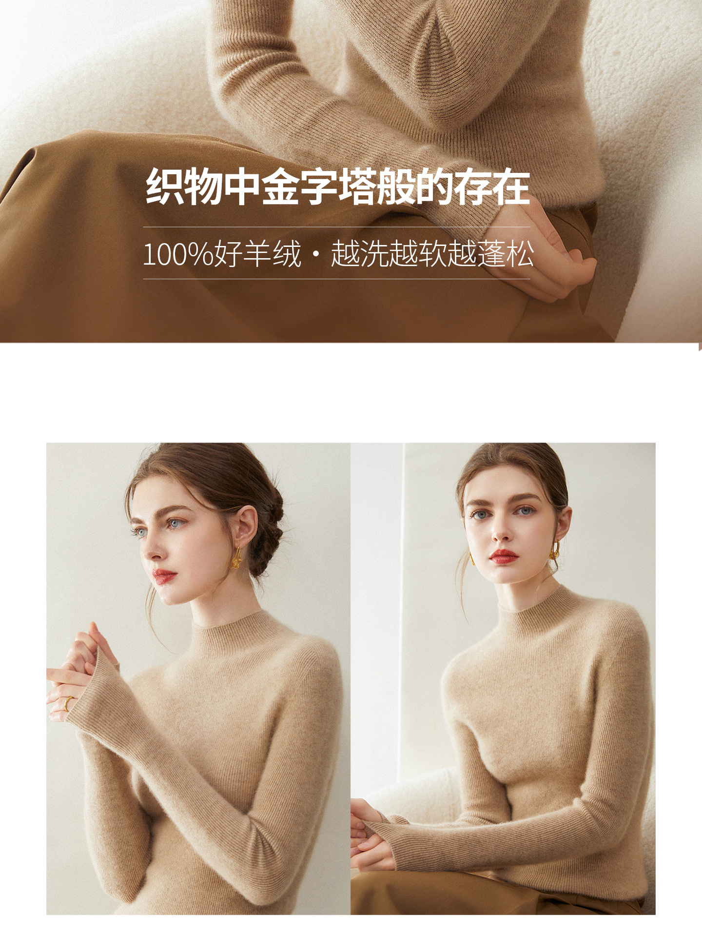 丁摩 100%山羊绒女士羊绒打底衫半高领针织衫ML5036