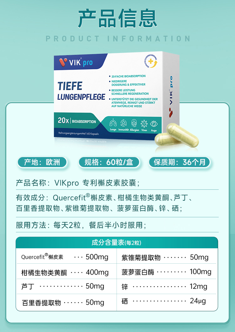 【瘦龙】VIKpro专利肺立清槲皮素 60粒