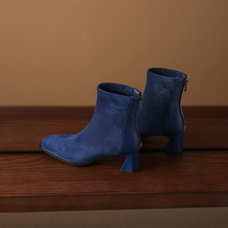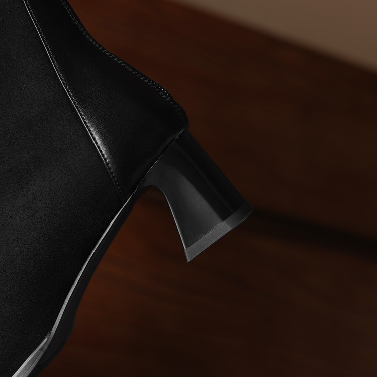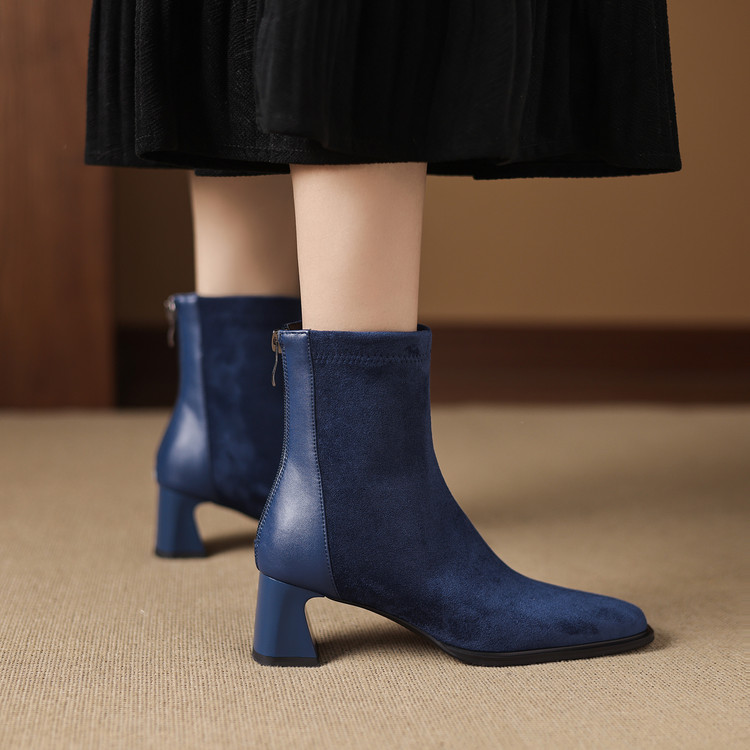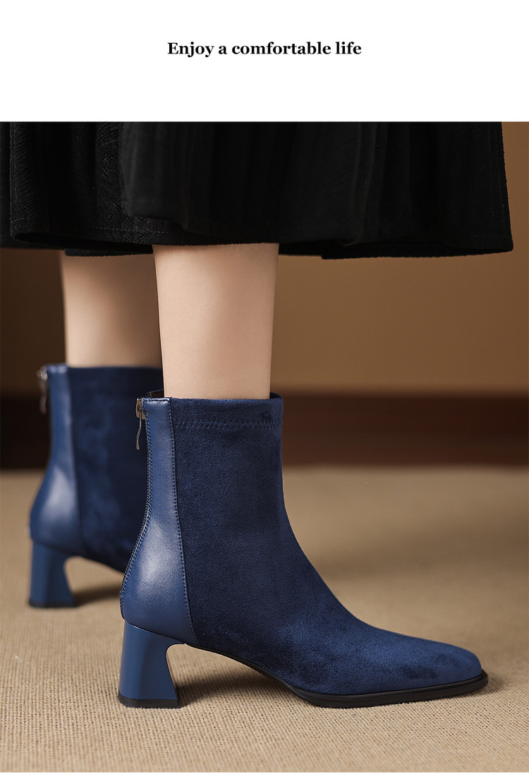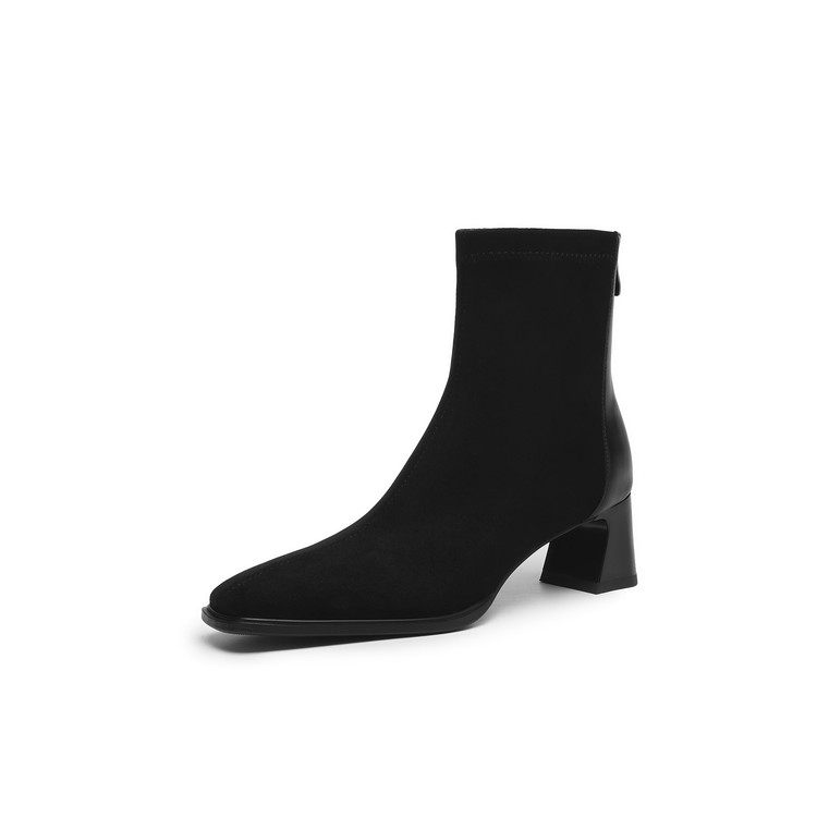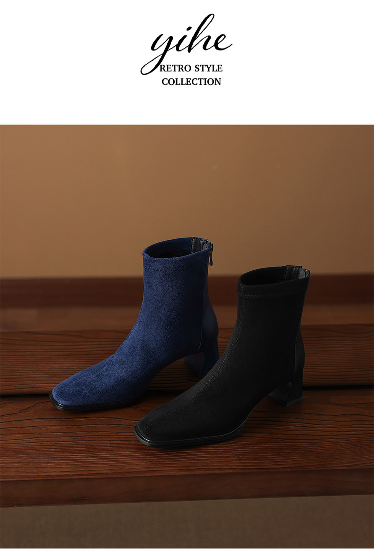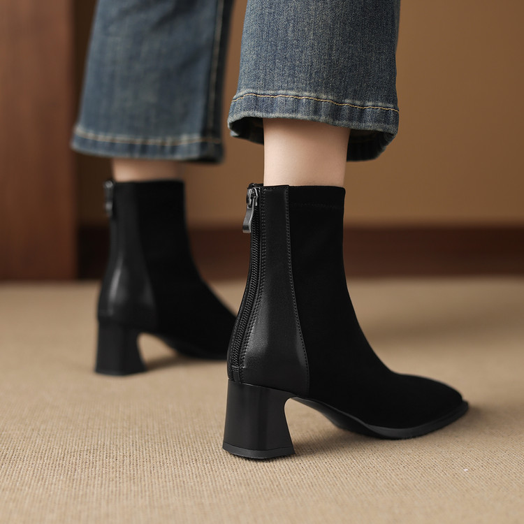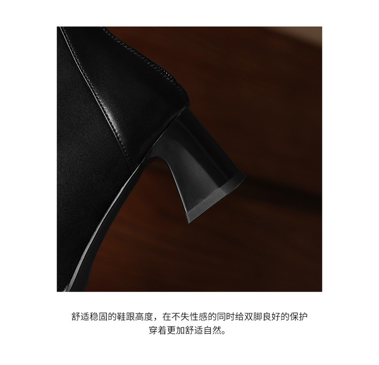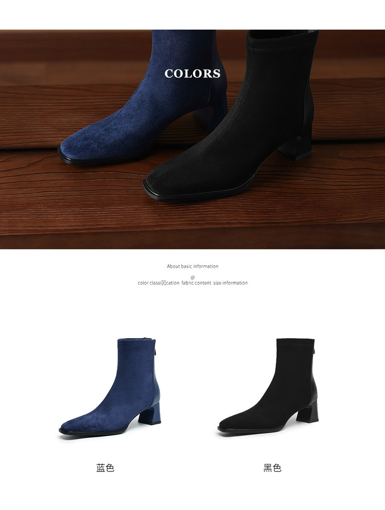【预售5天】复古风百搭高跟短靴女秋冬新款方头时尚拼接粗跟时装靴瘦瘦靴AJ&JL-838
