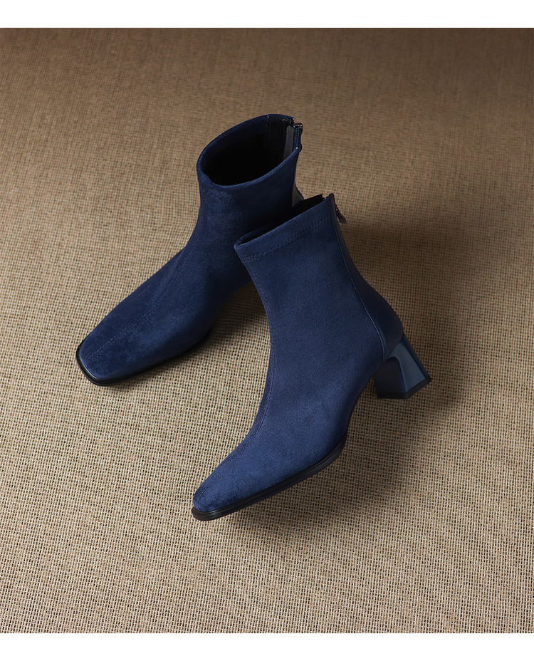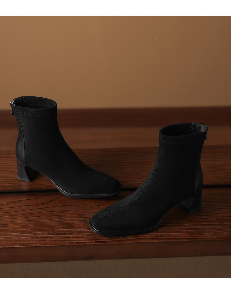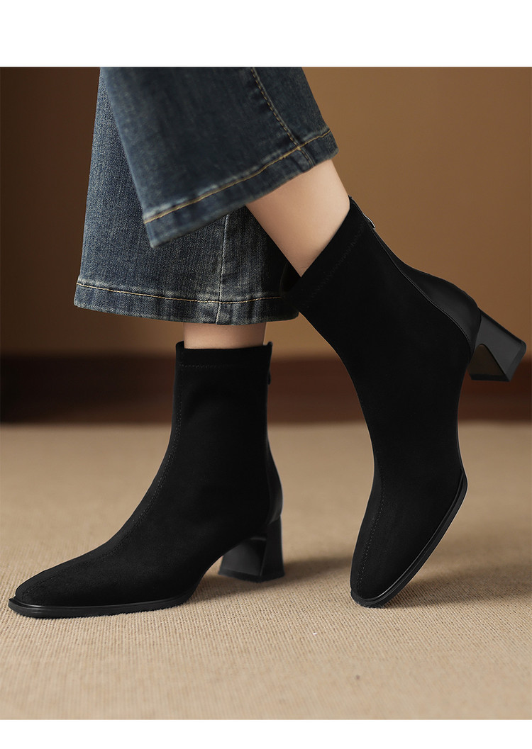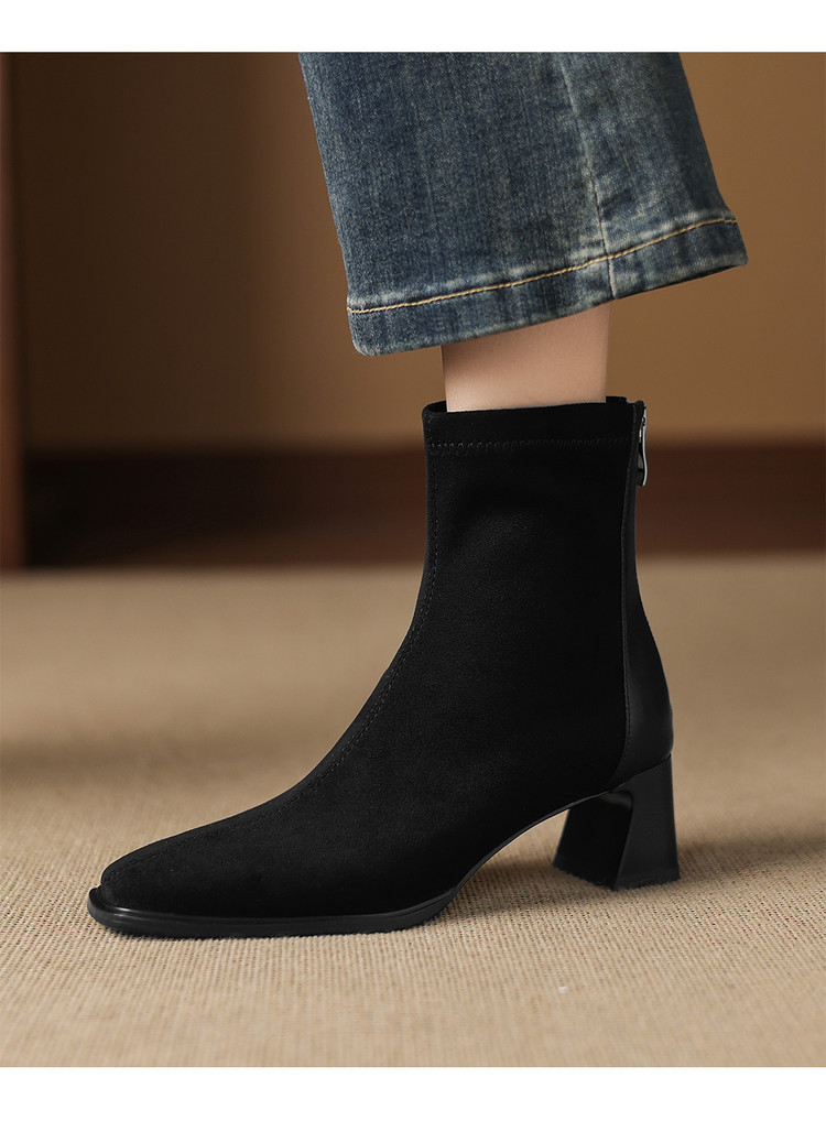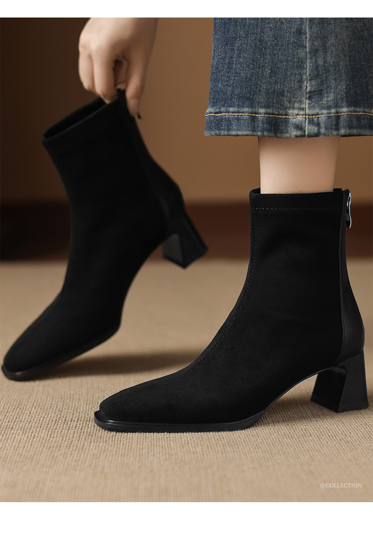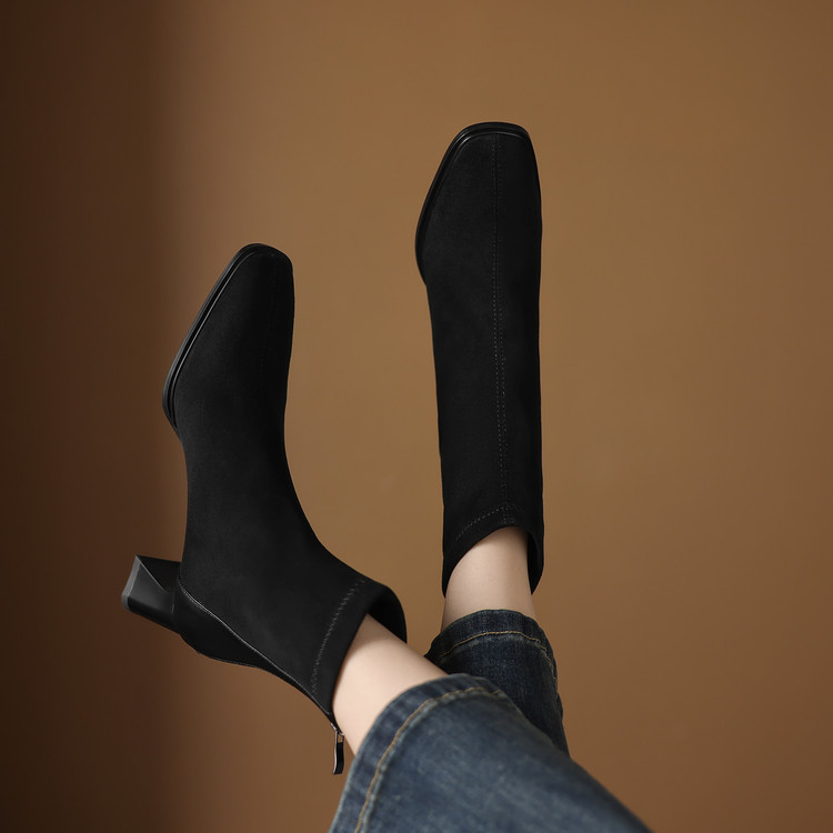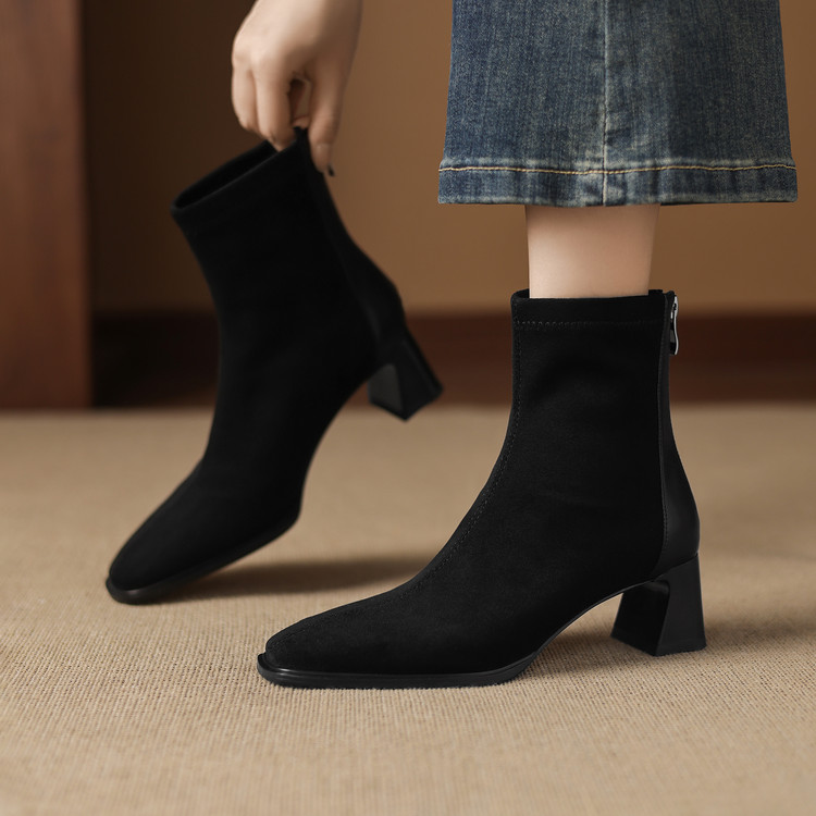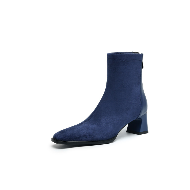 【预售5天】复古风百搭高跟短靴女秋冬新款方头时尚拼接粗跟时装靴瘦瘦靴AJ&JL-838
