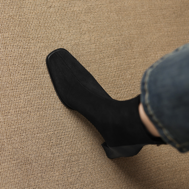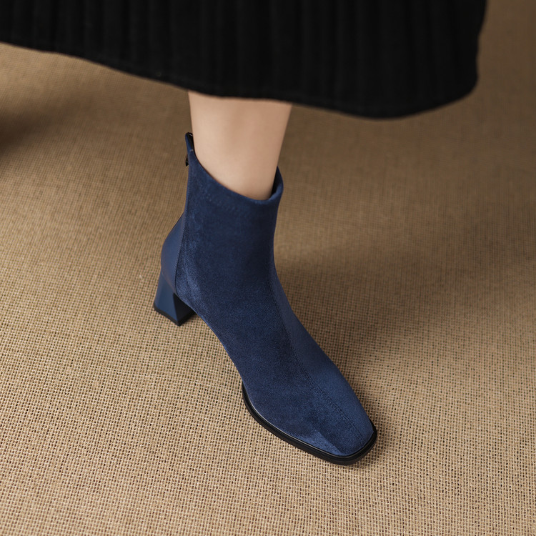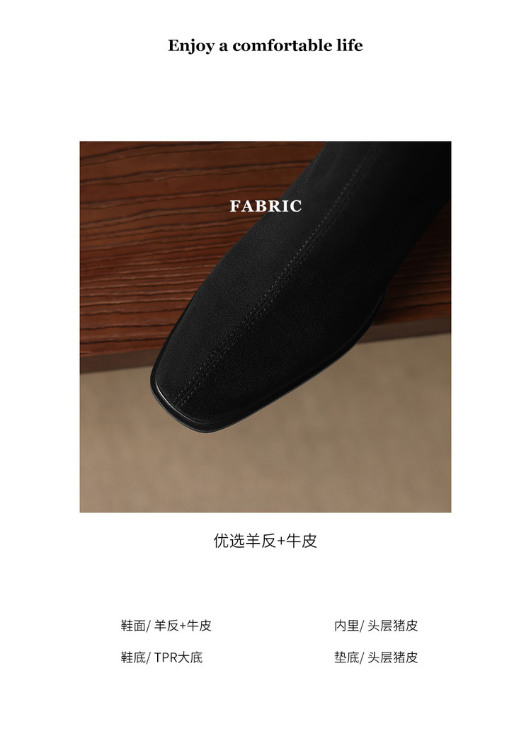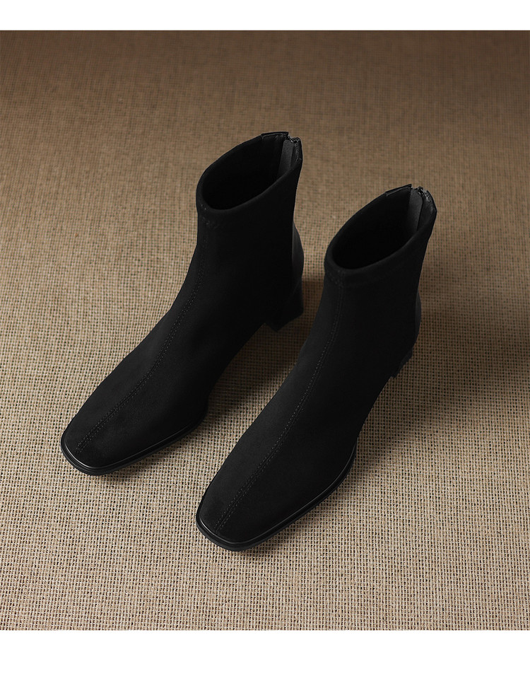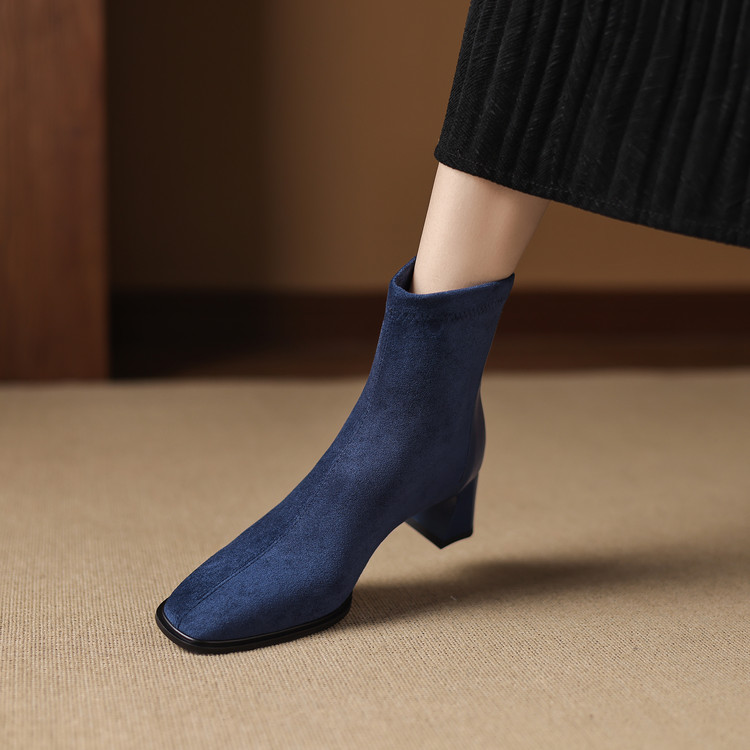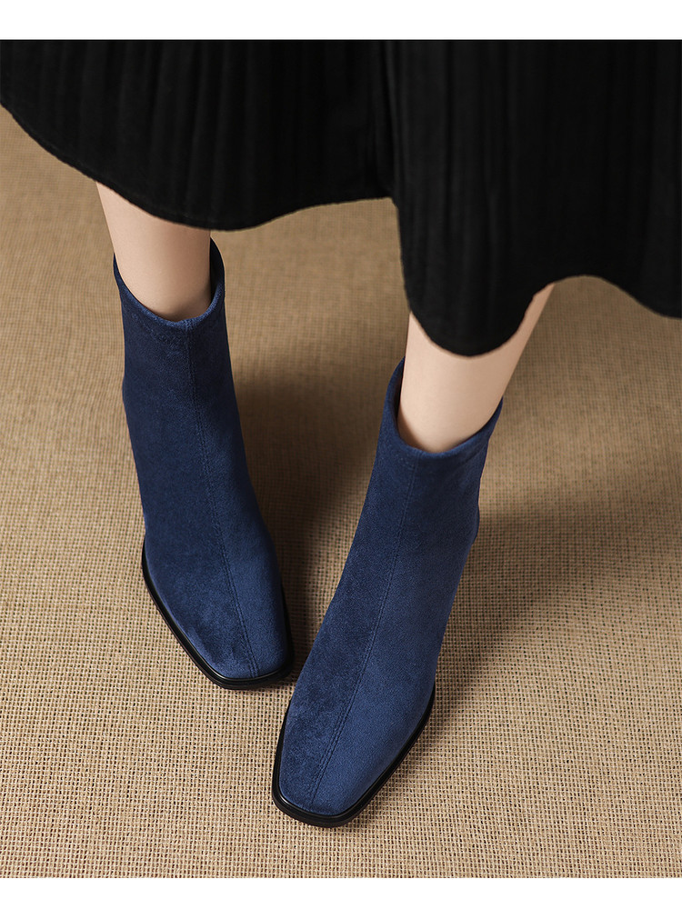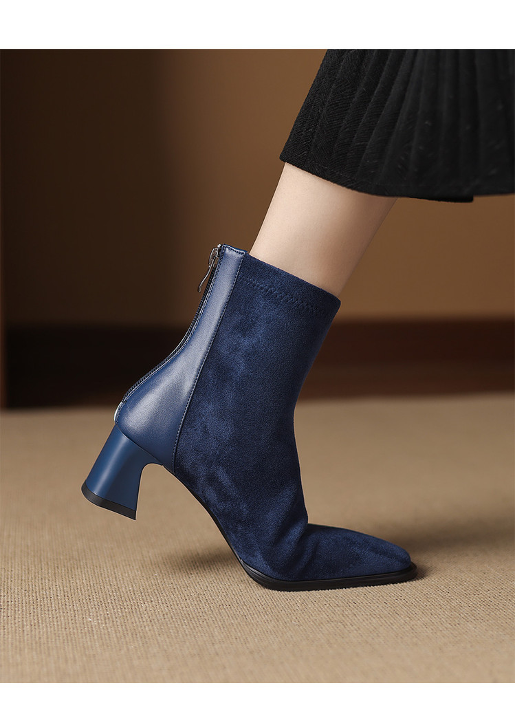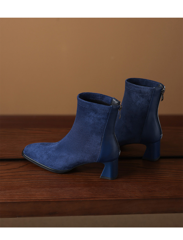 【预售5天】复古风百搭高跟短靴女秋冬新款方头时尚拼接粗跟时装靴瘦瘦靴AJ&JL-838
