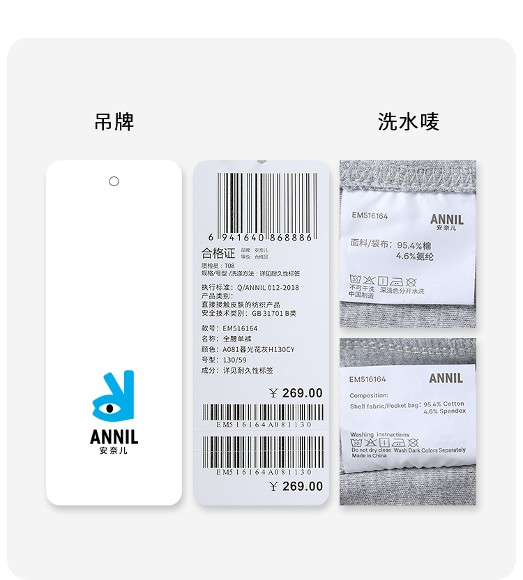 男女童全腰针织单裤春季新款安奈儿童装EM516164