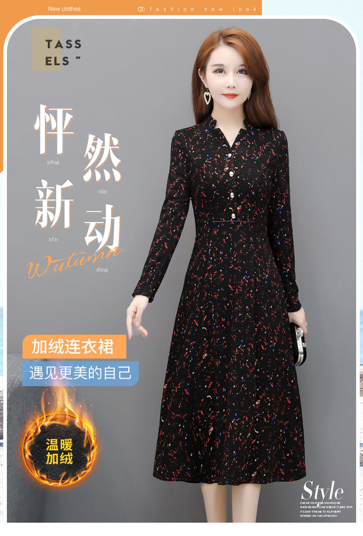 YW-TYH9912修身显瘦加绒加厚气质优雅保暖连衣裙
