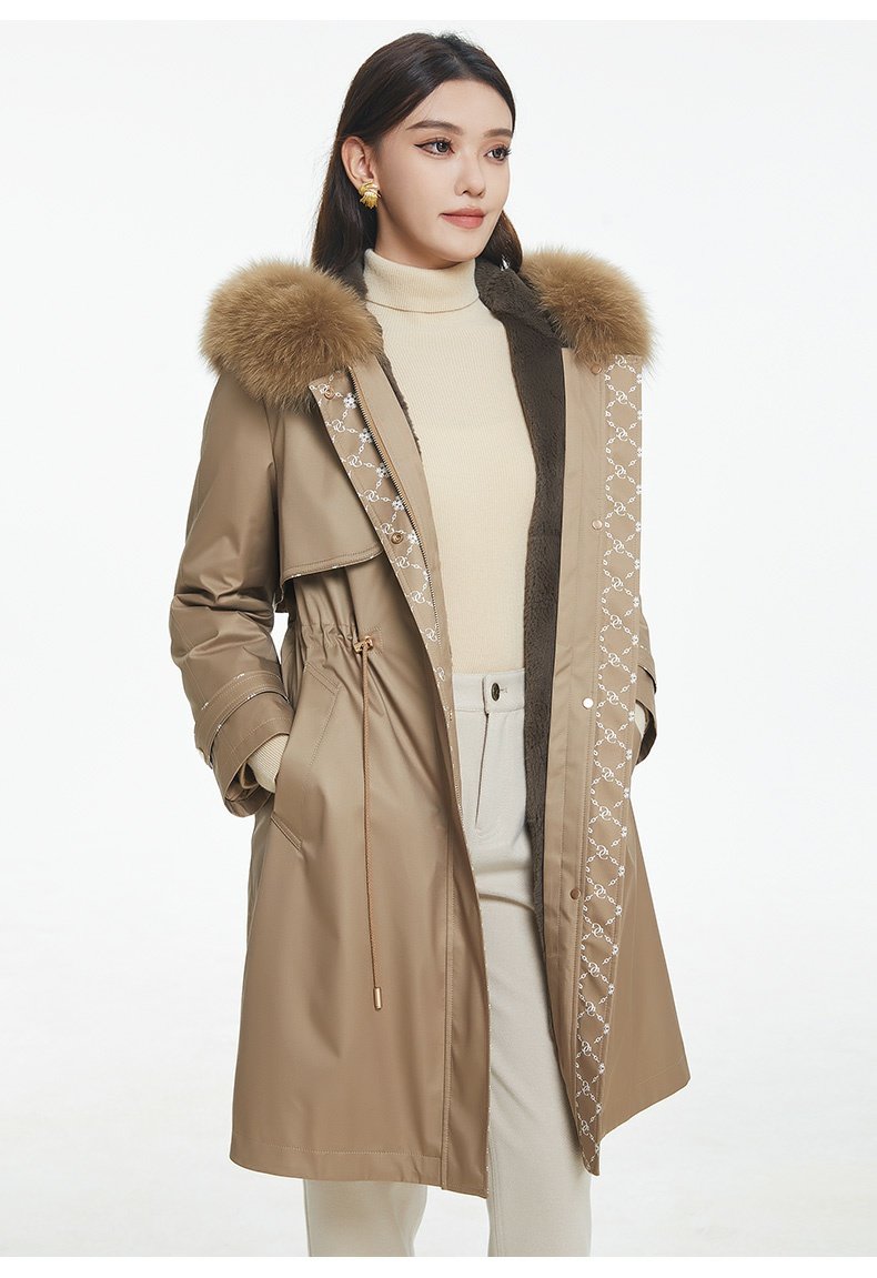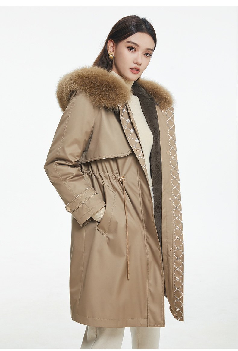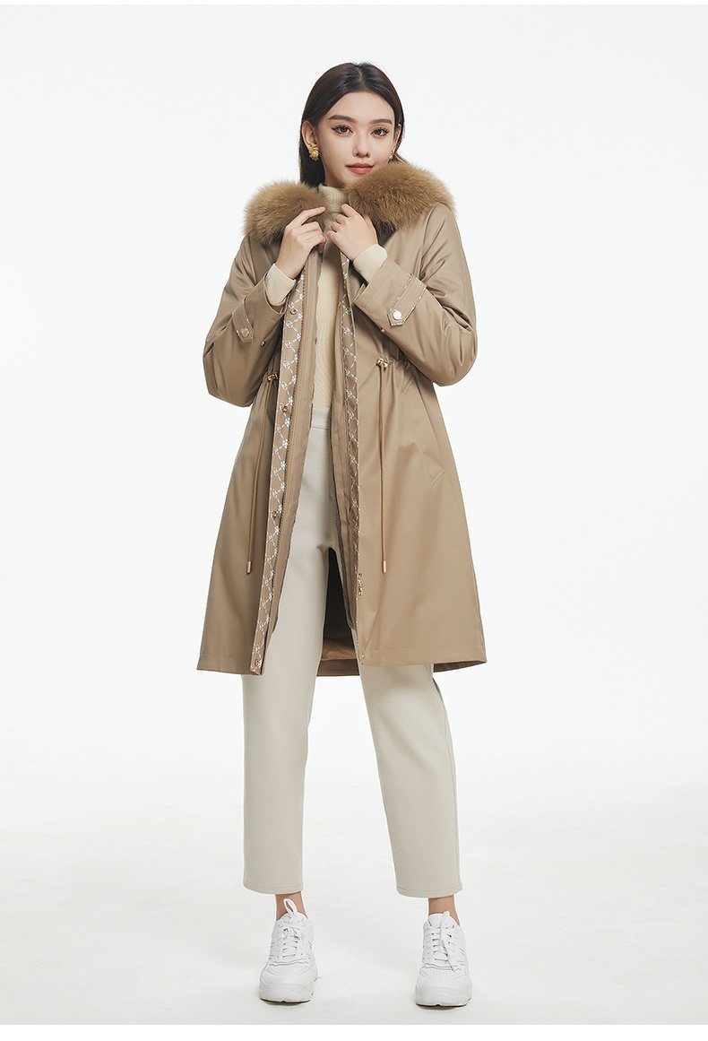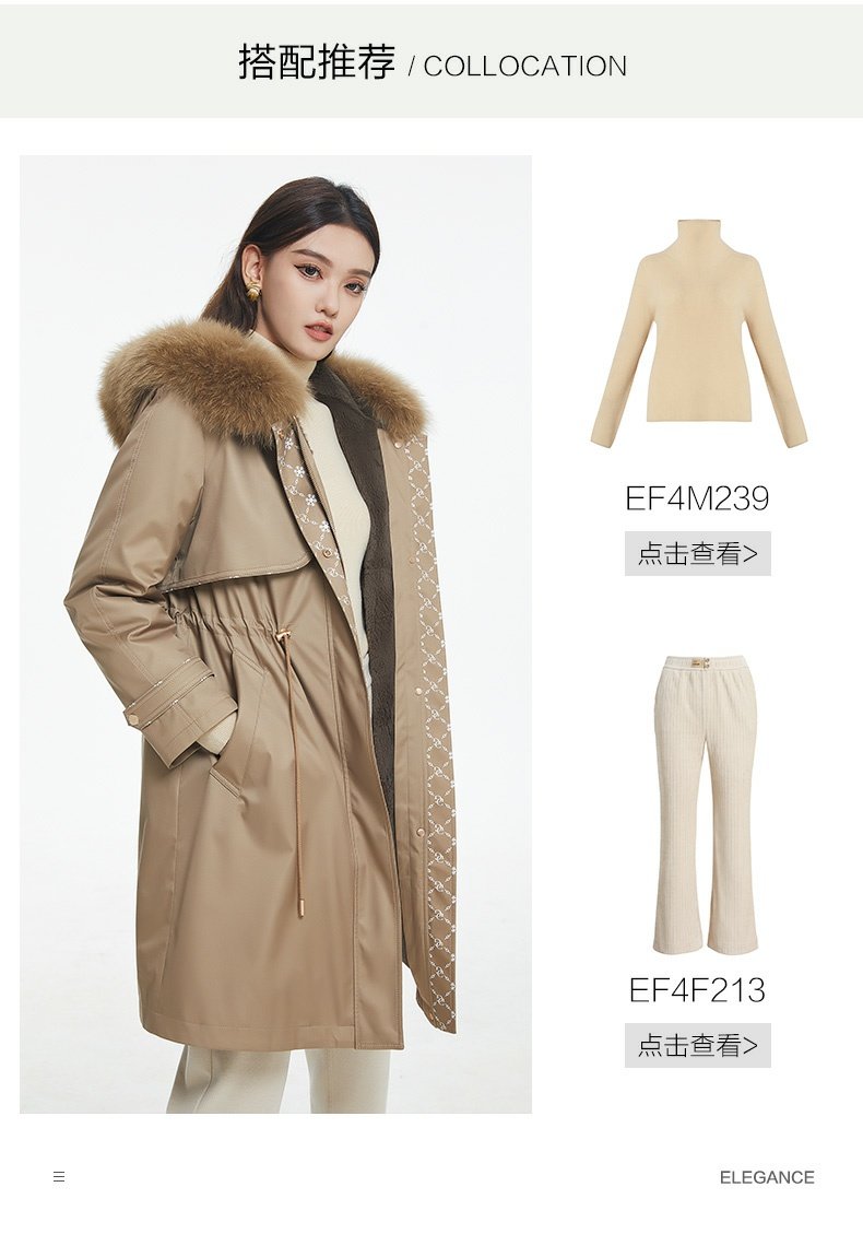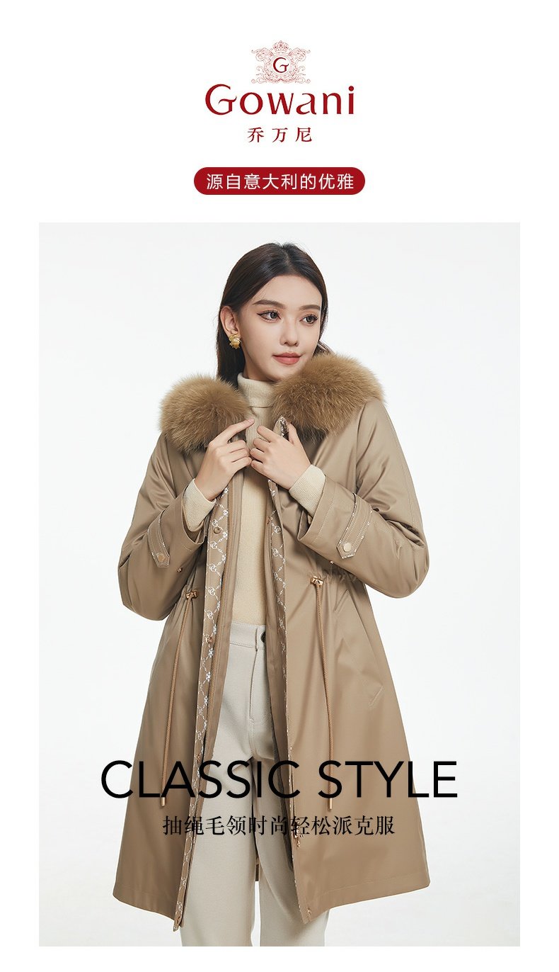乔万尼派克服女冬中长款新款时尚简约保暖抽绳设计EF4N211