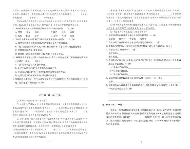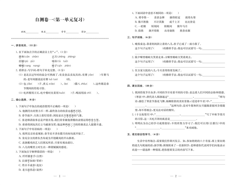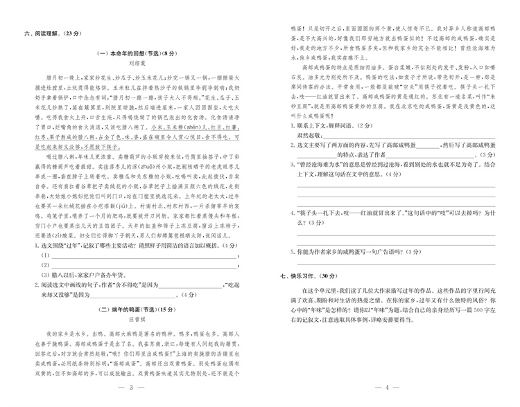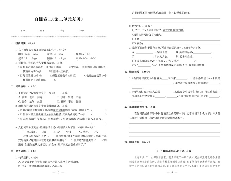 2025年春 小学语文练习自测卷 六年级下册 人教版部编版 含答案 6下 小学同步教辅试卷 江苏凤凰教育出版社