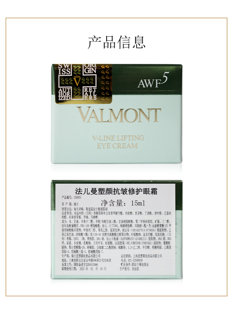 Valmont/法儿曼塑颜抗皱修护眼 紧致淡化细纹干纹提升眼周 心选到家