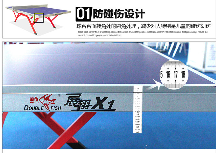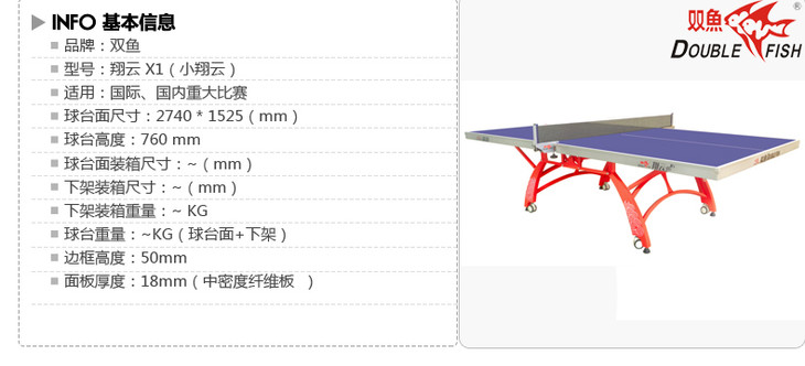 商品名称:双鱼DOUBLEFISH 双鱼翔云X1 双折叠移动式 室内标准乒乓球台