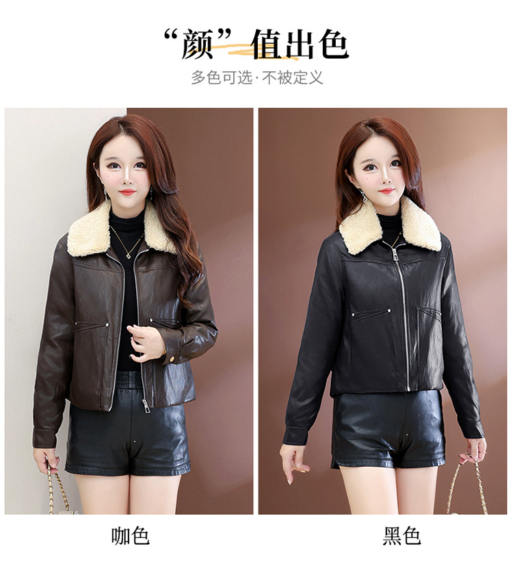 QYM 25DS837-Y时尚PU皮羽绒服毛领休闲羽绒服气质外套 商品图4