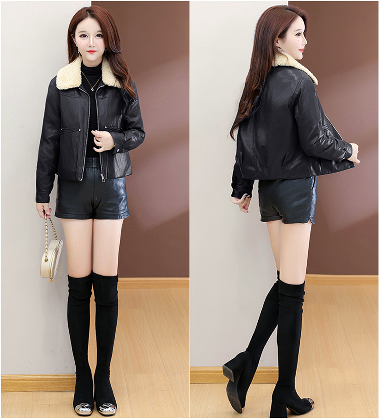 QYM 25DS837-Y时尚PU皮羽绒服毛领休闲羽绒服气质外套 商品图3