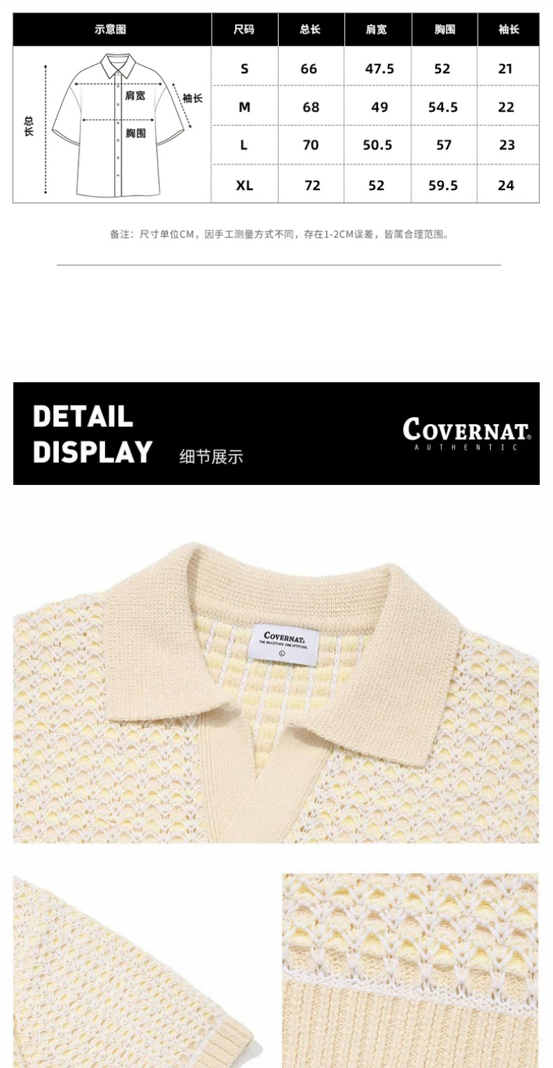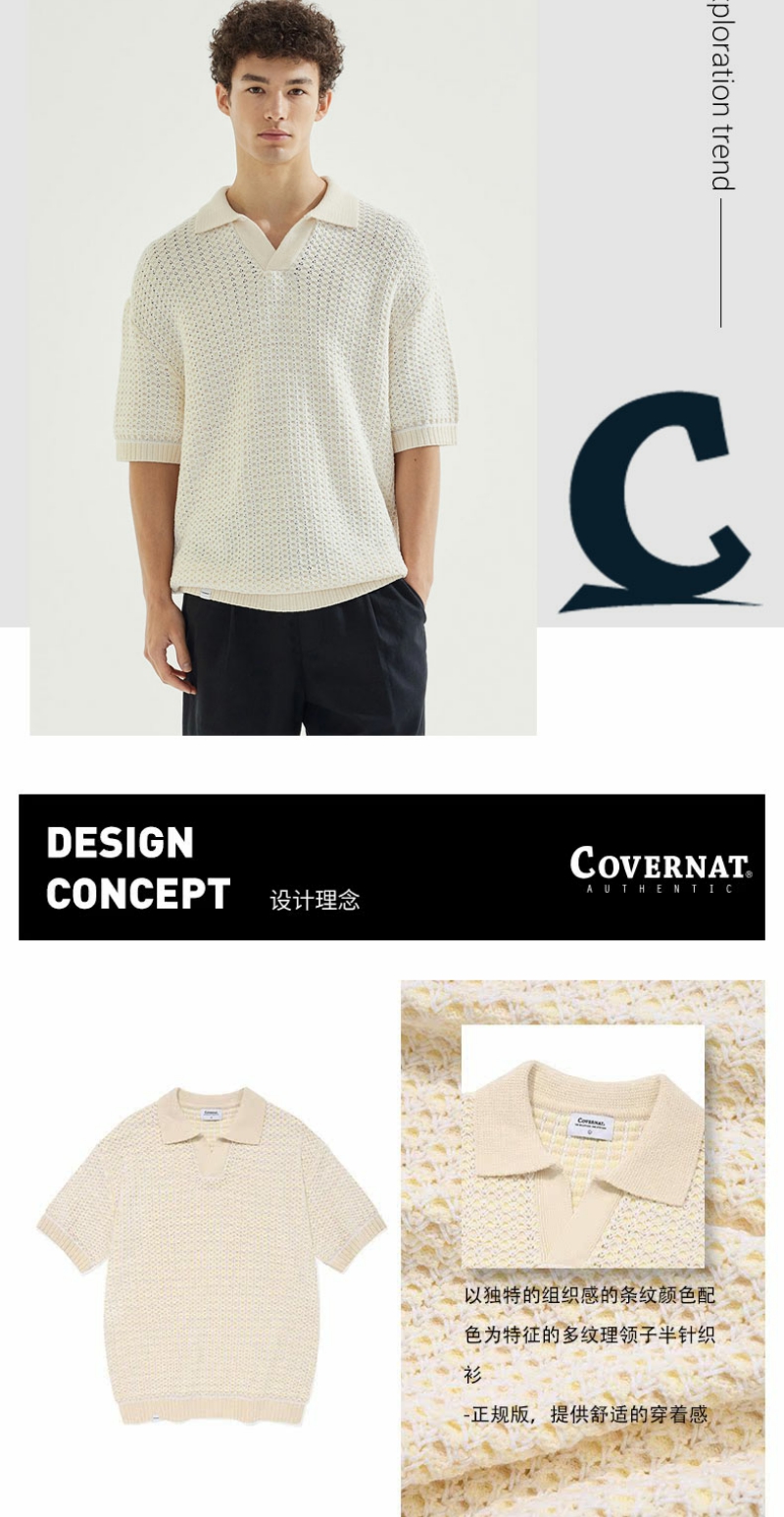 Covernat韩国潮牌时尚中款针织衫舒适透气翻领短袖2025夏季新品CO2402KT03
