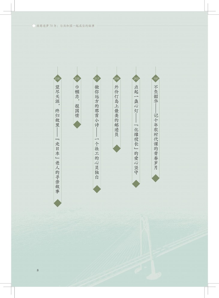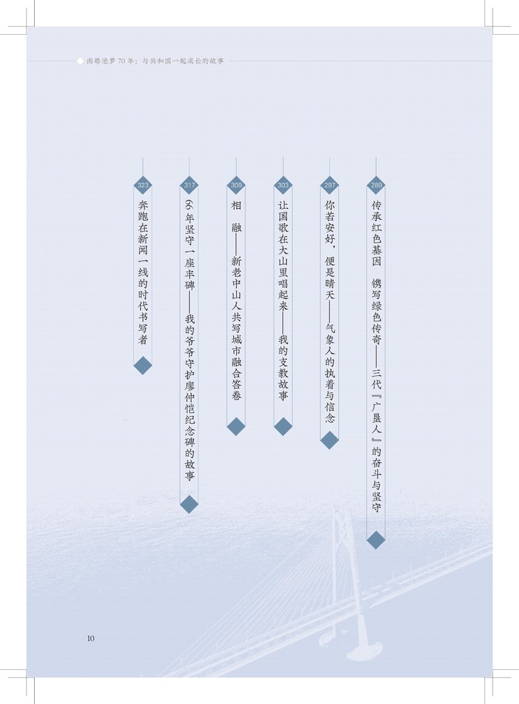 这些故事来自基层,文字来自基层,它“粘着泥土、带着露珠、冒着热气”,能引发不同年龄段、不同生活经历的人的深层共鸣。这些短小的故事,虽无华丽的语言修饰,但却充满最真实、最炙热的情感,读之如清泉沁心,如晨曦暖心,如春风化心。可让读者在潜移默化的阅读中受其鼓舞,领悟新时代党的领导下美好生活的真义,感受关于奋斗、梦想、坚守、奉献的正能量,体味伟大祖国70年的辉煌成就,传承广东人民敢于有梦、勇于追梦、勤于圆梦的精神。