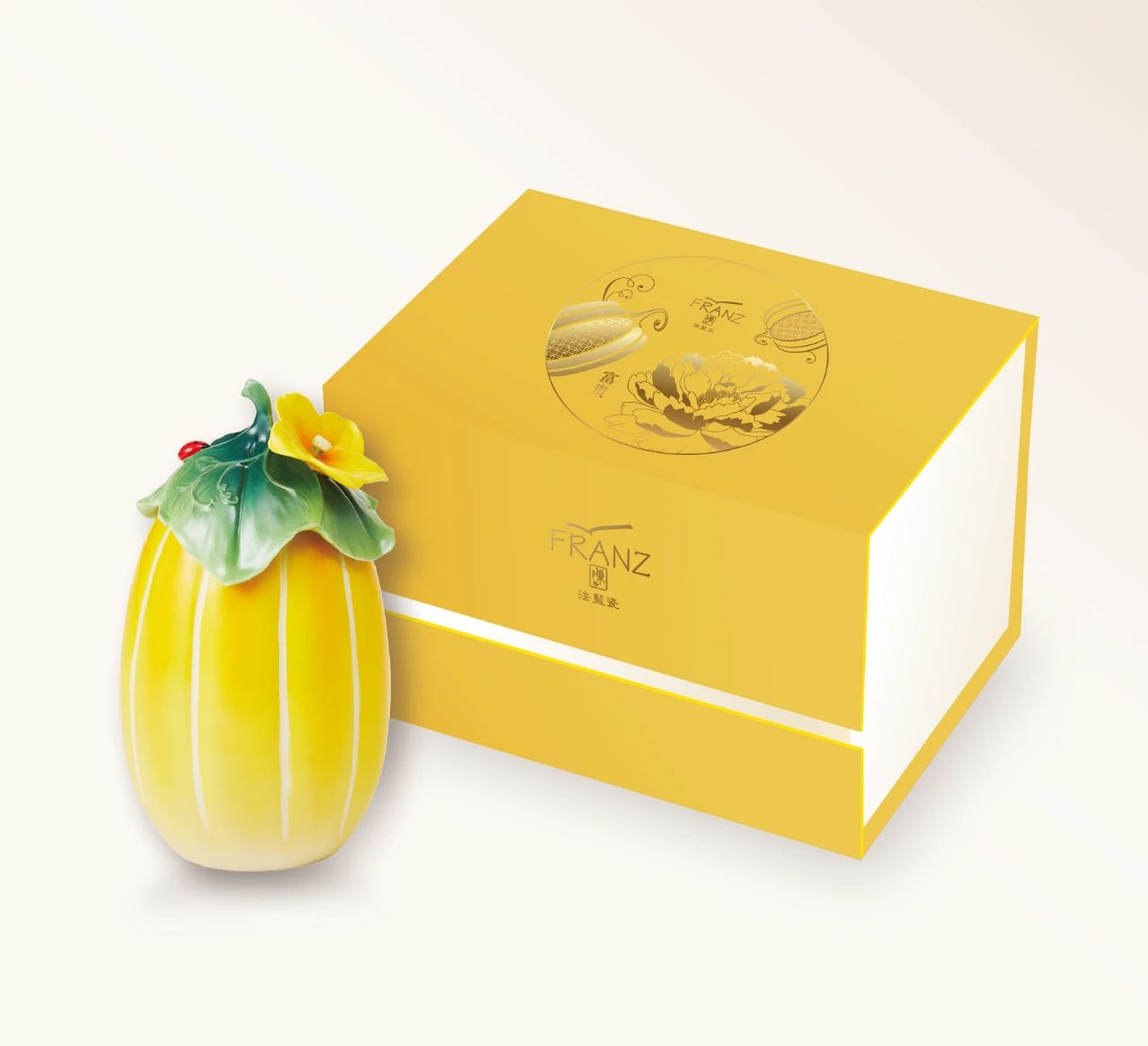 黄金瓜入瓷寓意子孙万代,其闪耀亮采更象征绵延富贵,前途似锦。