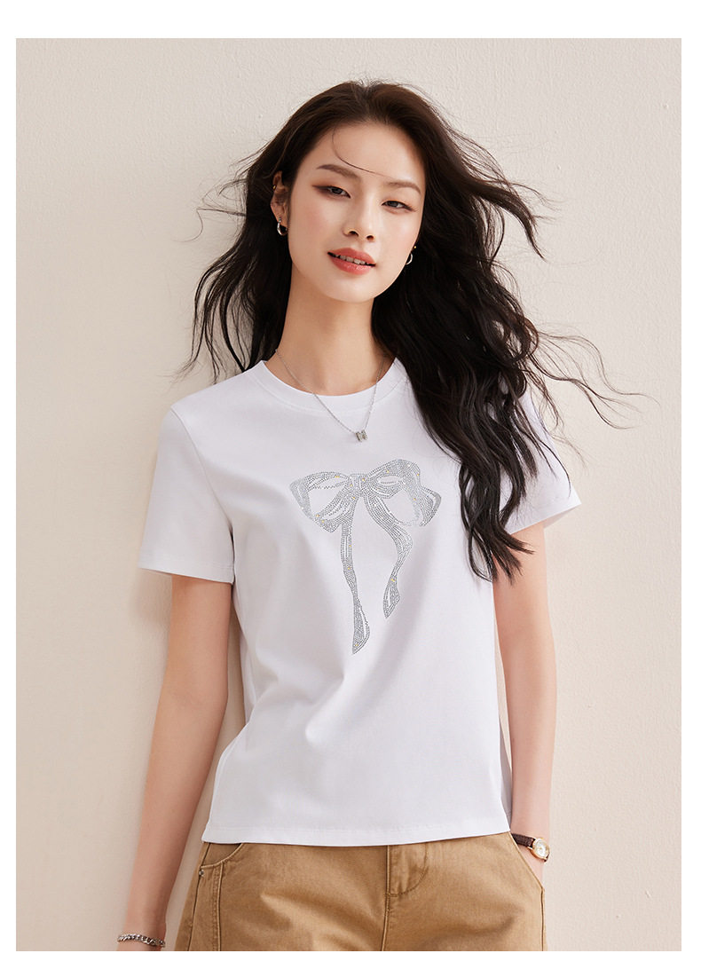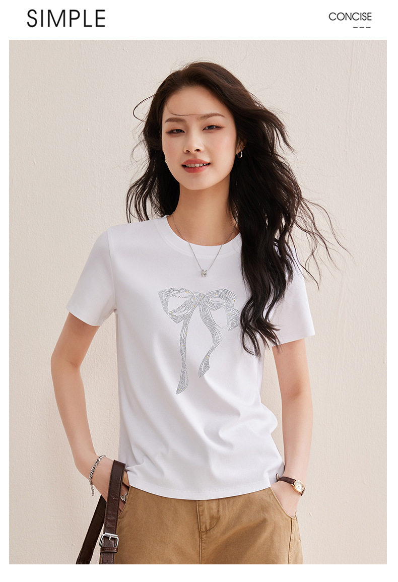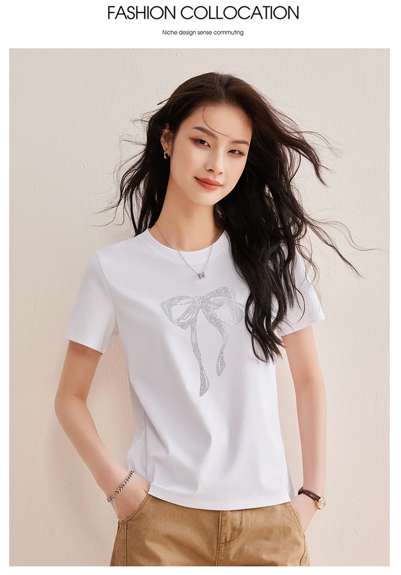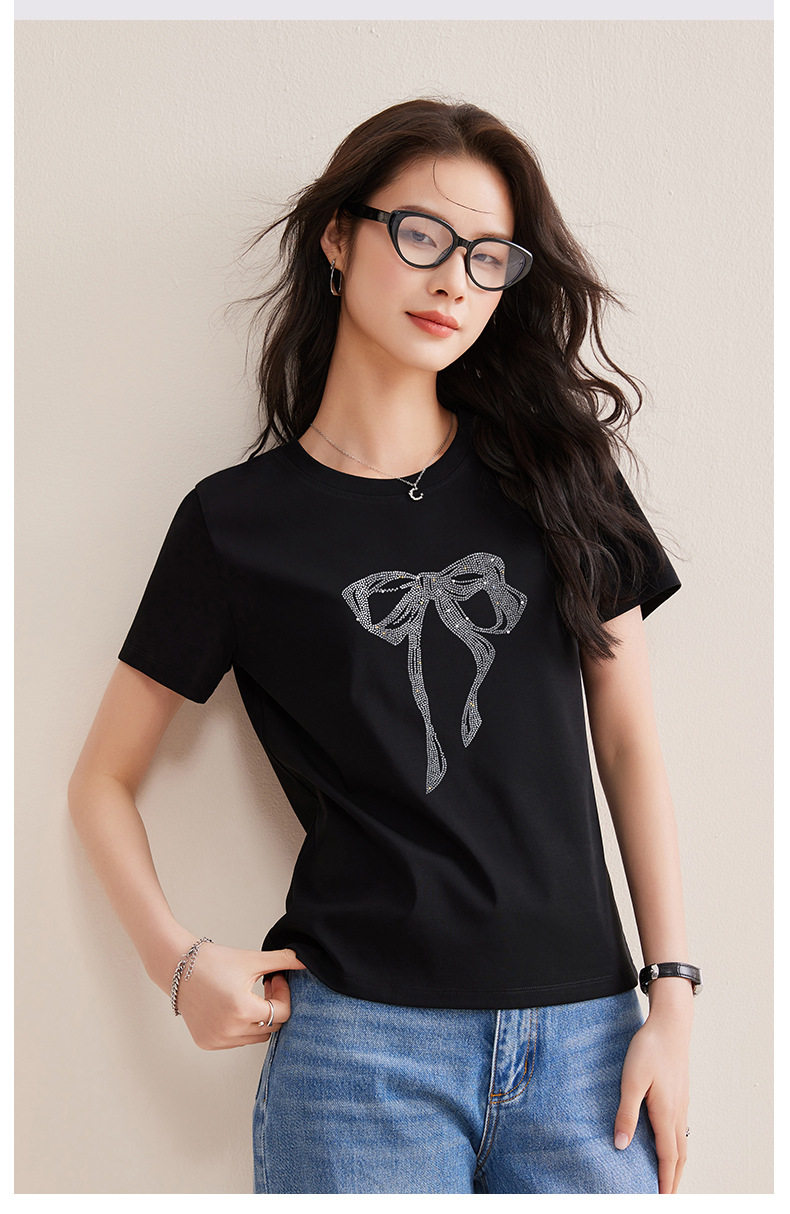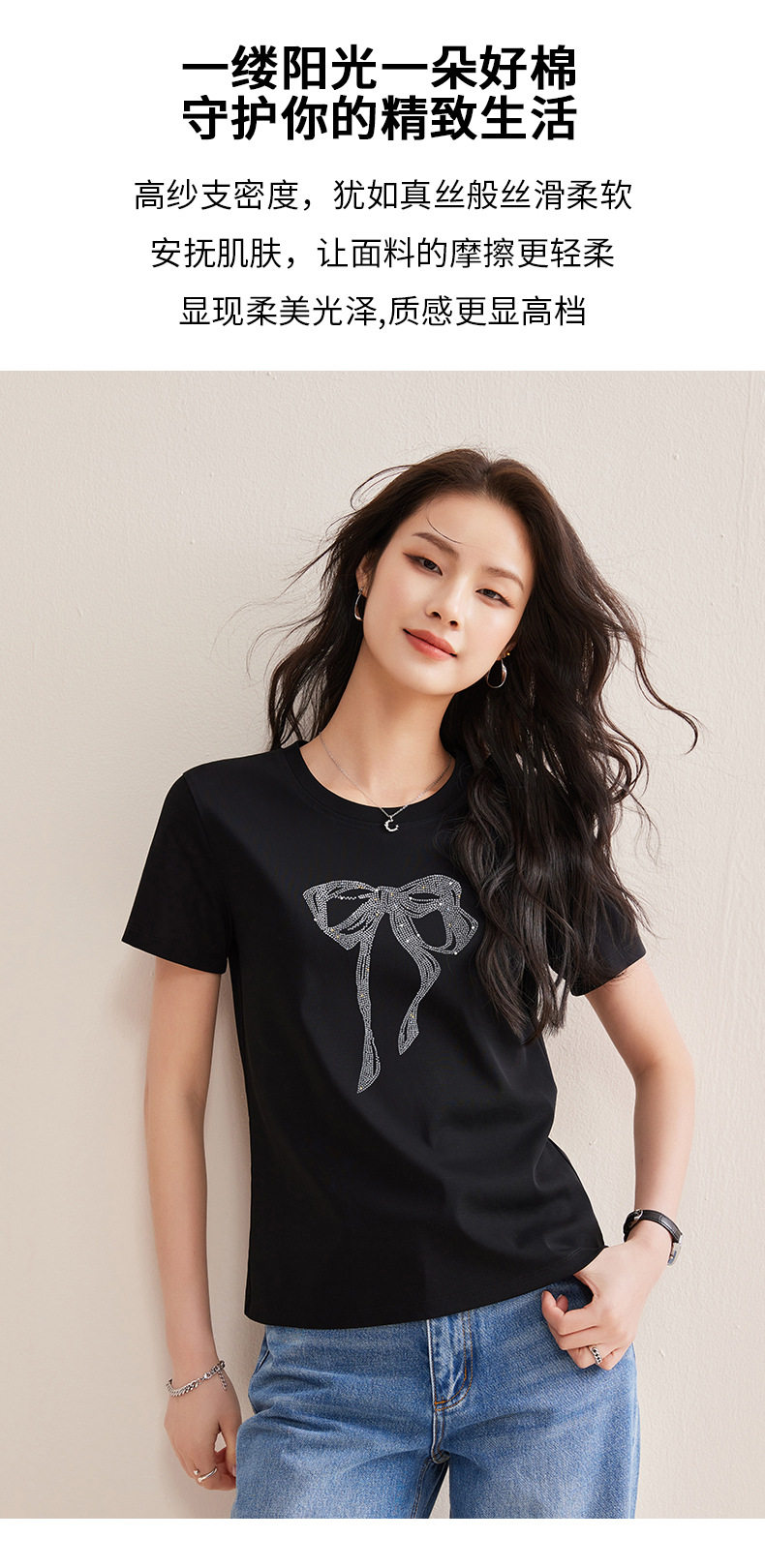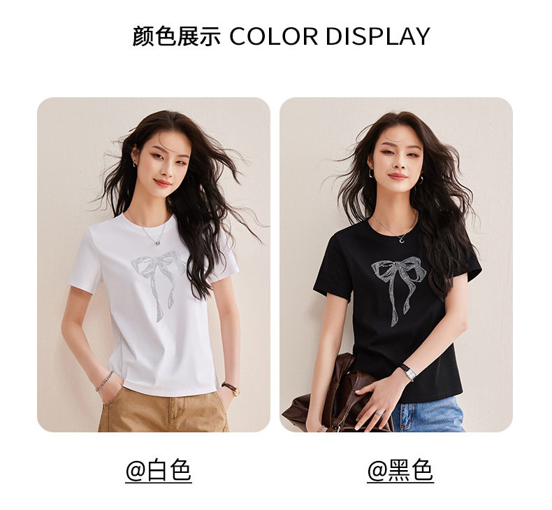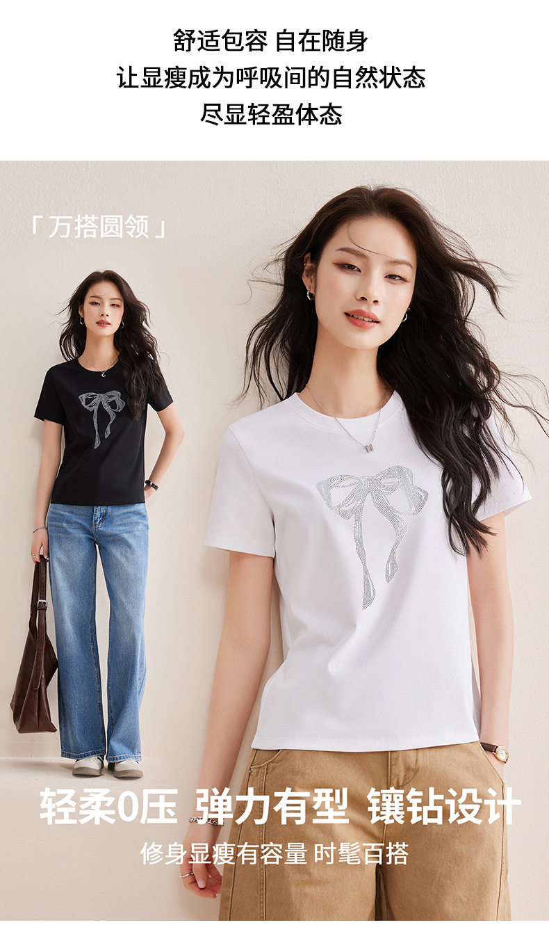 「自」全新升级【铂金会员119/天猫159/差价40】(73120)洛诗琳重工闪钻蝴蝶结T恤2026夏季新款亲肤凉感丝光短袖上衣
