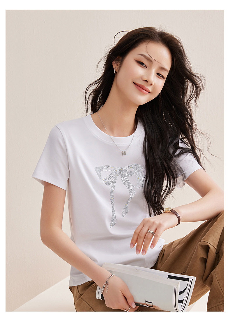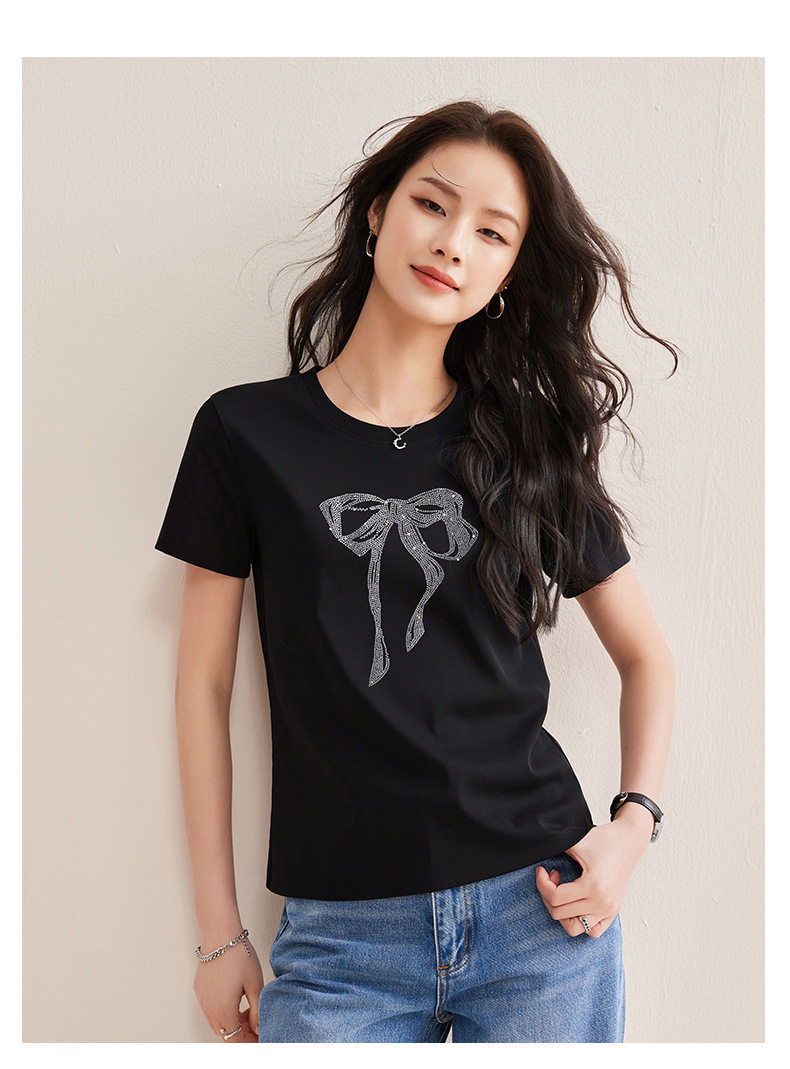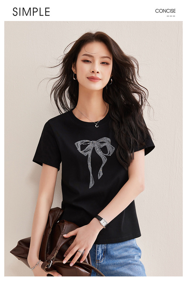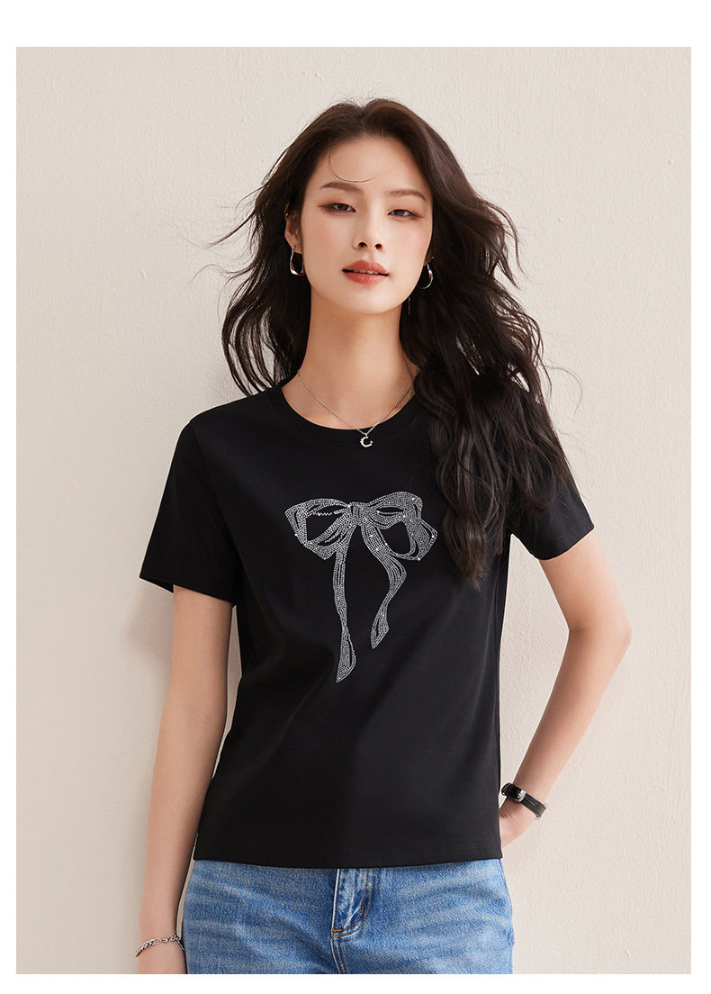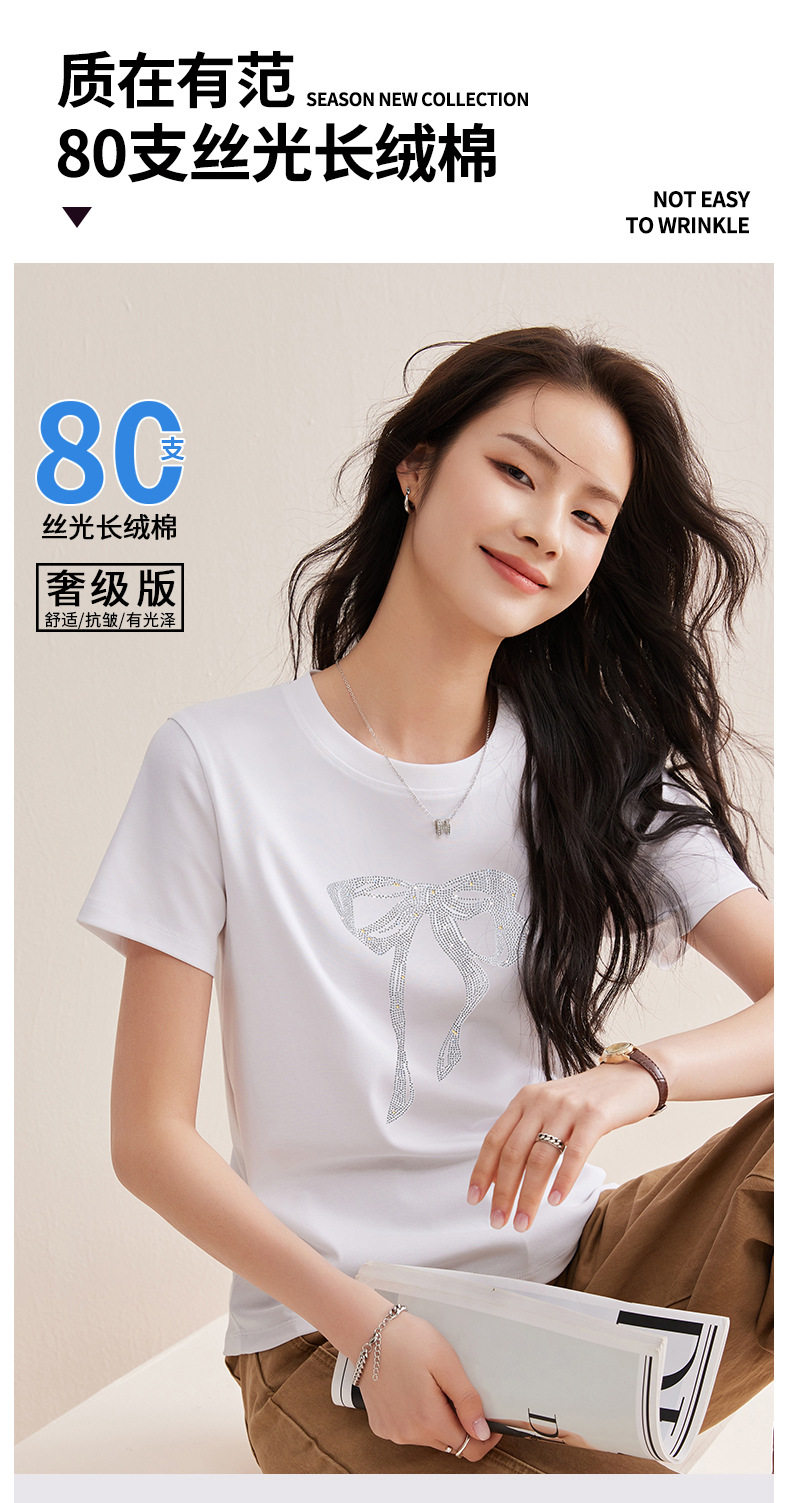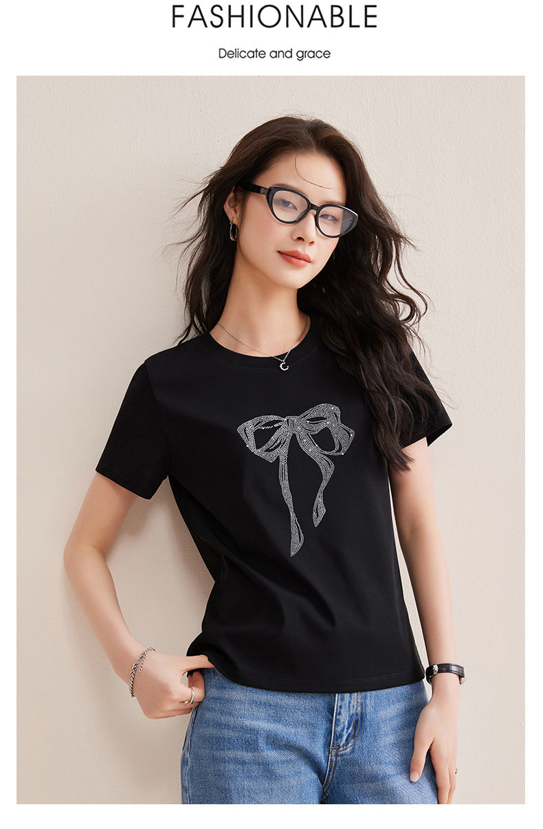 「自」全新升级【铂金会员119/天猫159/差价40】(73120)洛诗琳重工闪钻蝴蝶结T恤2026夏季新款亲肤凉感丝光短袖上衣