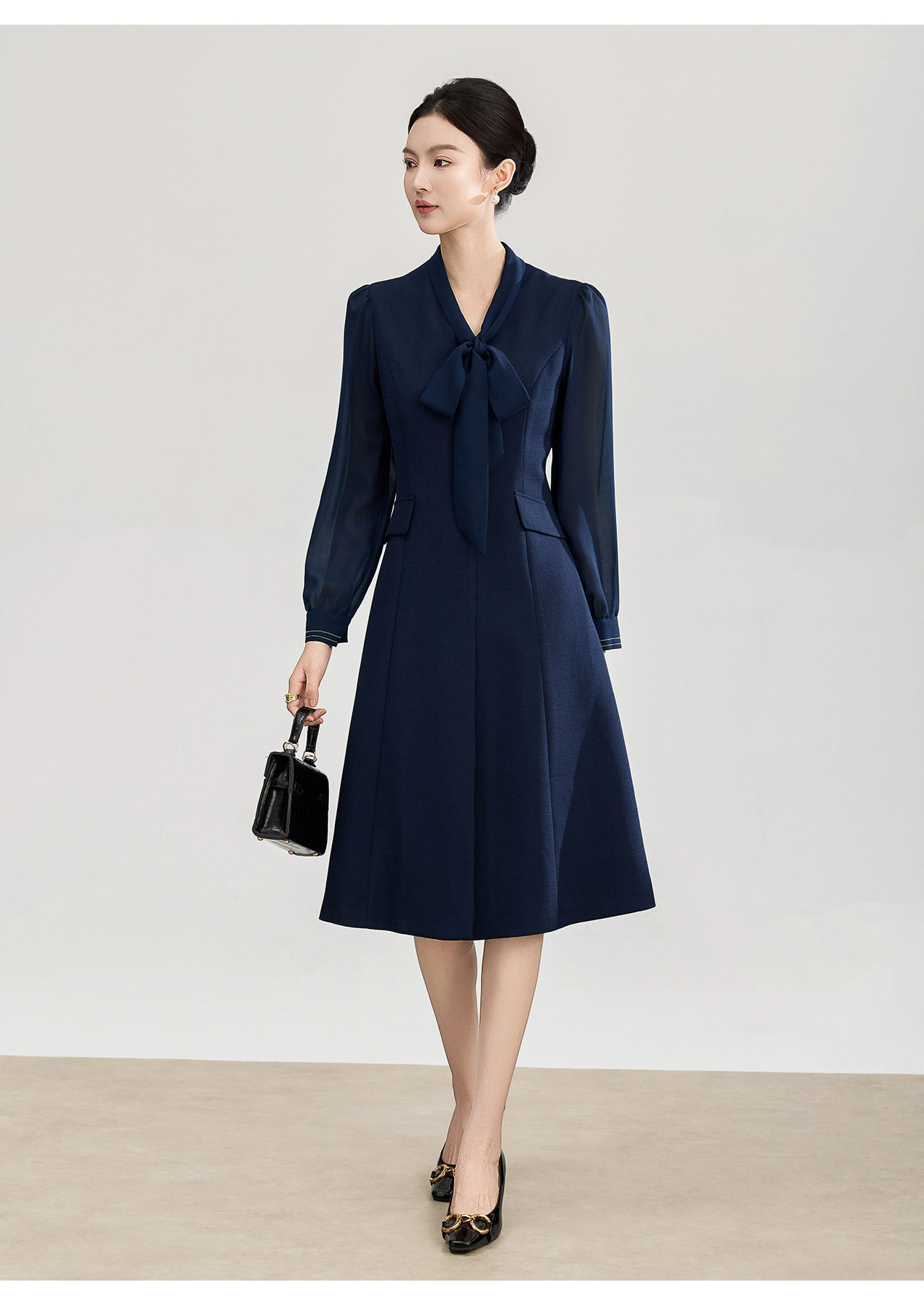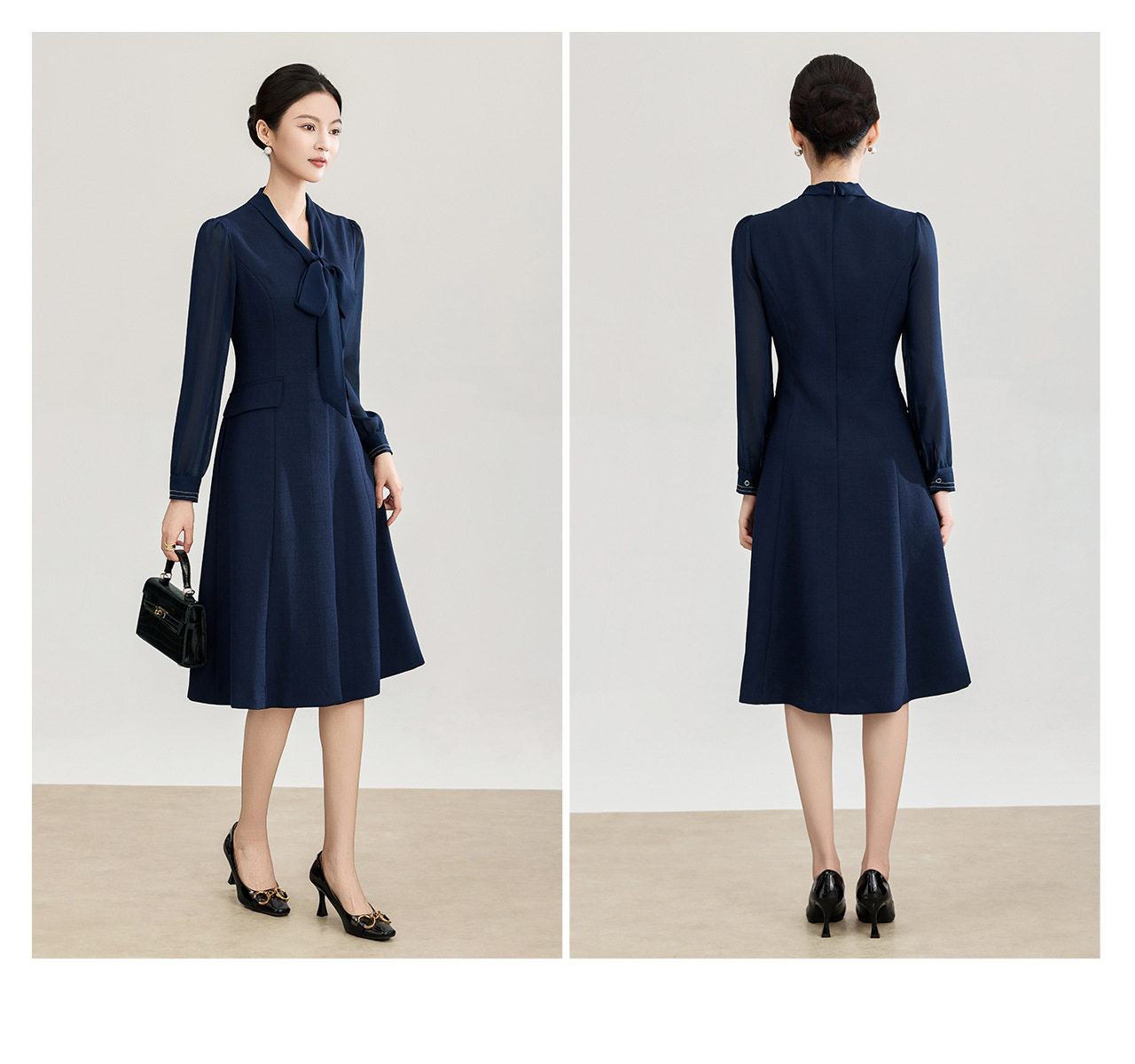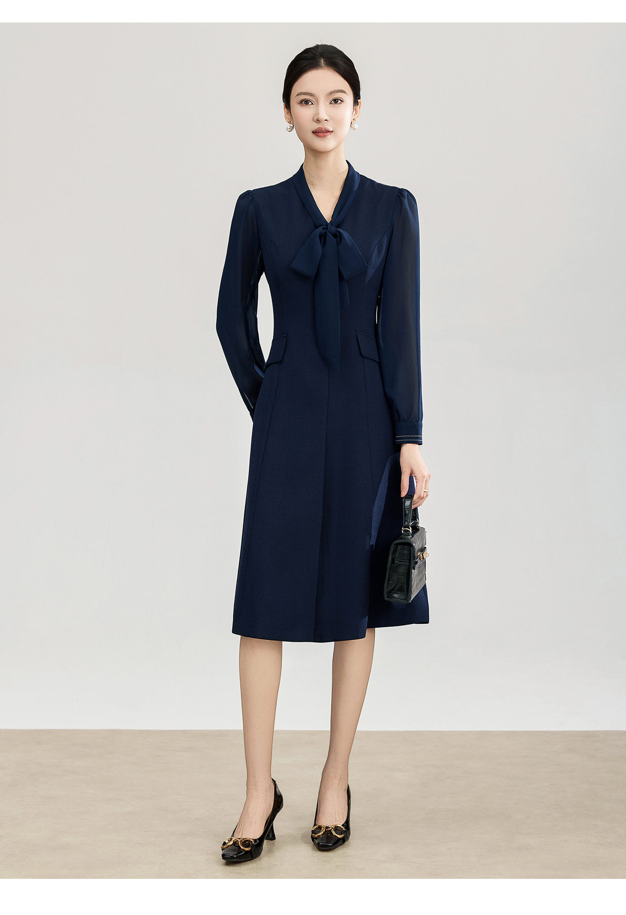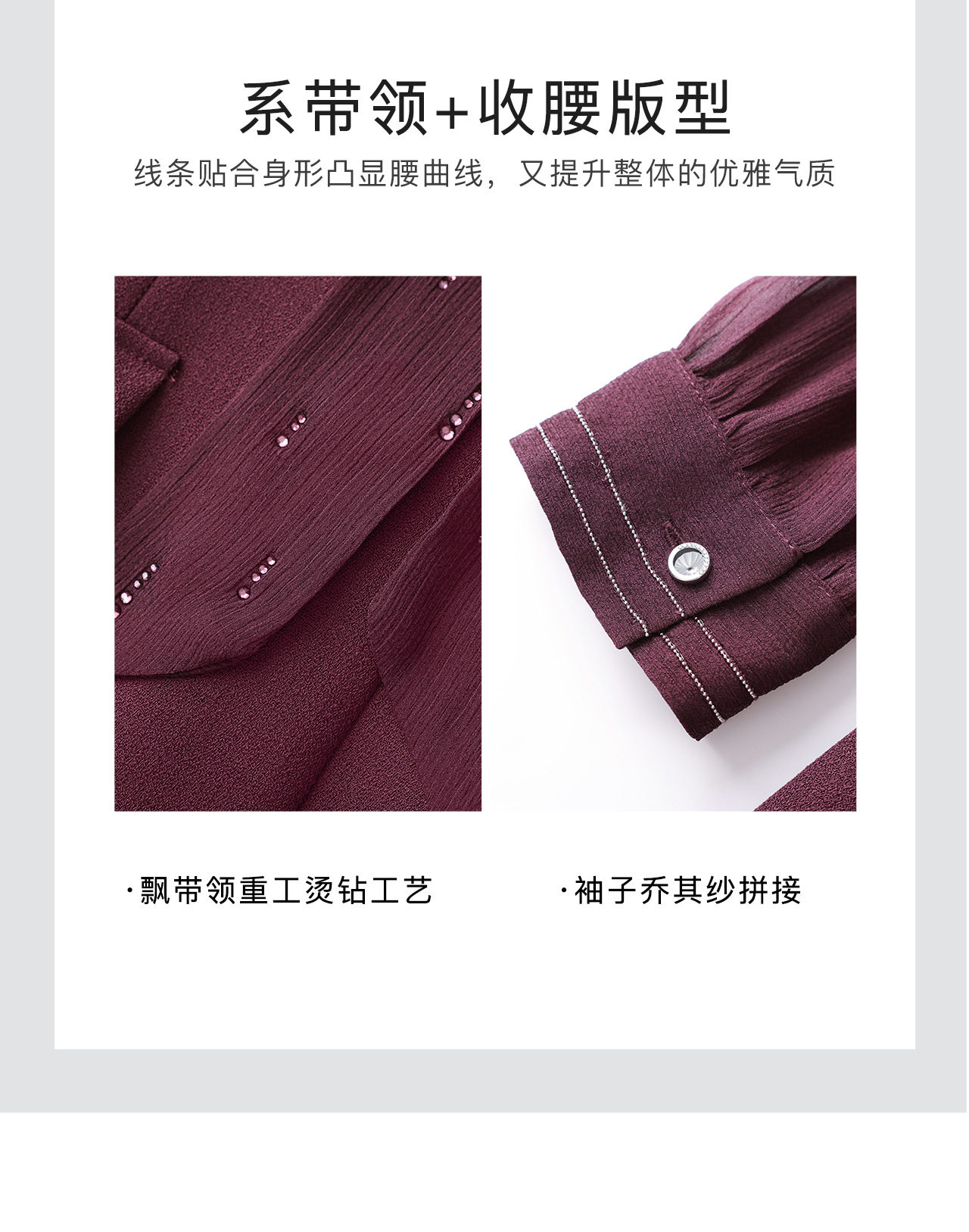 「高货wl」全新升级【铂金会员367/天猫489/差价122】(74400)洛诗琳法式轻奢烫钻连衣裙2026春季新款飘带领通勤收腰裙