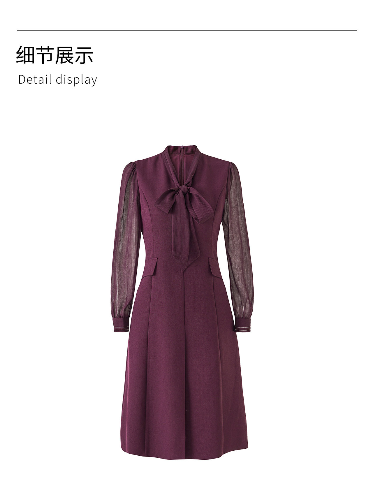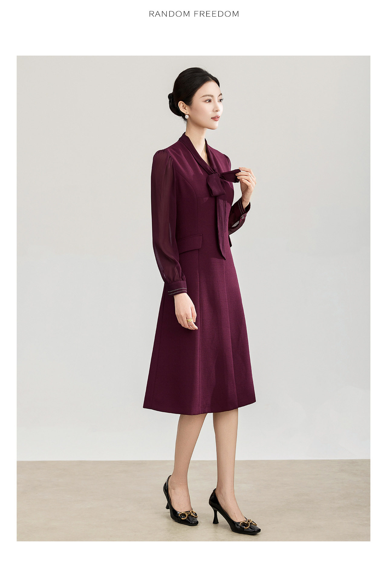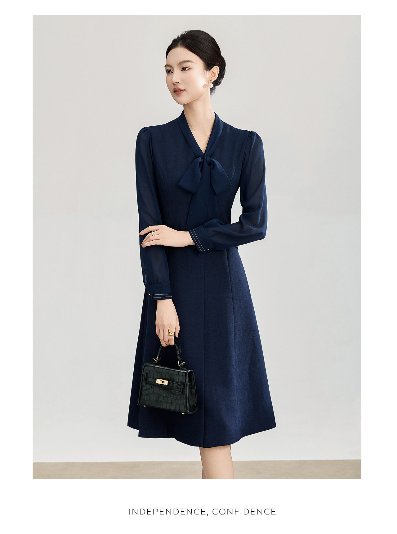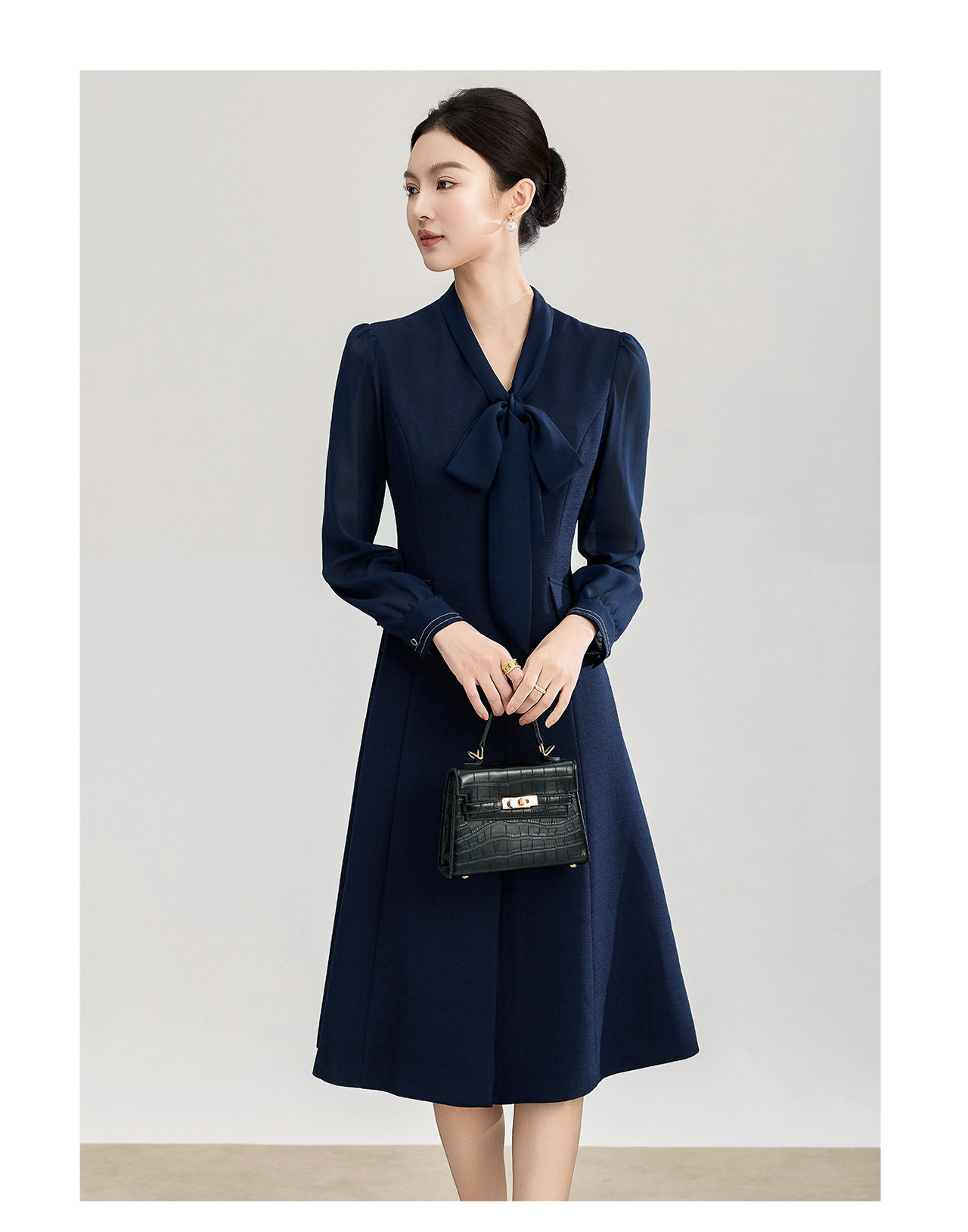 「高货wl」全新升级【铂金会员367/天猫489/差价122】(74400)洛诗琳法式轻奢烫钻连衣裙2026春季新款飘带领通勤收腰裙