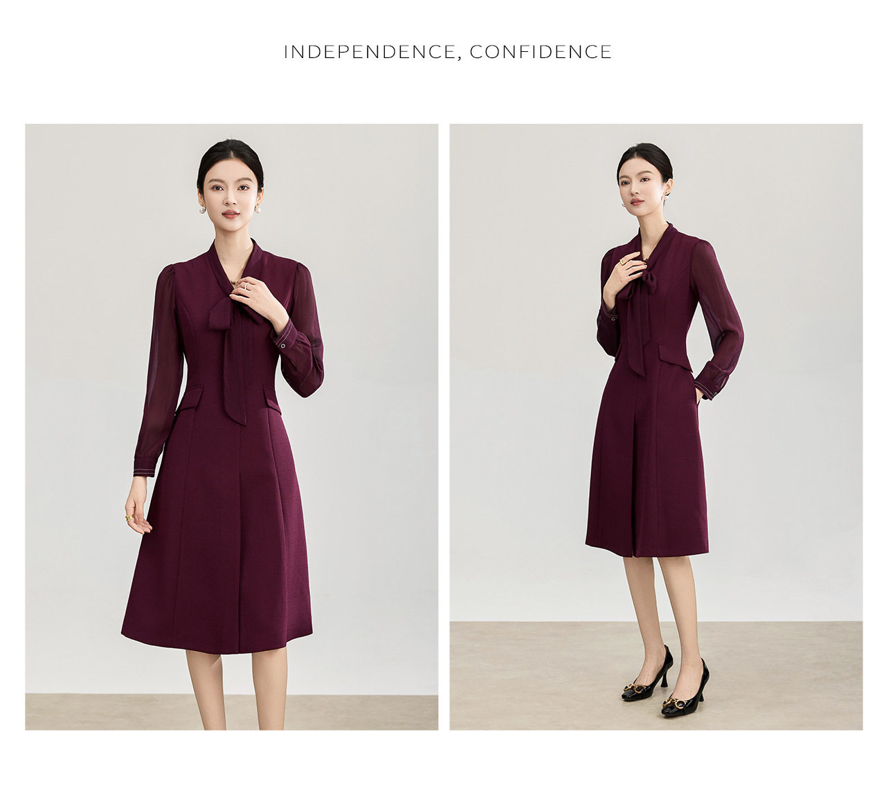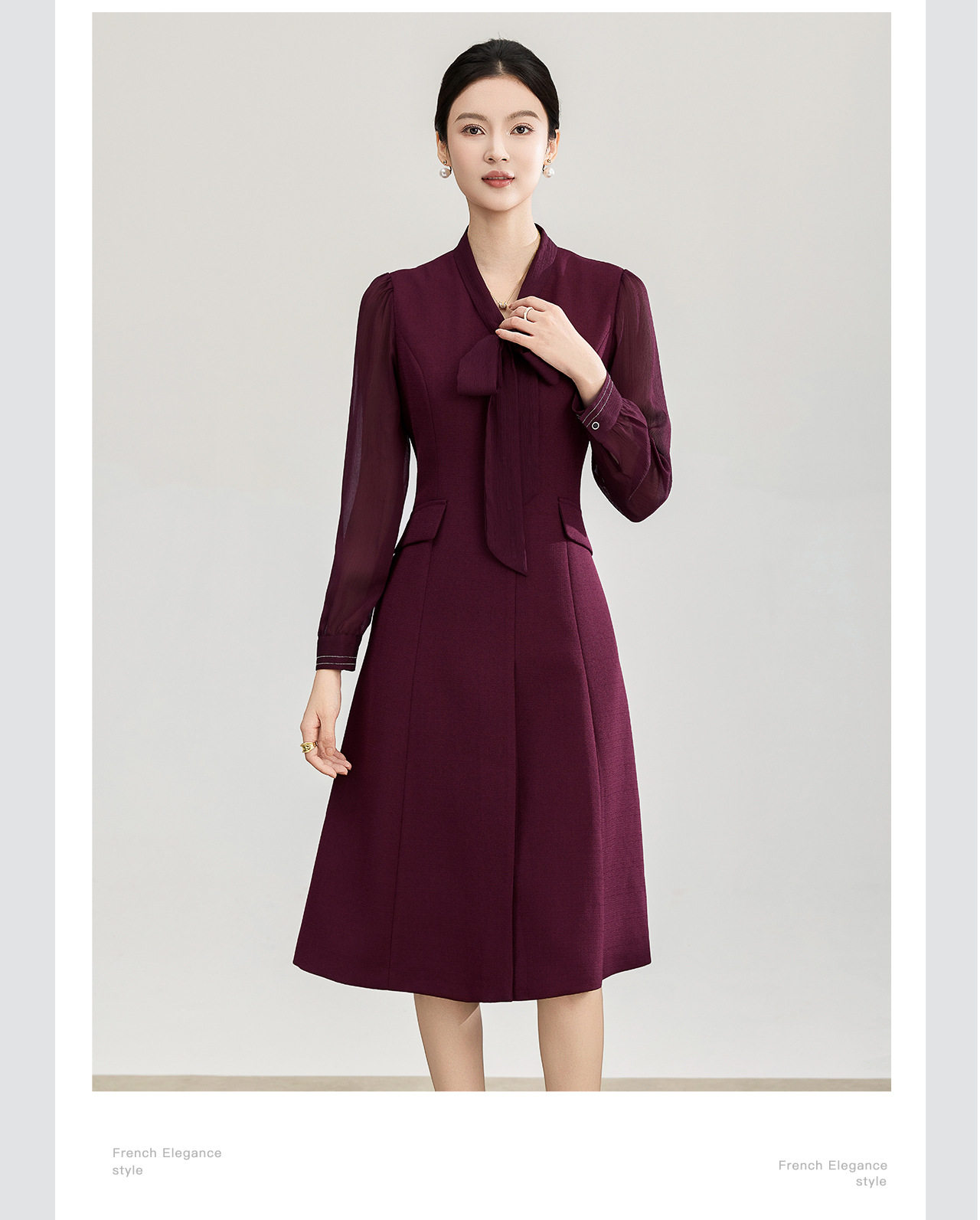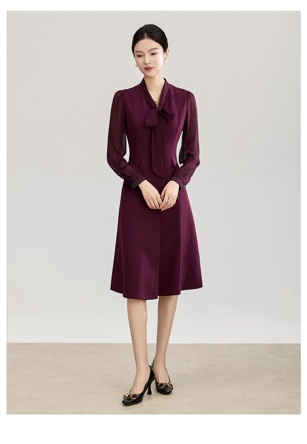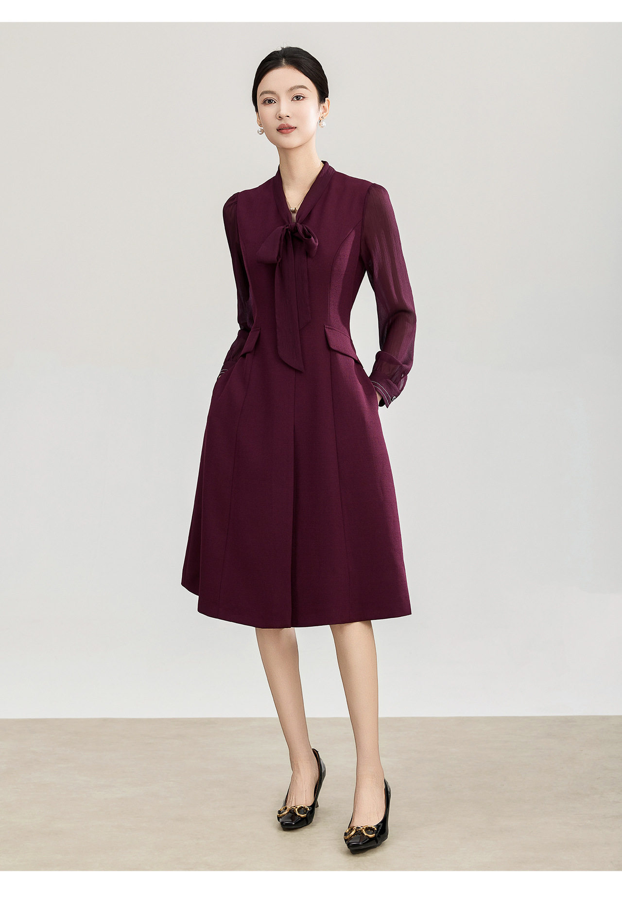 「高货wl」全新升级【铂金会员367/天猫489/差价122】(74400)洛诗琳法式轻奢烫钻连衣裙2026春季新款飘带领通勤收腰裙