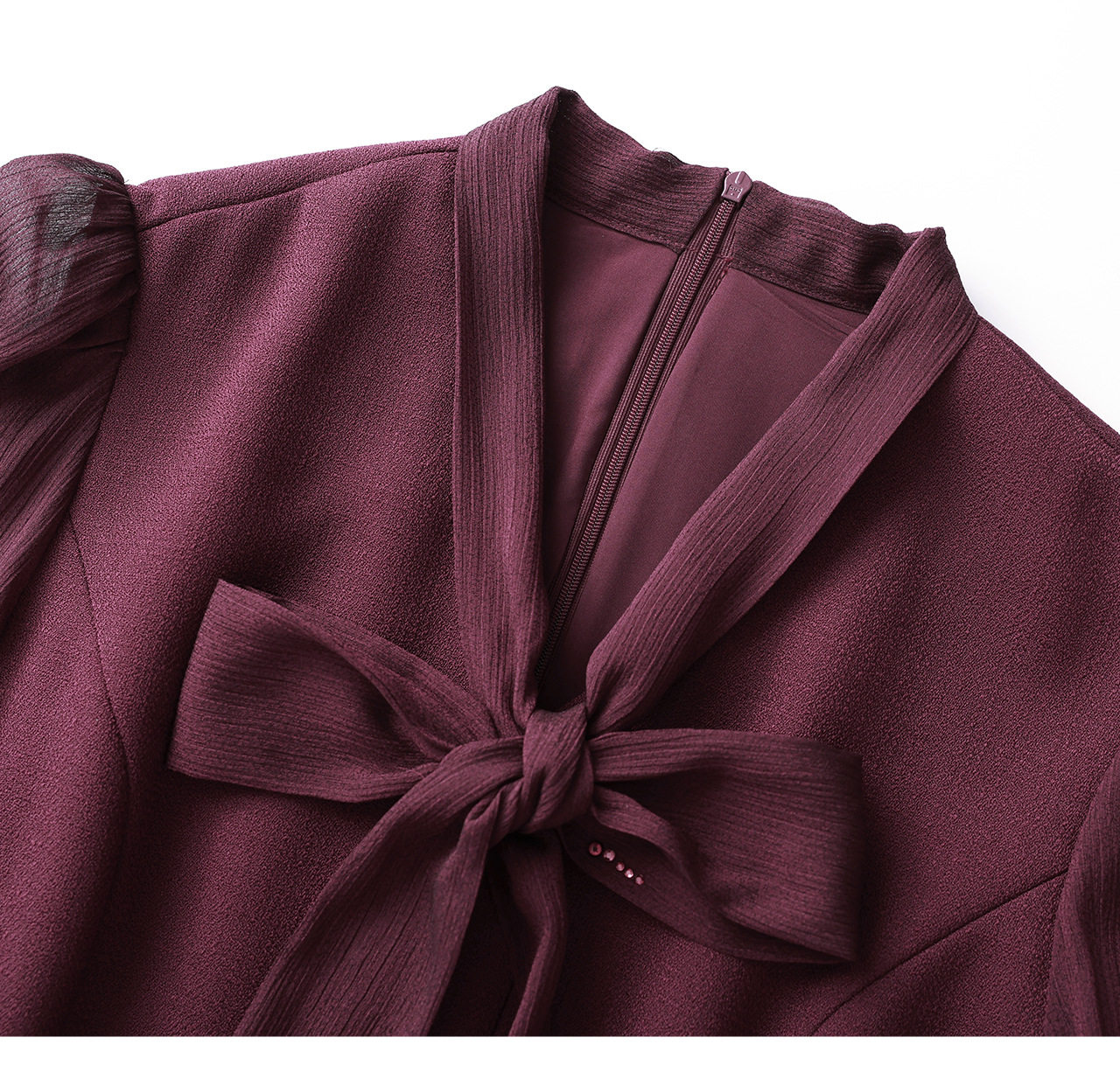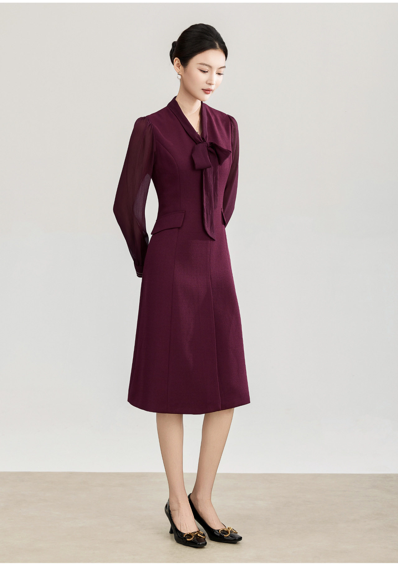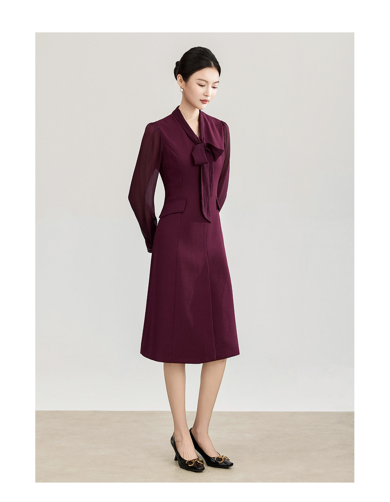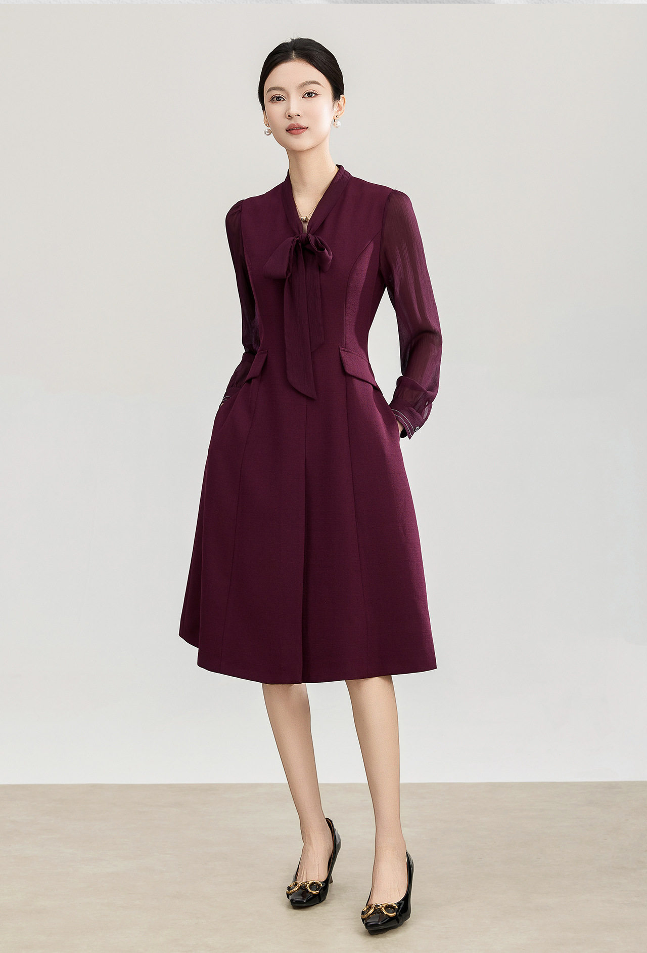 「高货wl」全新升级【铂金会员367/天猫489/差价122】(74400)洛诗琳法式轻奢烫钻连衣裙2026春季新款飘带领通勤收腰裙