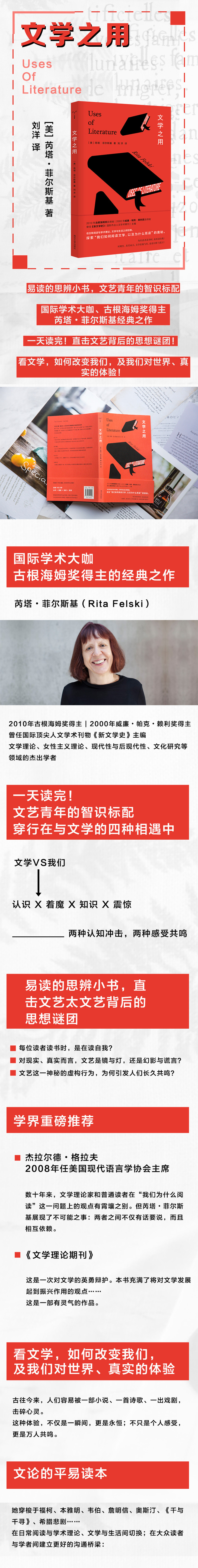 《文学之用》一书虽是为文学学者而写,但对其他热爱阅读、好奇阅读为何如此令人着迷的读者而言,它也颇具吸引力。这两种读者(普通读者与学者)之间的共同之处,也正是本书成书的基础…费尔斯基确如其所言,使我们得以“更好地理解如何读、为什么读。”