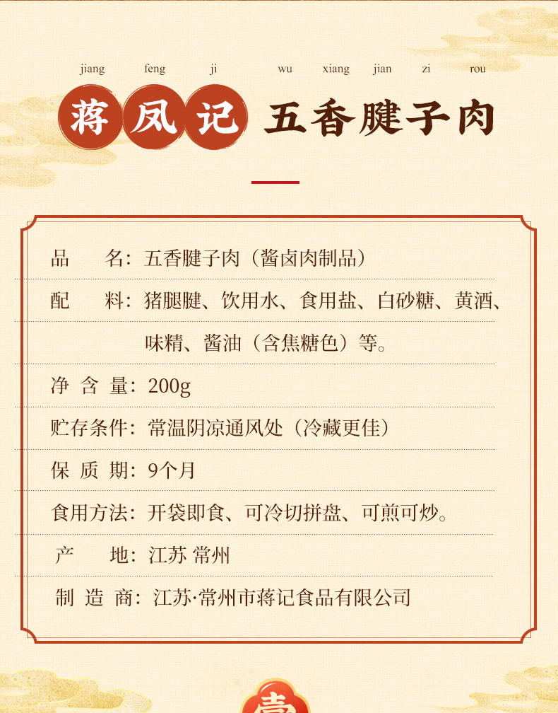 【常州馆】蒋凤记真空装五香腱子肉 200g*2袋