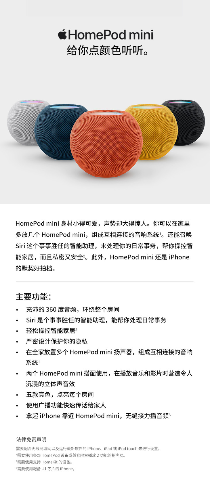 Apple HomePod mini 智能音响/音箱 蓝牙音响/音箱 智能家居