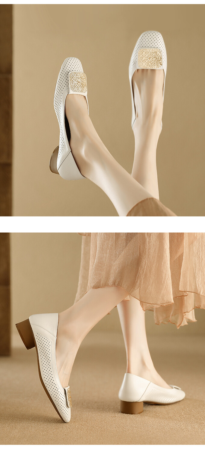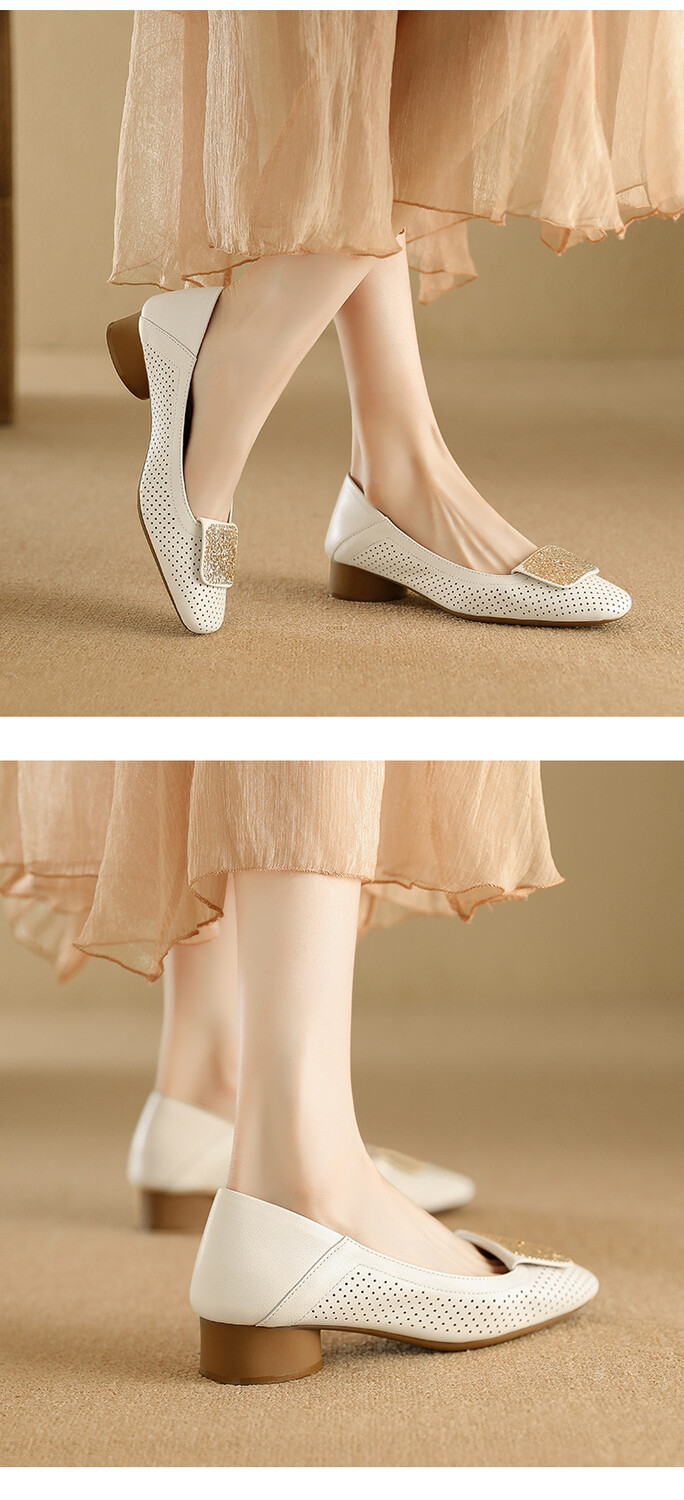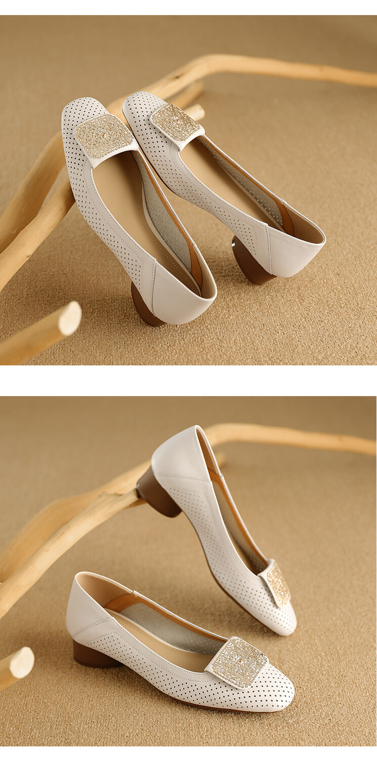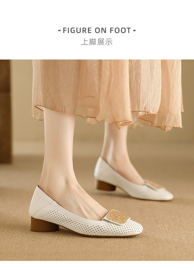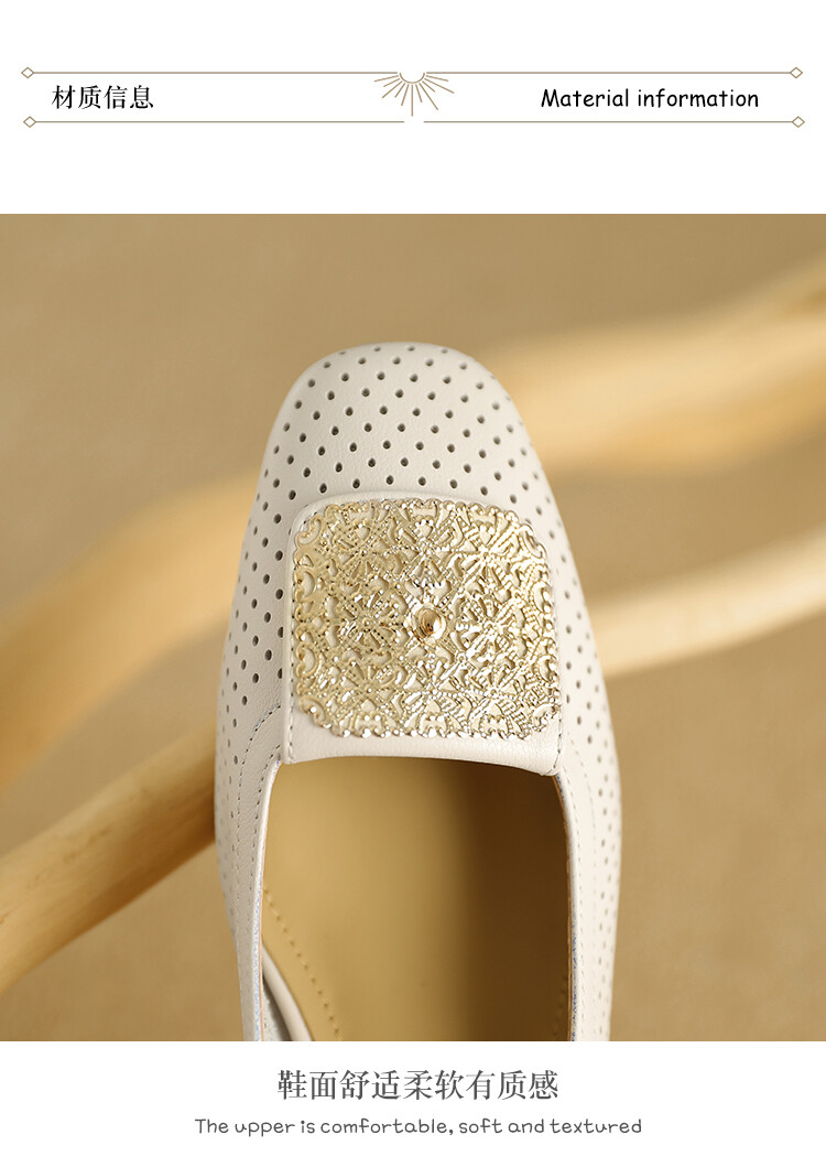 【预售5天】牛皮版~法式复古洞洞镂空凉鞋女夏季真皮透气粗跟单鞋LG&221-823