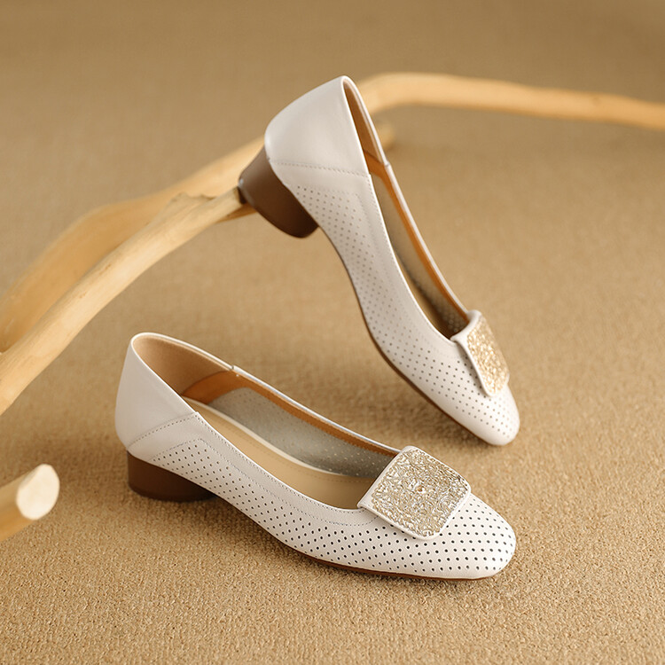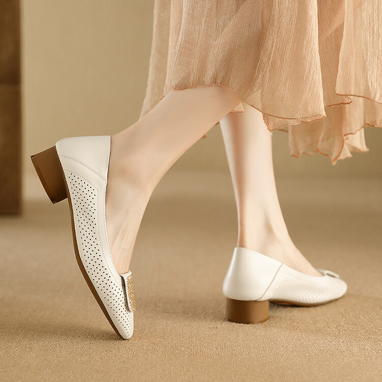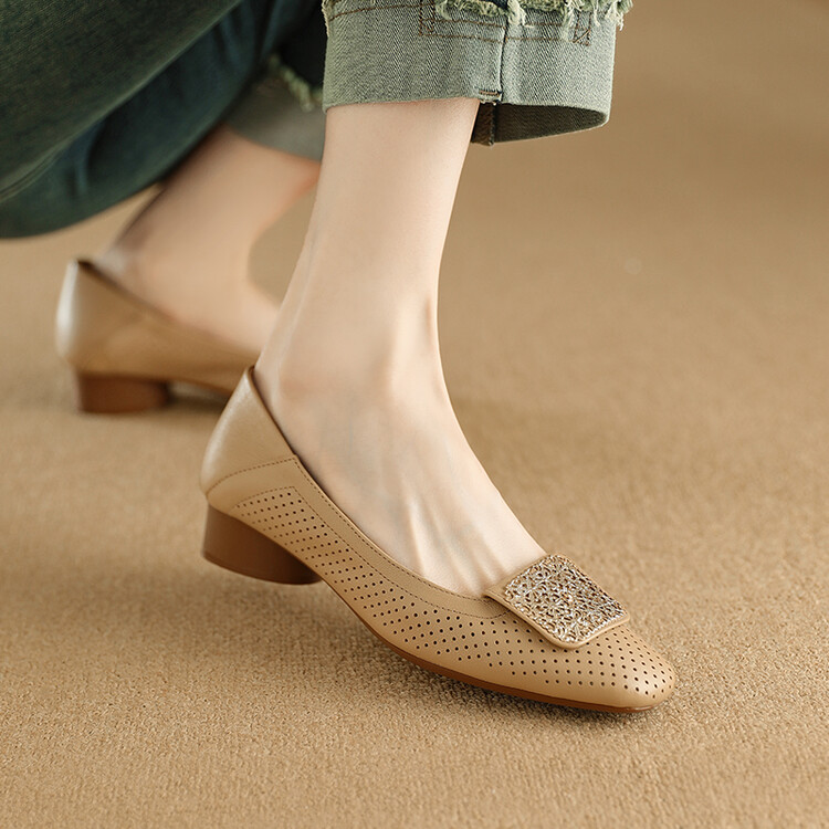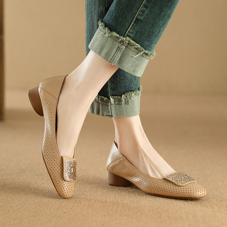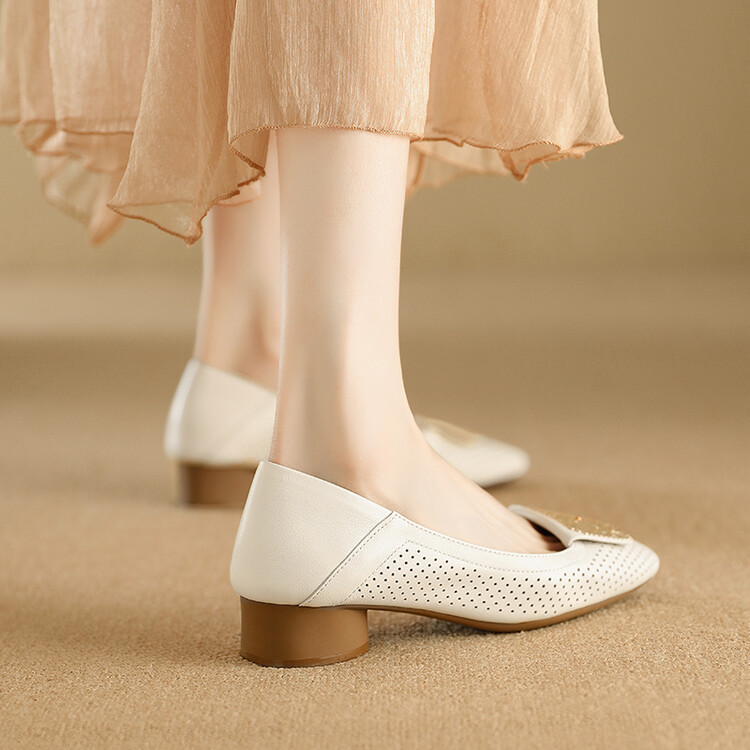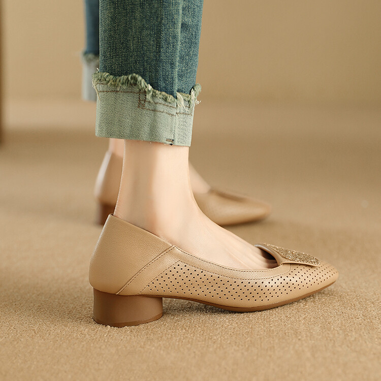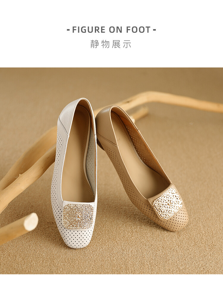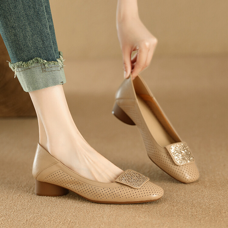 【预售5天】牛皮版~法式复古洞洞镂空凉鞋女夏季真皮透气粗跟单鞋LG&221-823