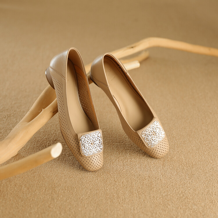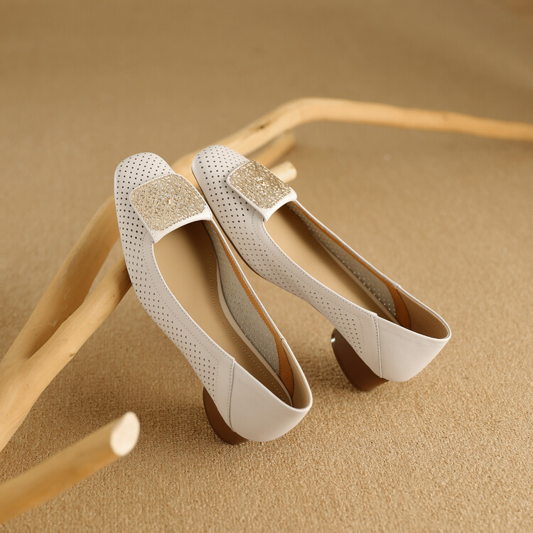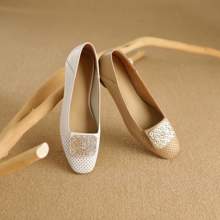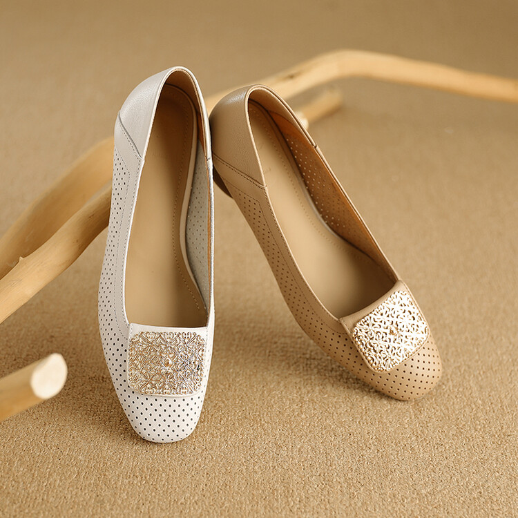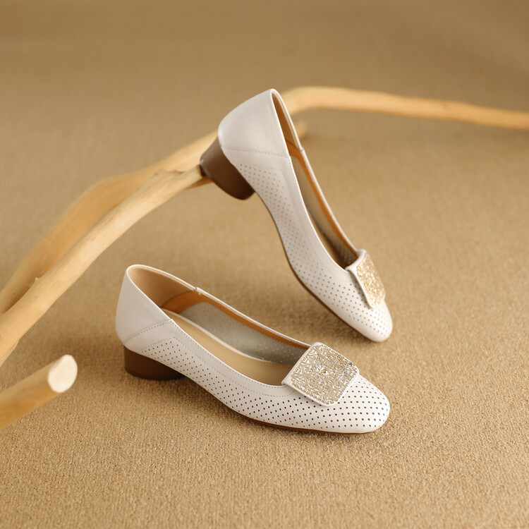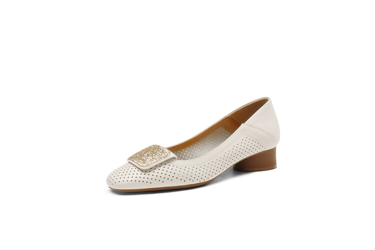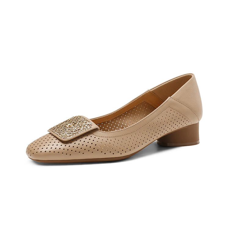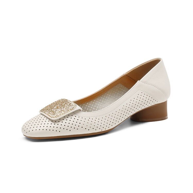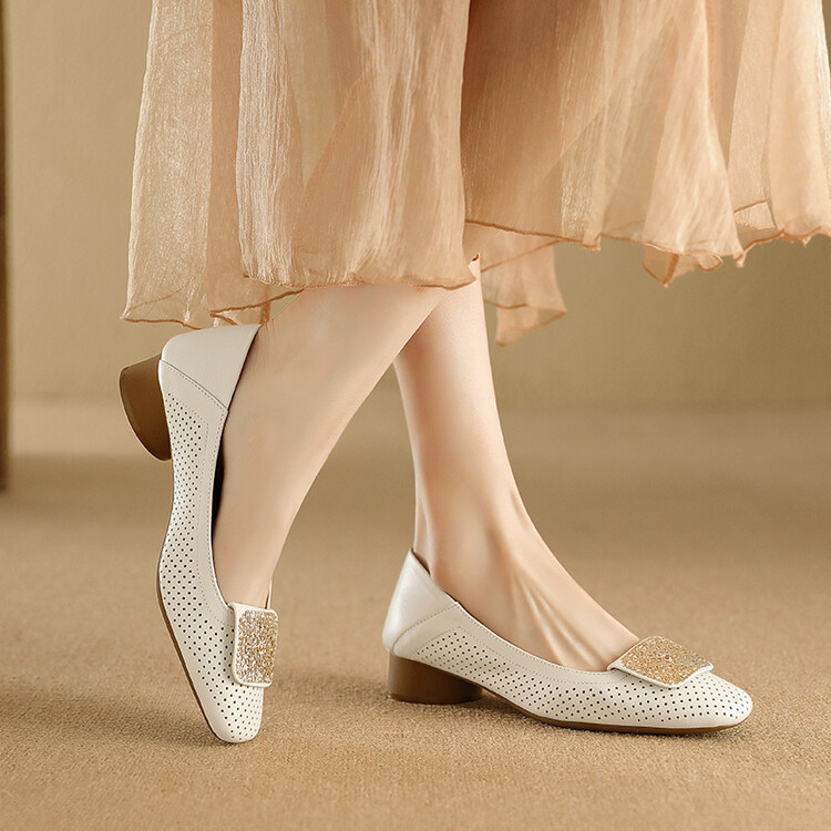 【预售5天】牛皮版~法式复古洞洞镂空凉鞋女夏季真皮透气粗跟单鞋LG&221-823