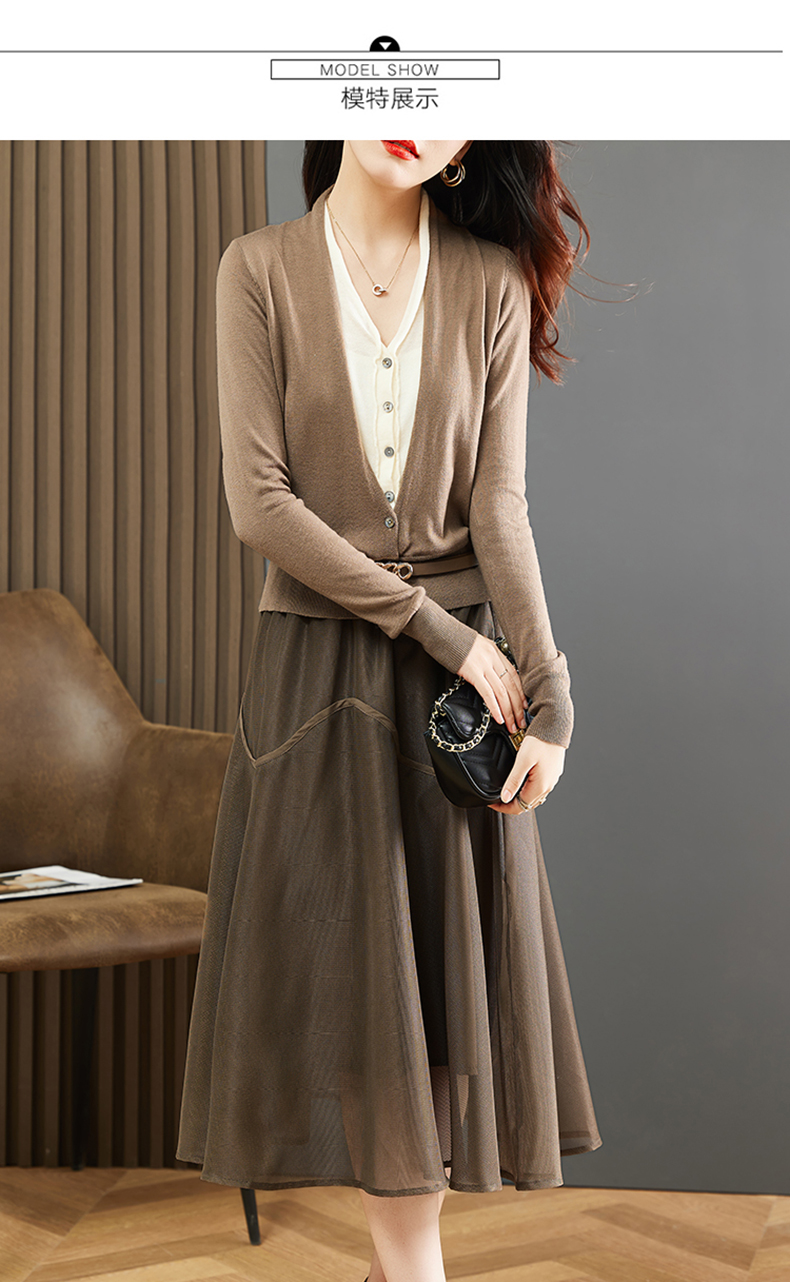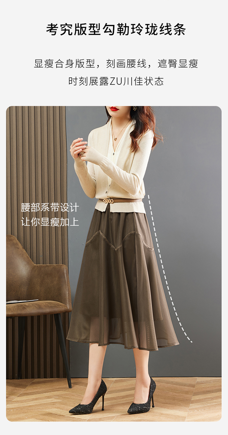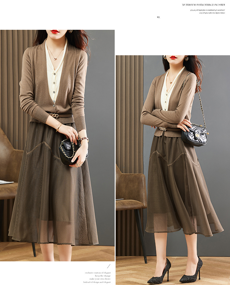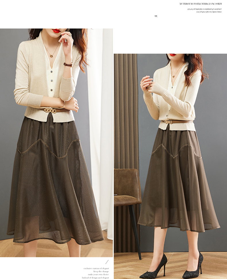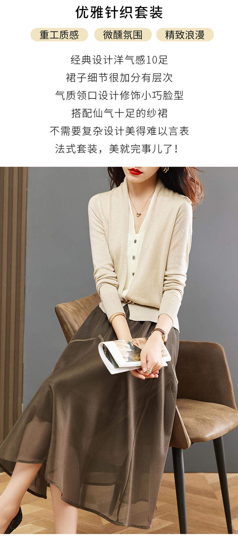 秋季新款,纯色针织衫气质时尚休闲套装裙两件套HR-GSTX99836
