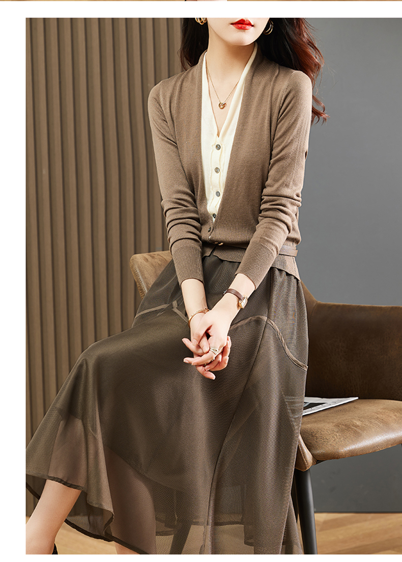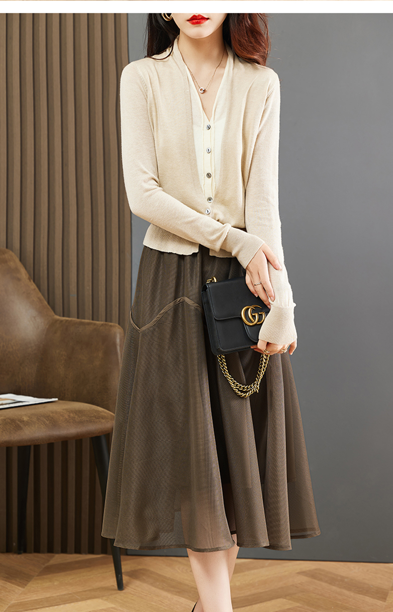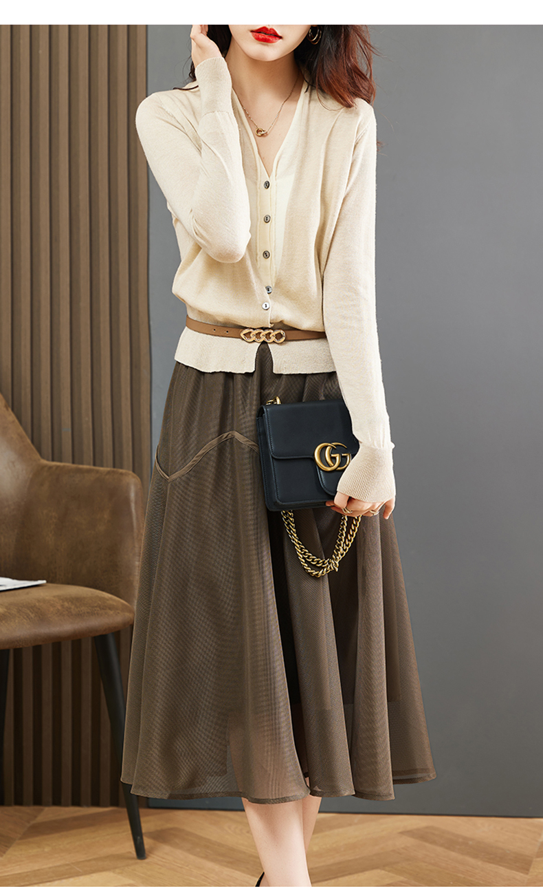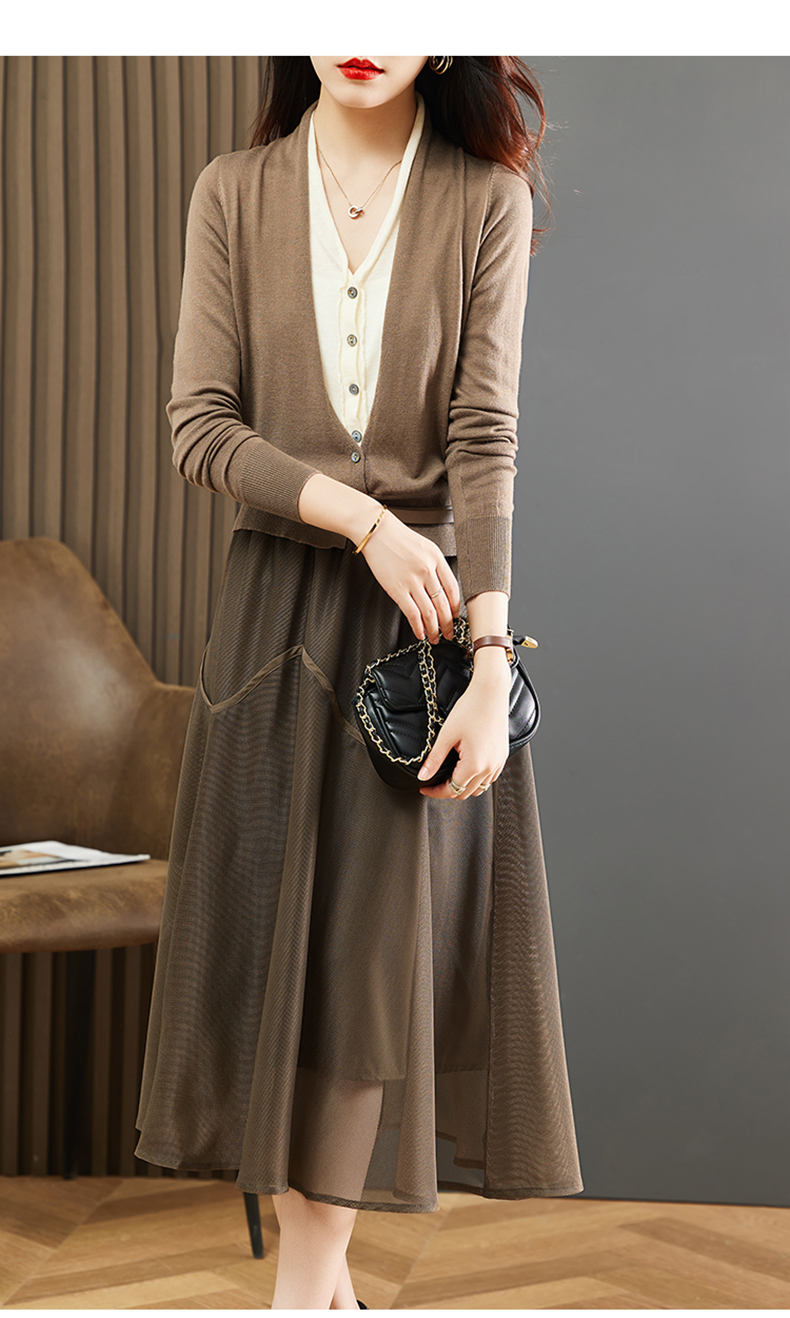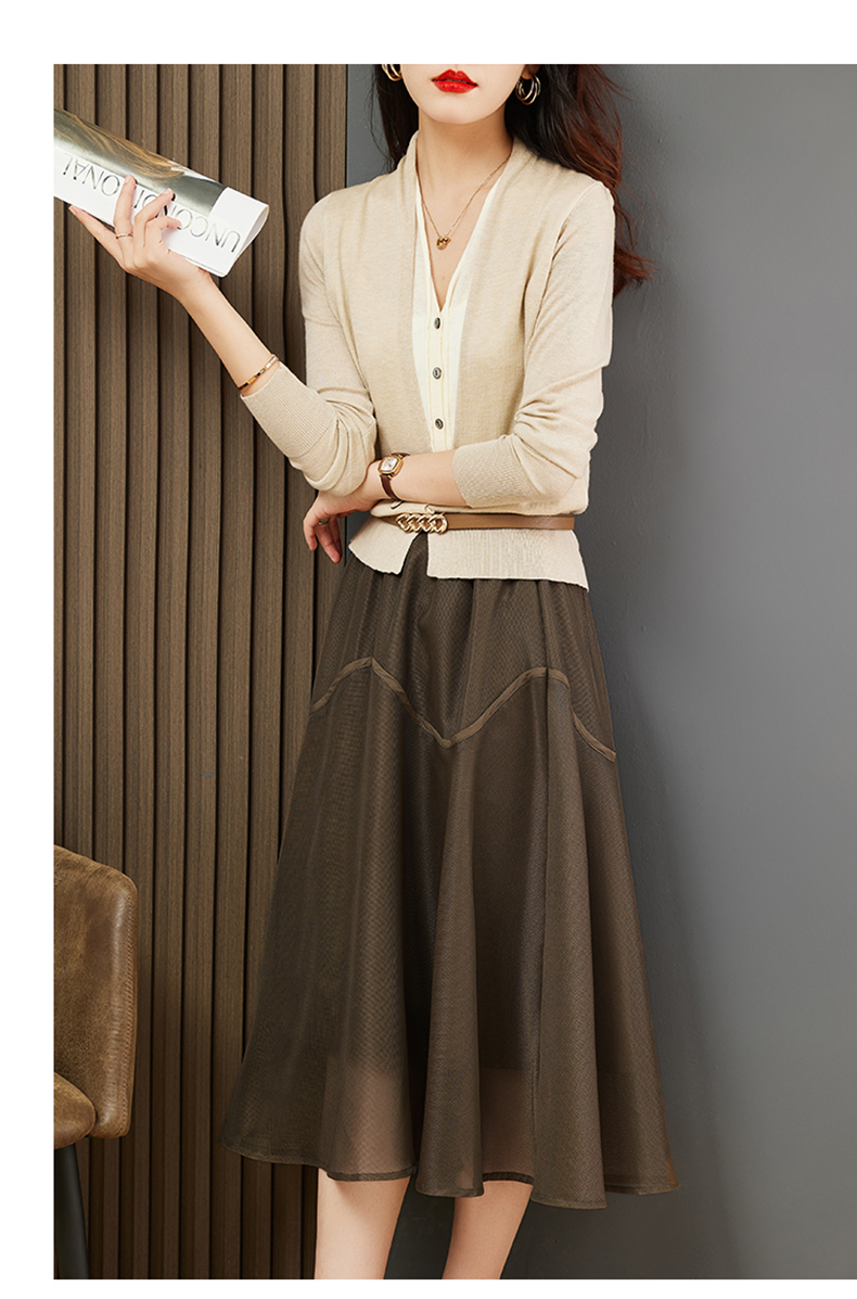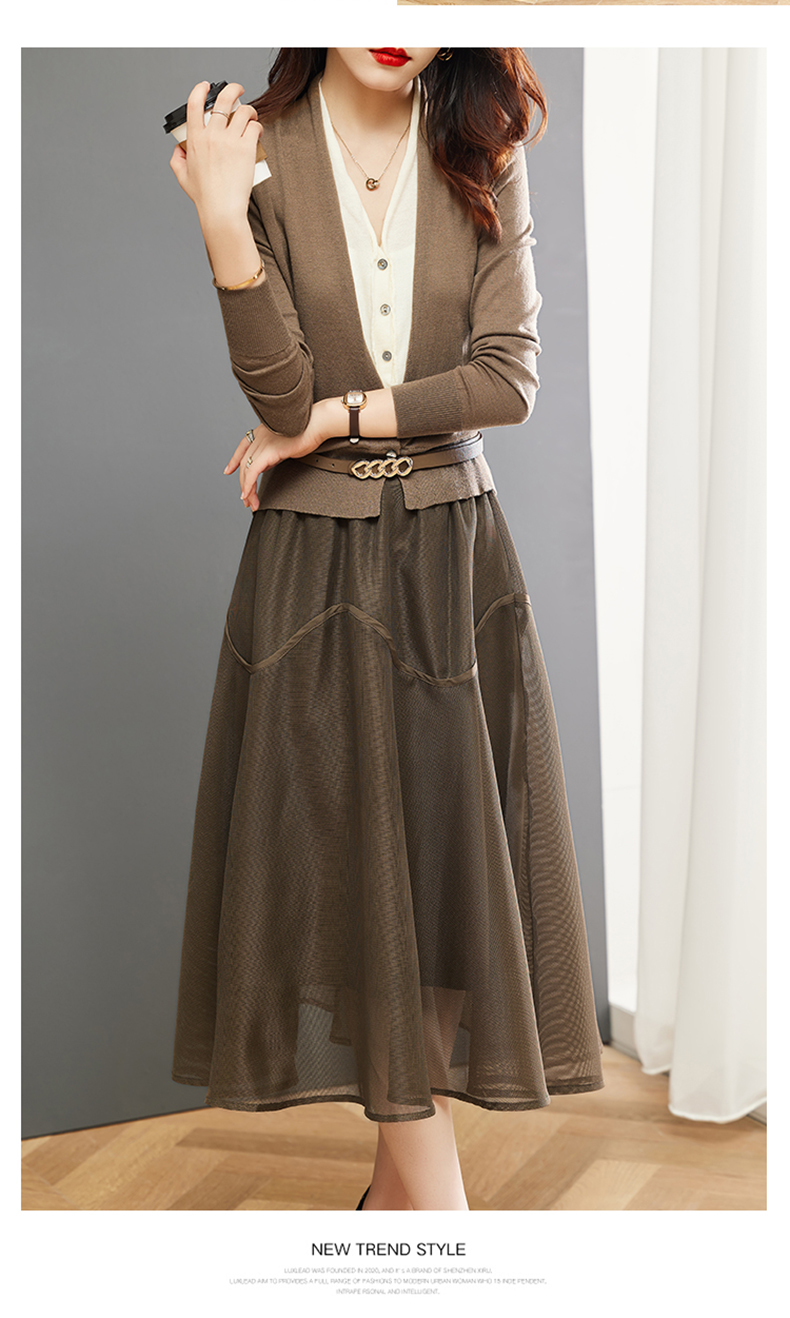 秋季新款,纯色针织衫气质时尚休闲套装裙两件套HR-GSTX99836