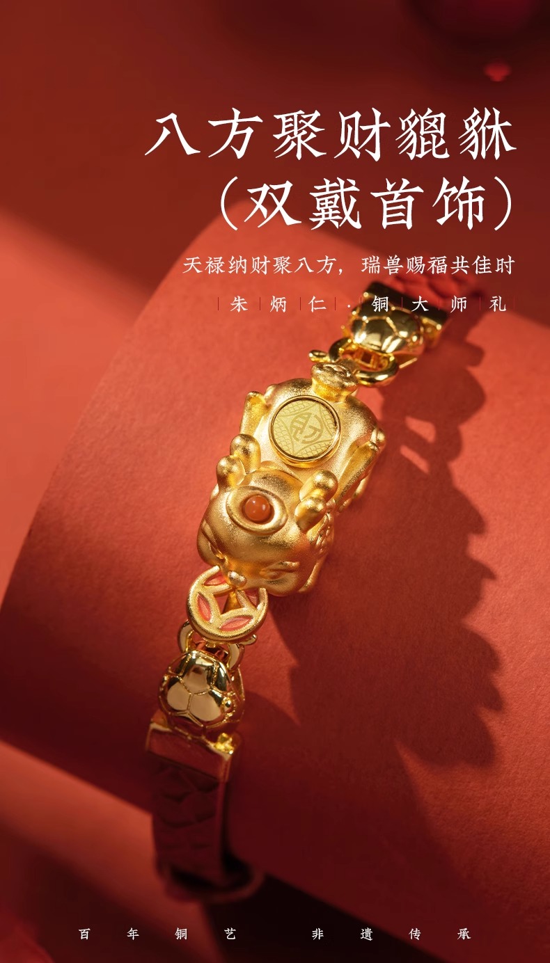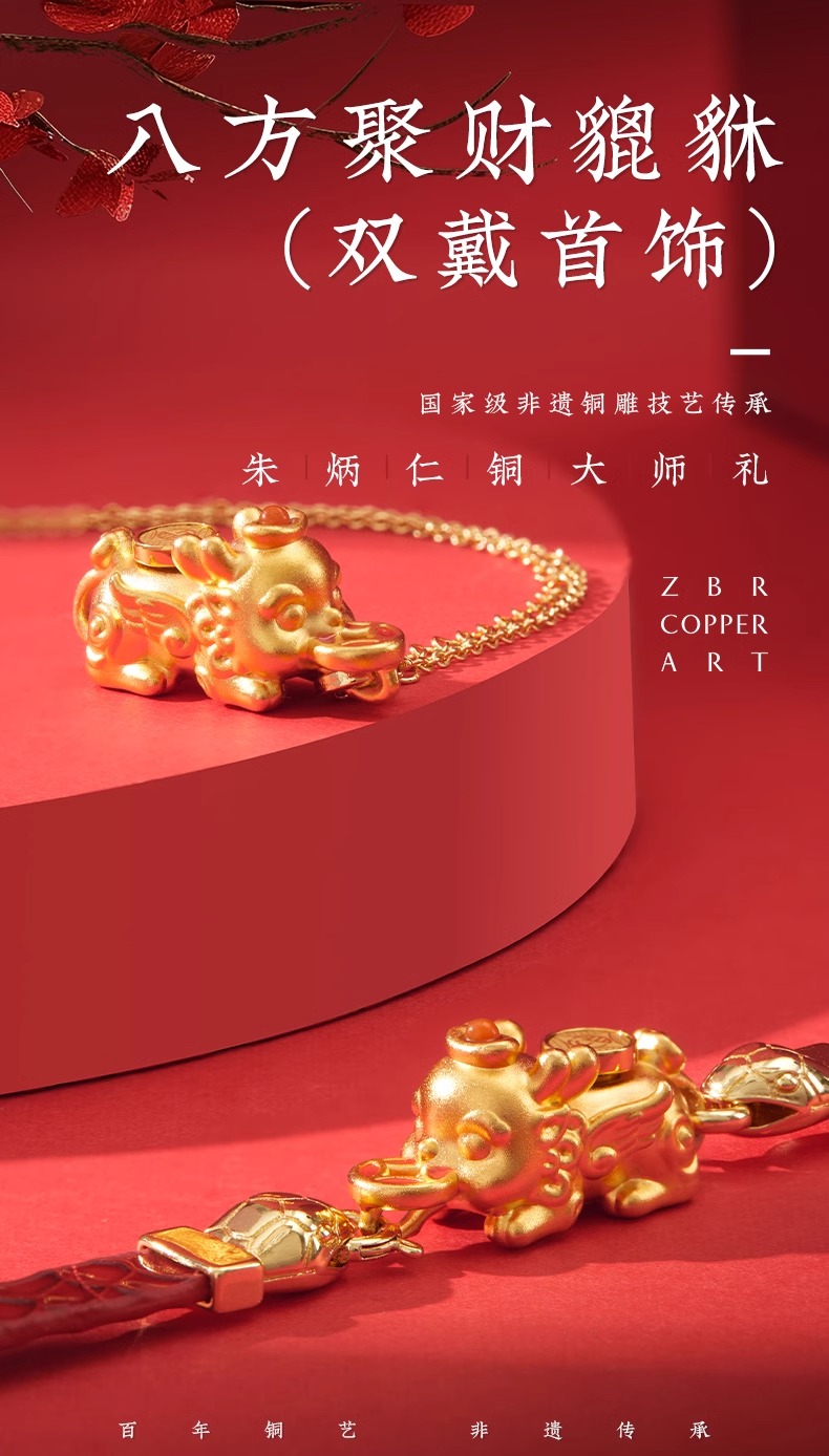 朱炳仁铜 八方聚财貔貅手链项链招财转运手串编织送男士节日礼物