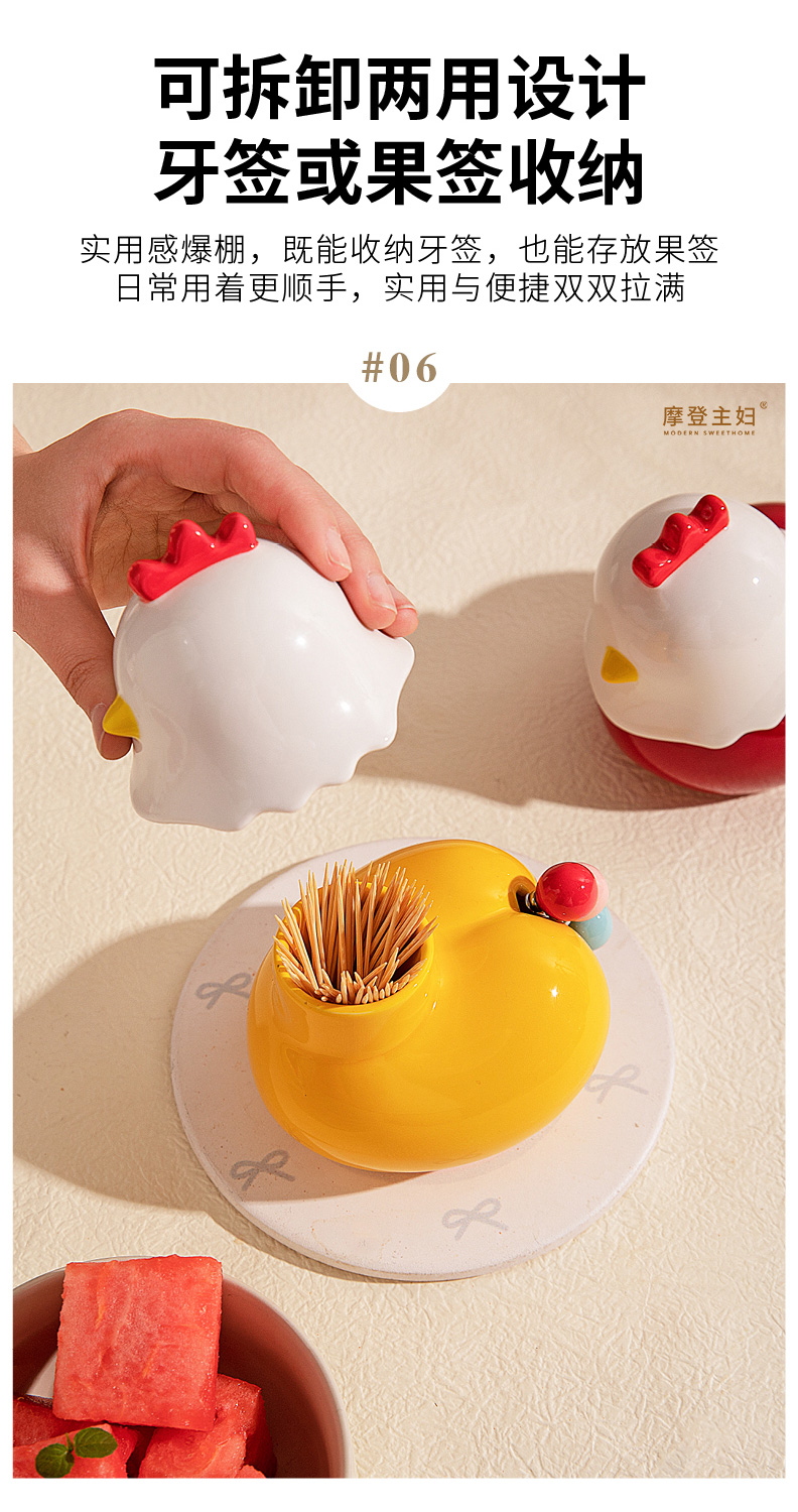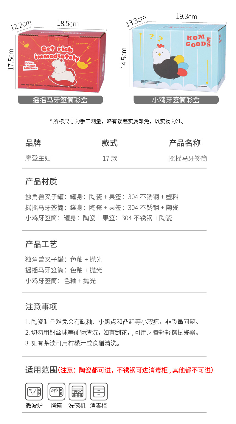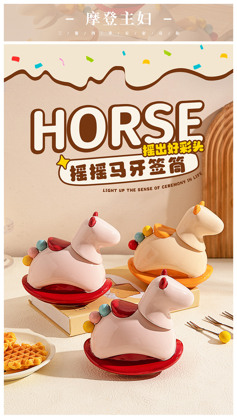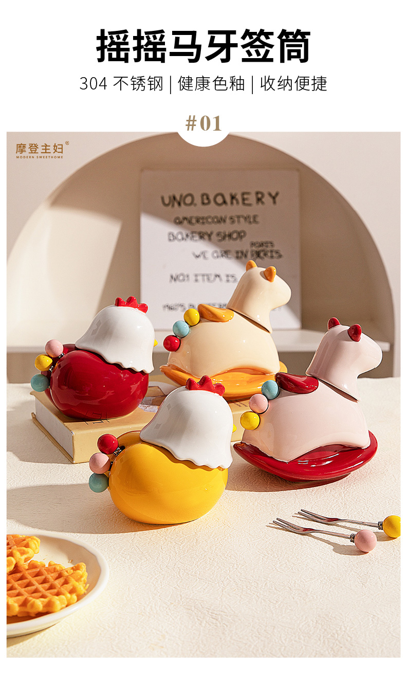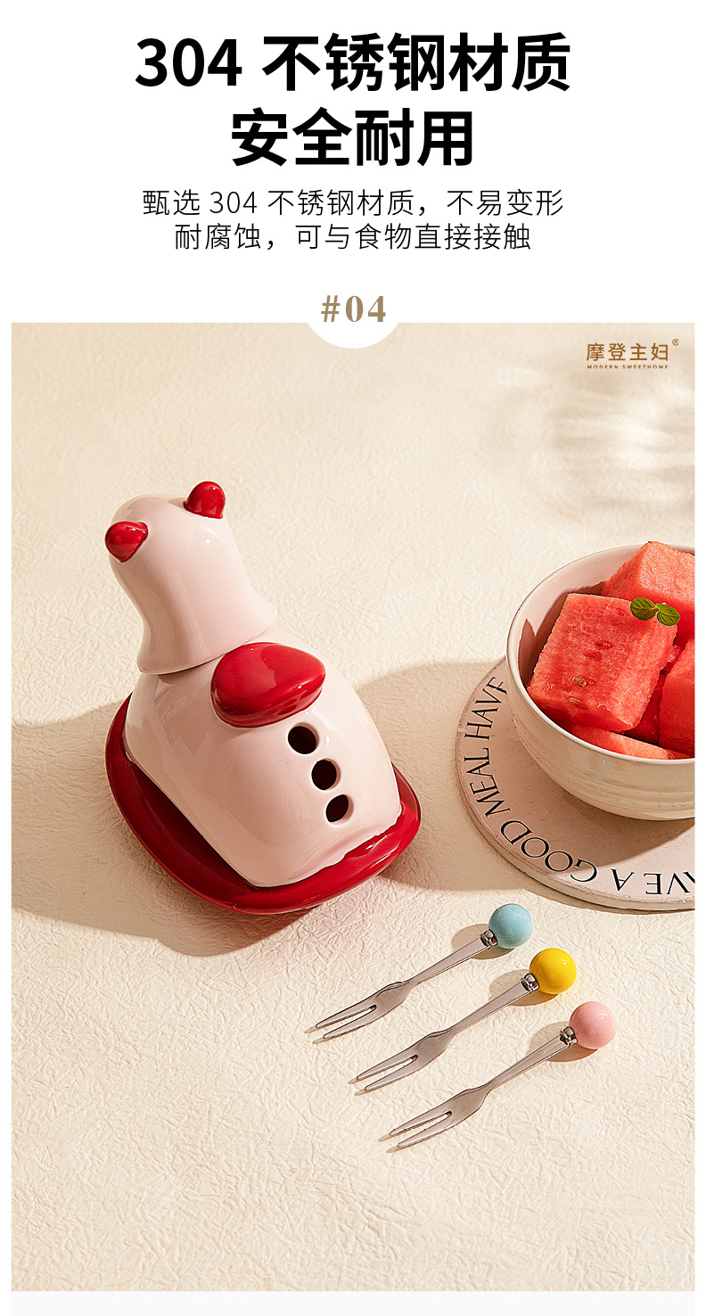 摩登主妇304不锈钢水果叉水果签牙签筒新年马年本命年礼物收纳罐
