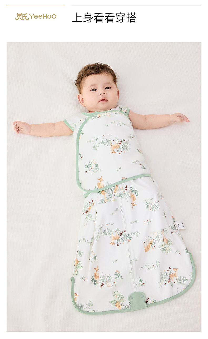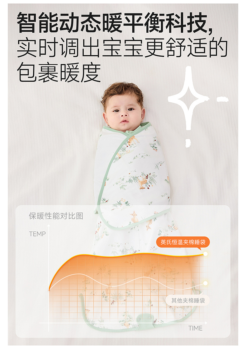【5A抗菌+防惊跳】英氏睡袋秋冬款婴儿春秋新生儿宝宝恒温襁褓四季通用