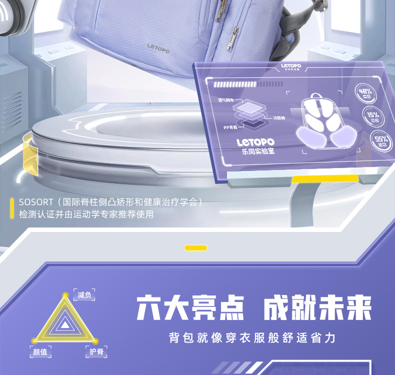 【新品】LeTOPO乐同护脊减负青少年系列书包 商品图4