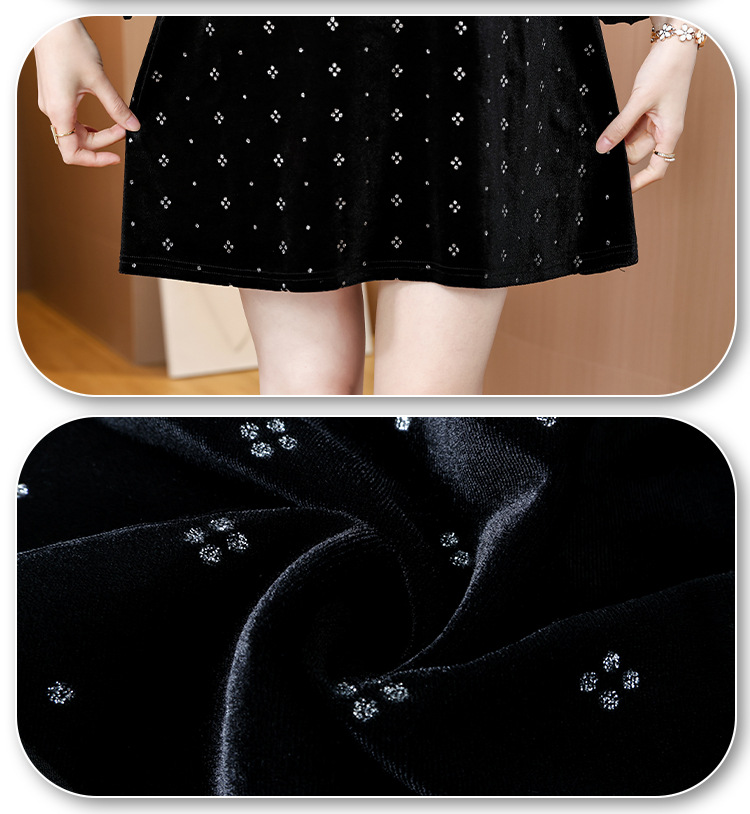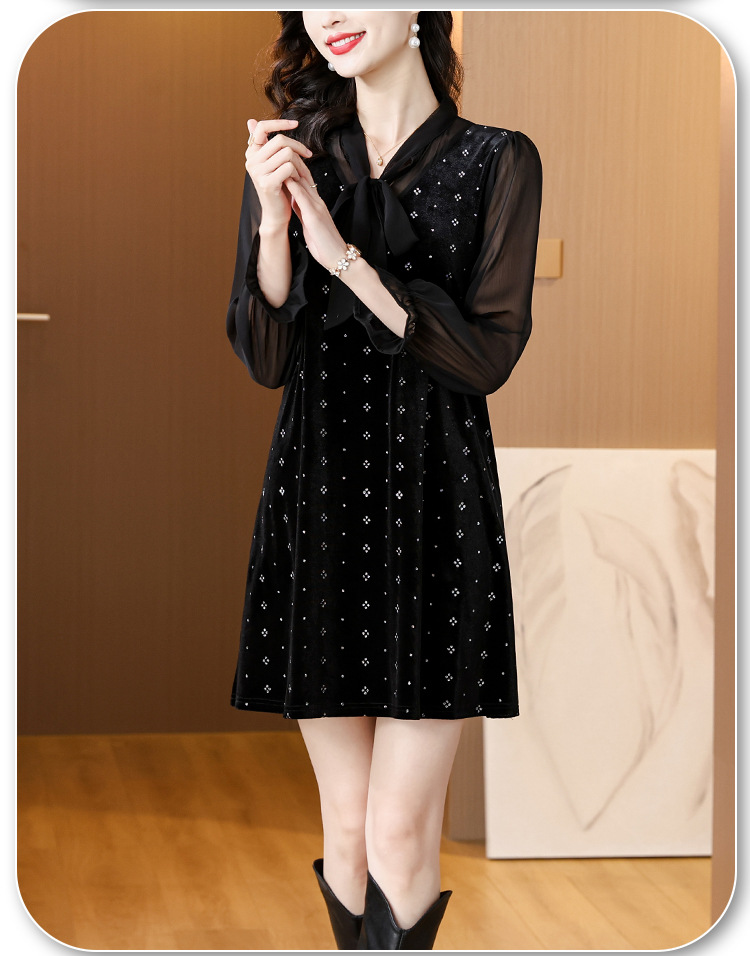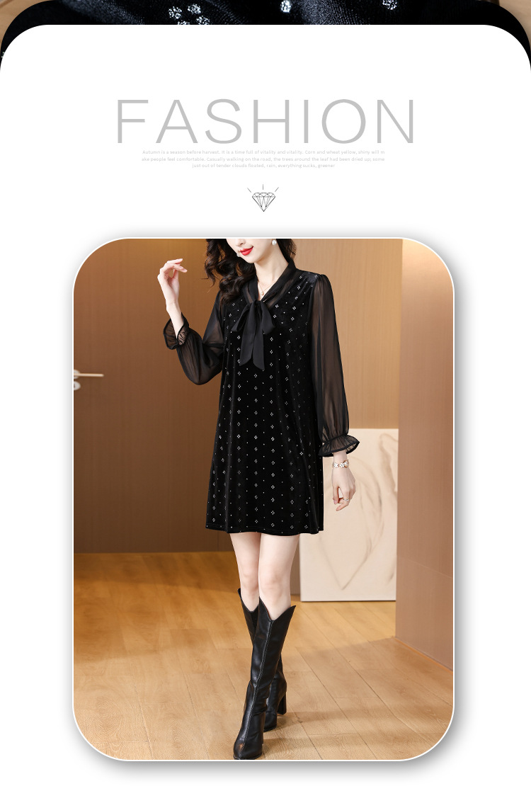 雀说新款时尚洋气V领系带丝绒拼接宽松减龄中裙AL5919
