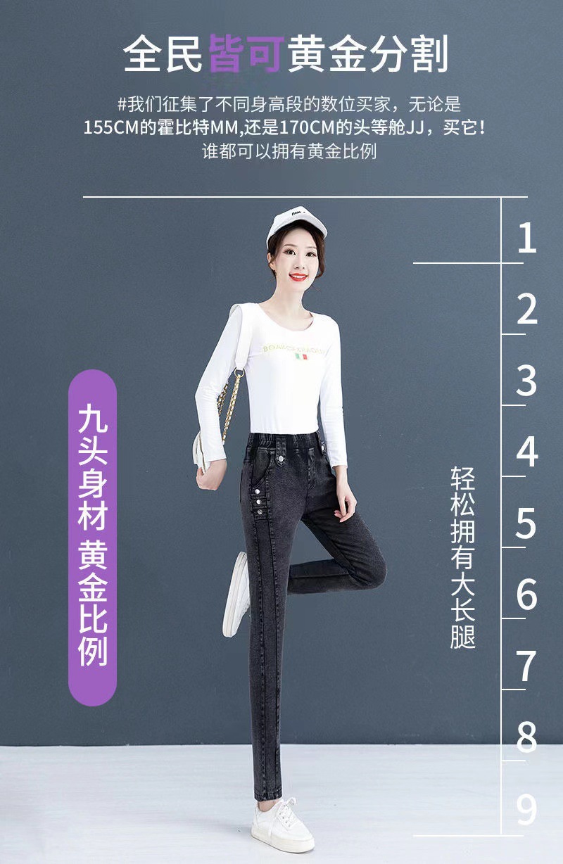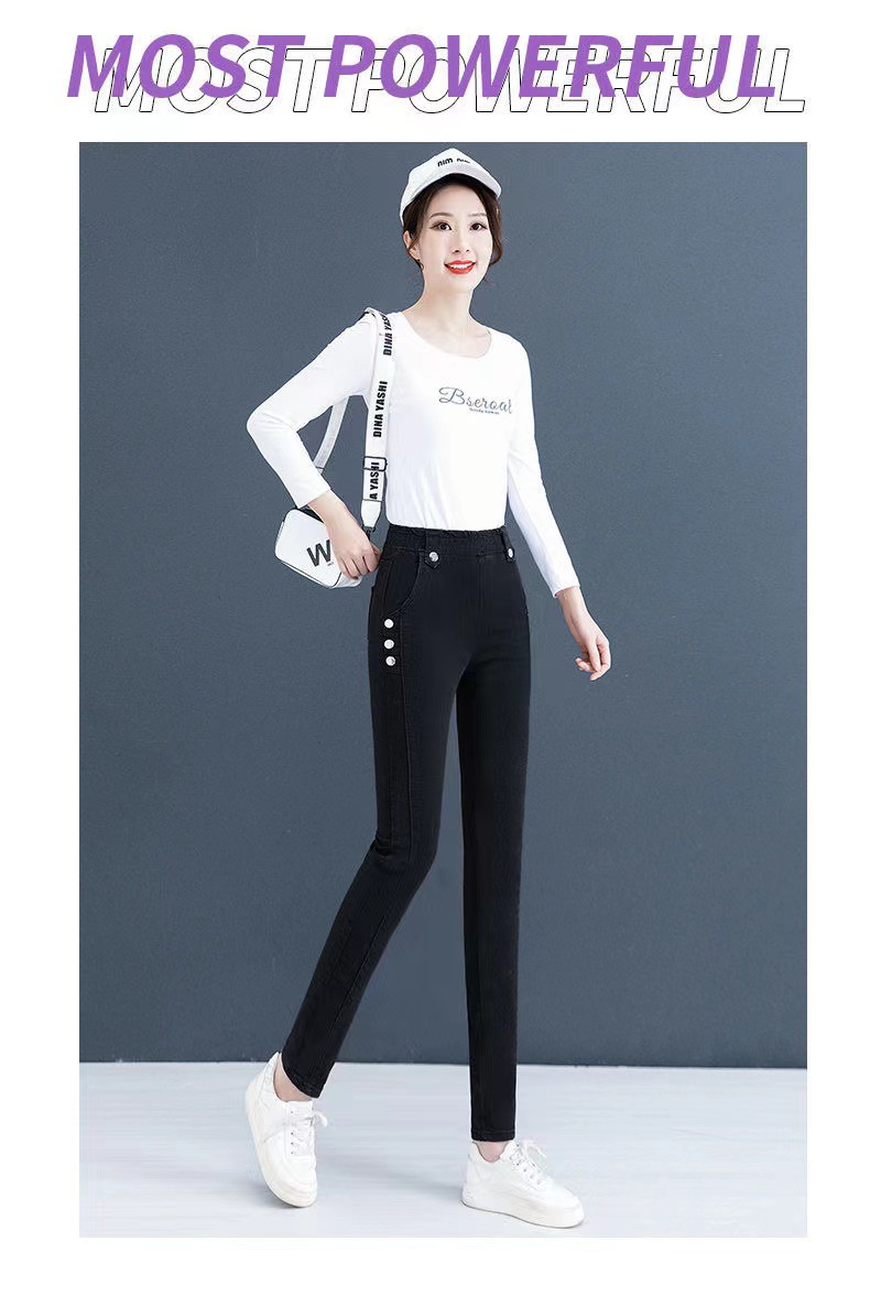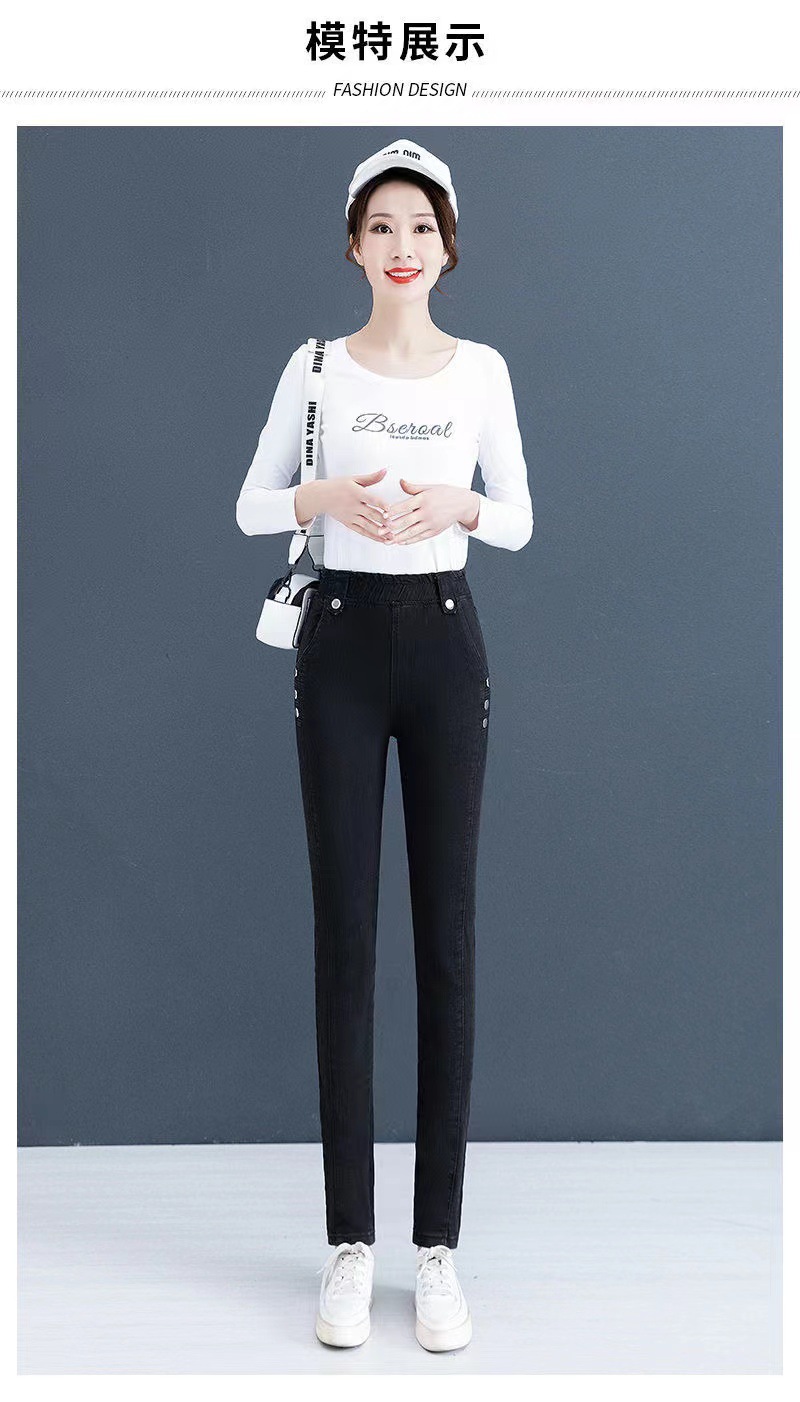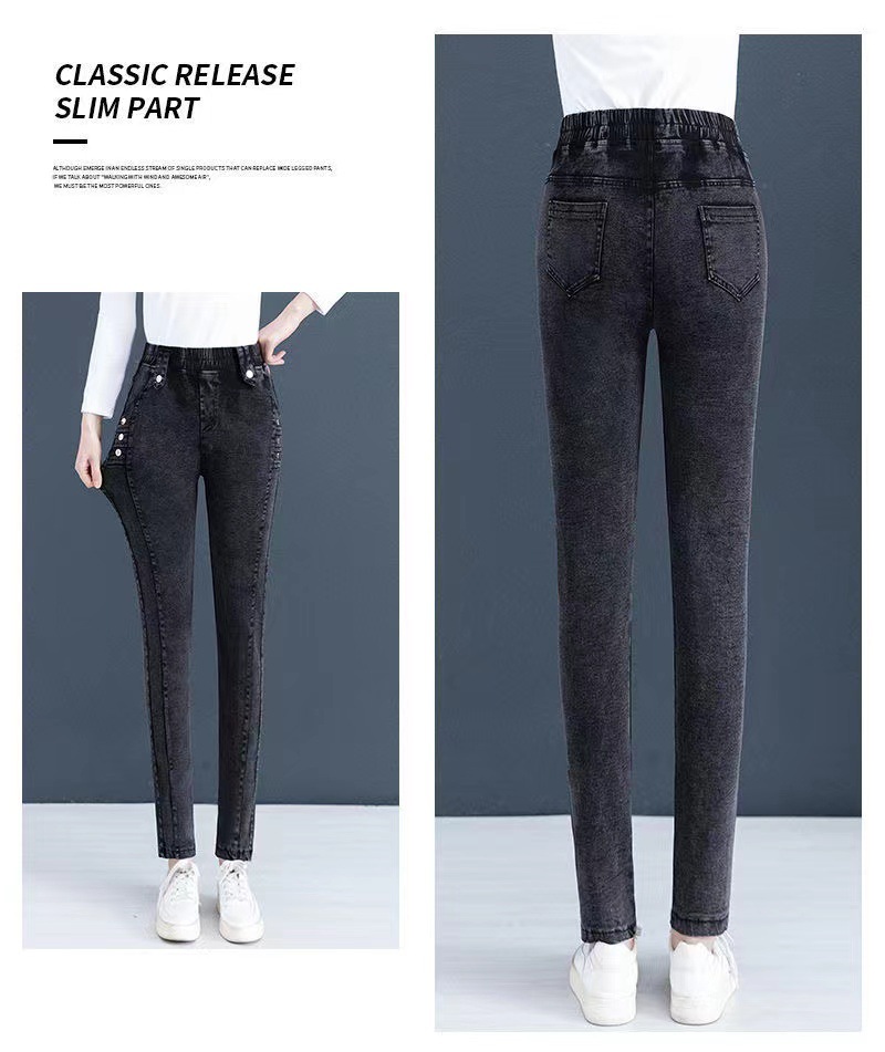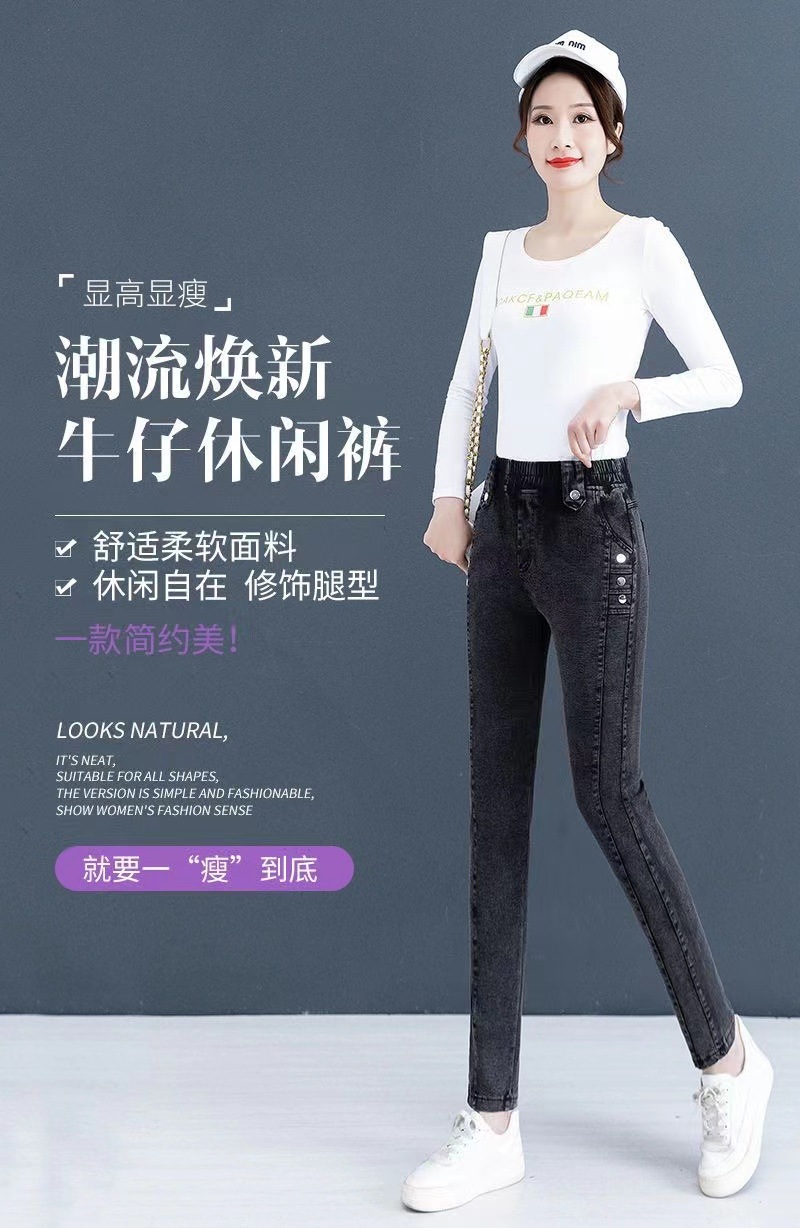 百媚生 【单里/加绒】松紧腰弹力牛仔裤高腰小脚裤9058