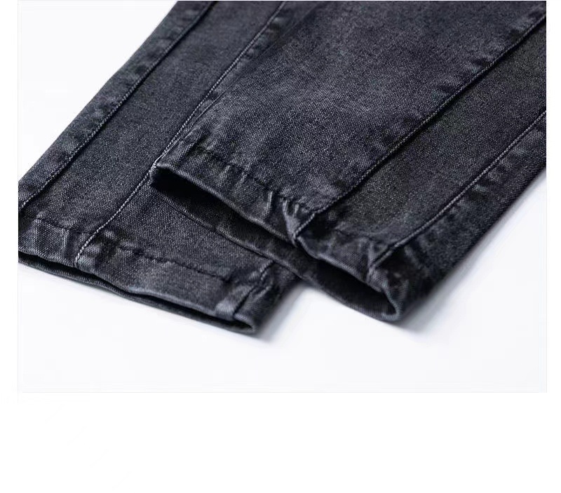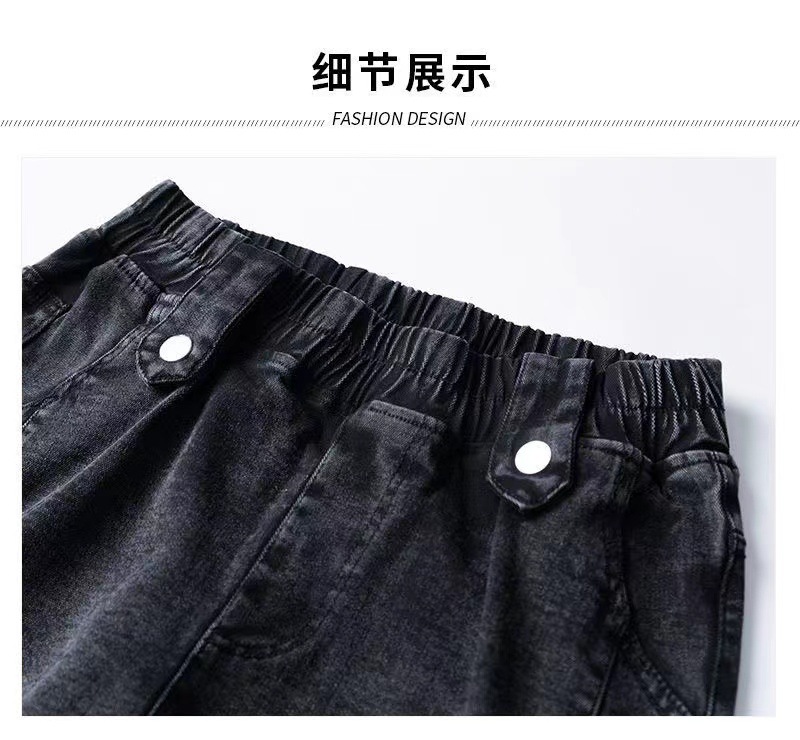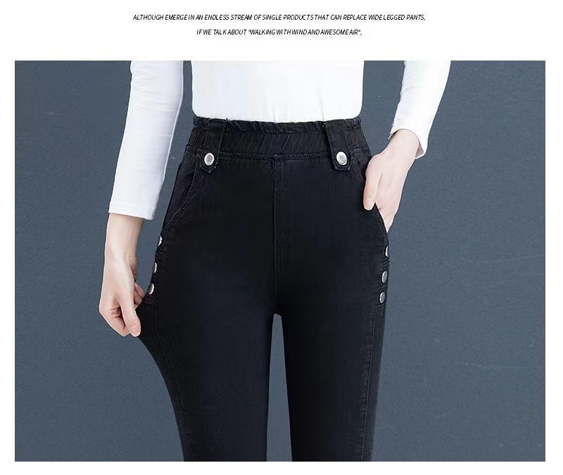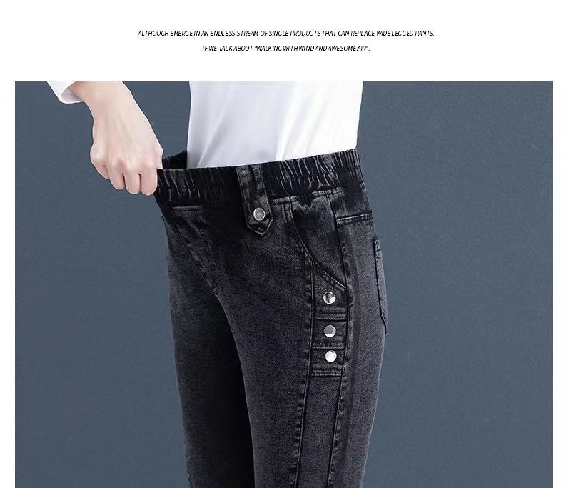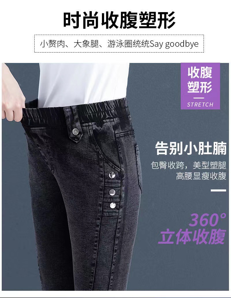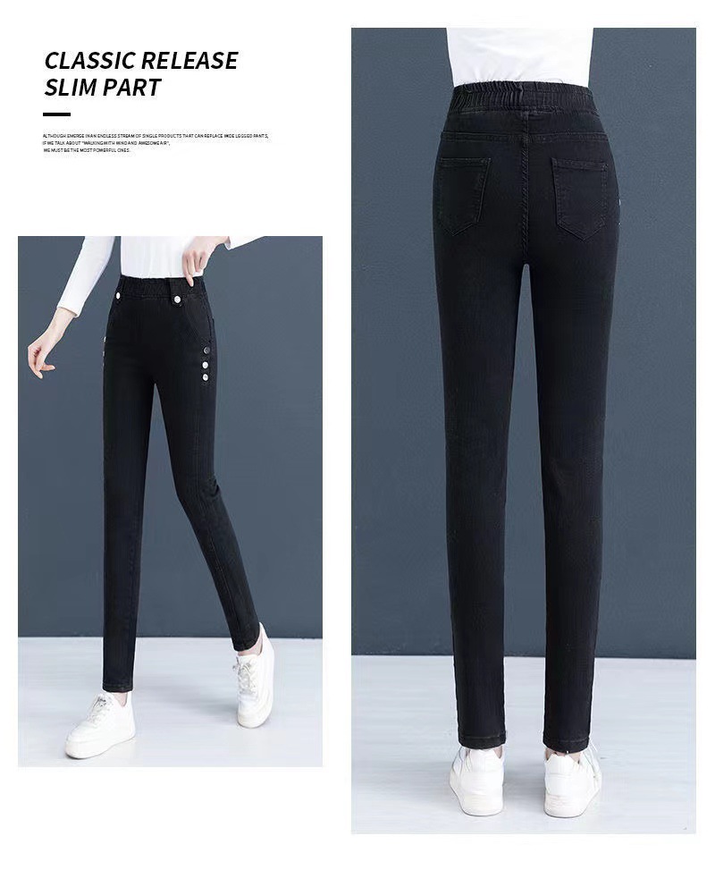 百媚生 【单里/加绒】松紧腰弹力牛仔裤高腰小脚裤9058