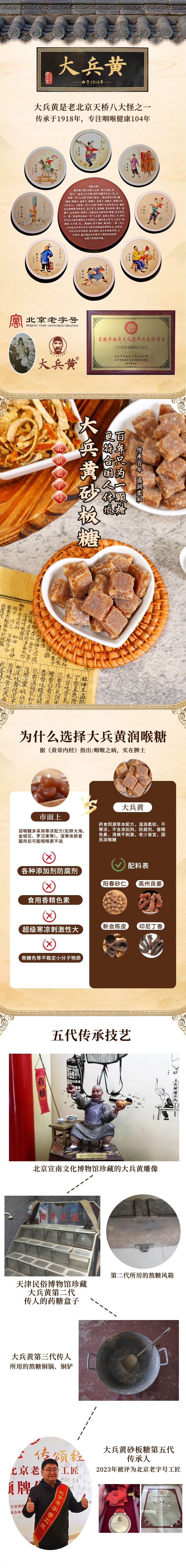 【糖膏精选】大兵黄老北京砂板糖润喉糖 源于清宫御用药膳方 非遗技艺传承 手工古法熬制 配料表干净 润燥护喉 清凉口感