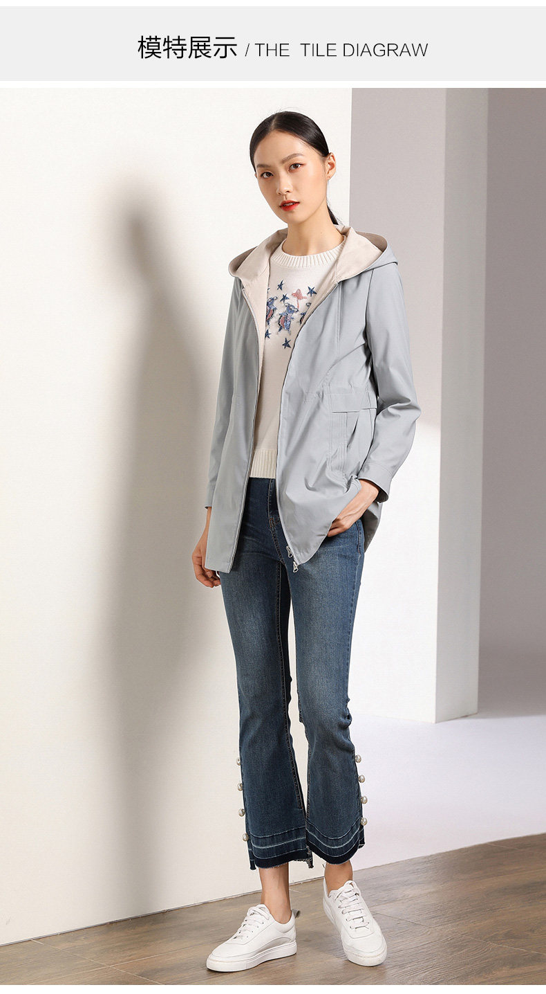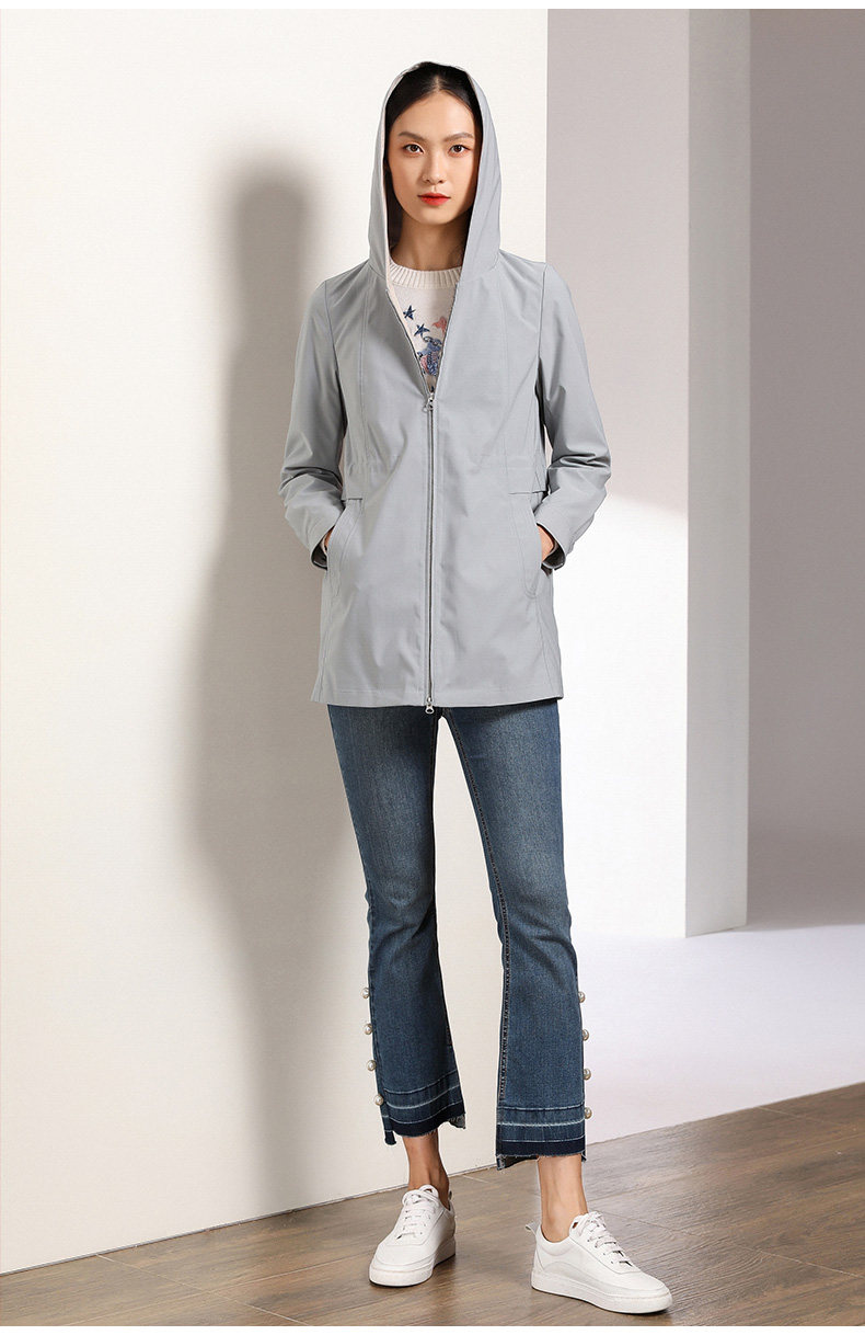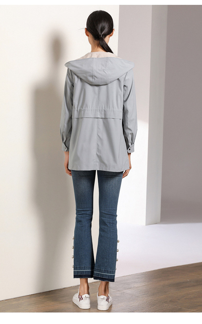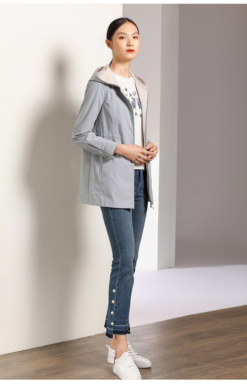 乔万尼秋装修身直筒气质连帽小个子休闲风衣外套女中长EN3A336