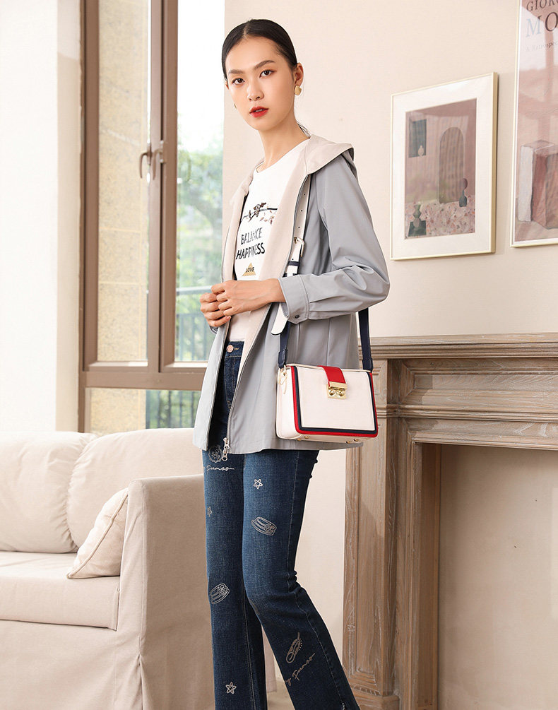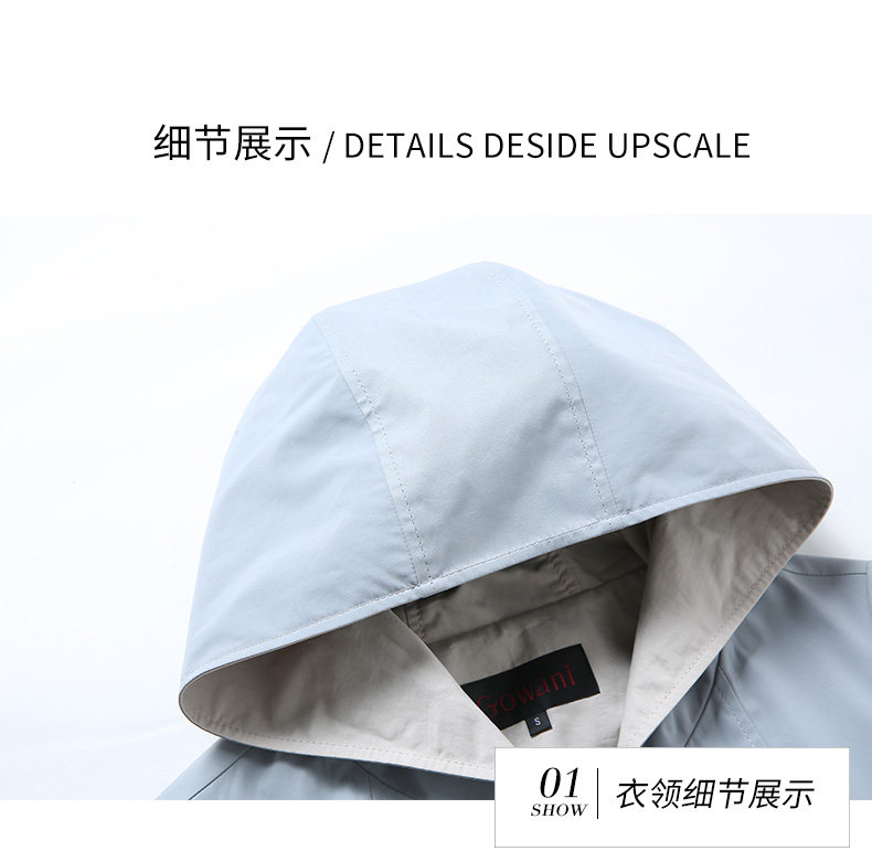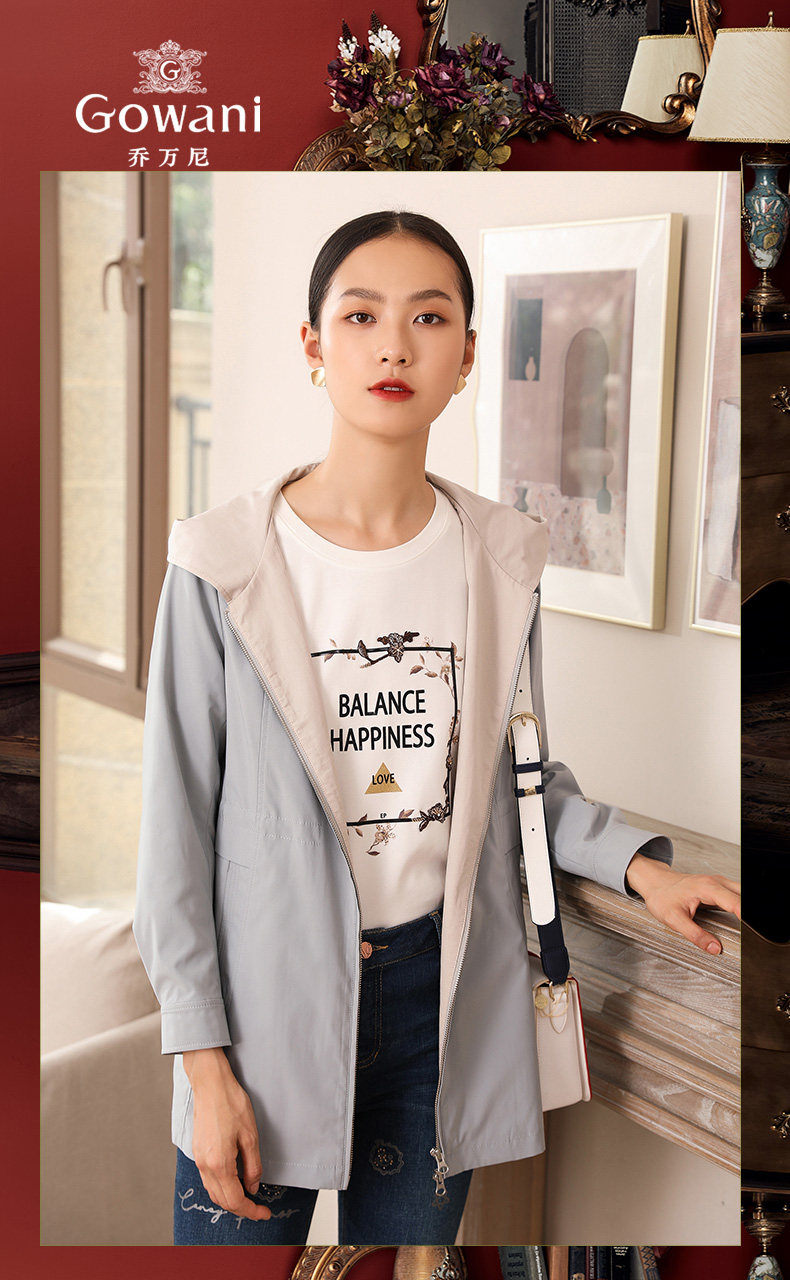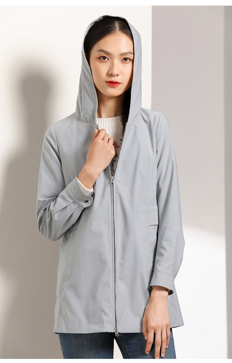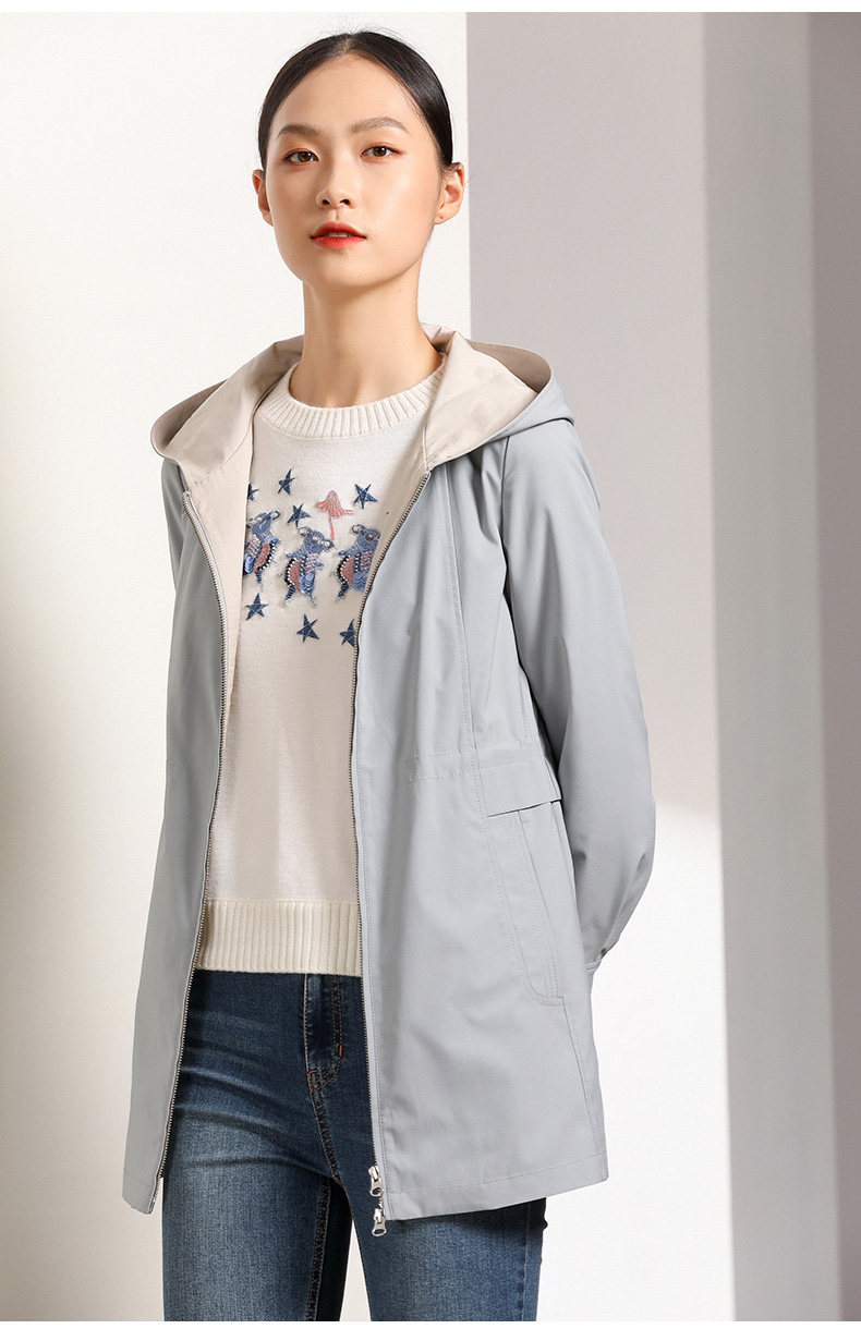 乔万尼秋装修身直筒气质连帽小个子休闲风衣外套女中长EN3A336