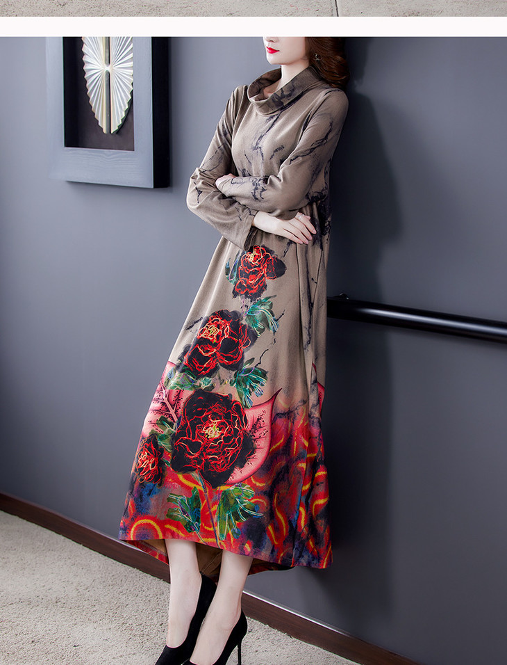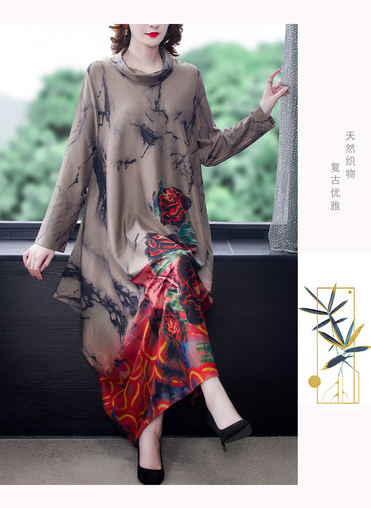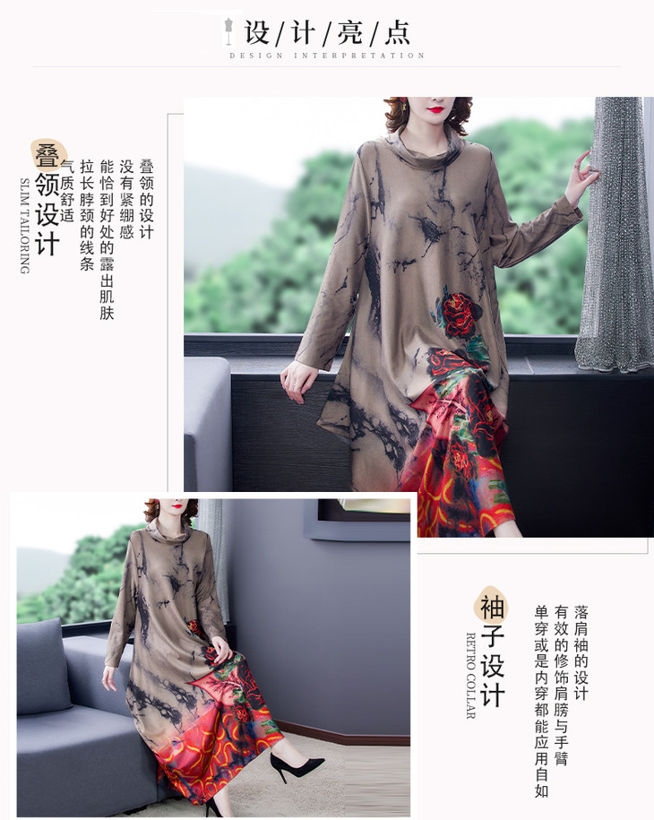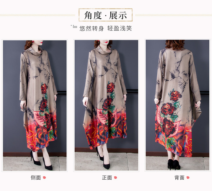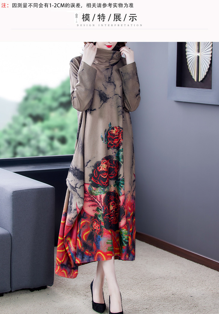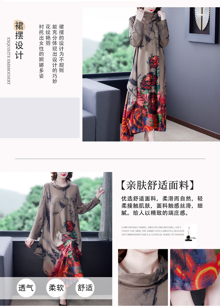 DJ-NRJ2FE220-F-MG8613优雅复古高领不规则印花连衣裙