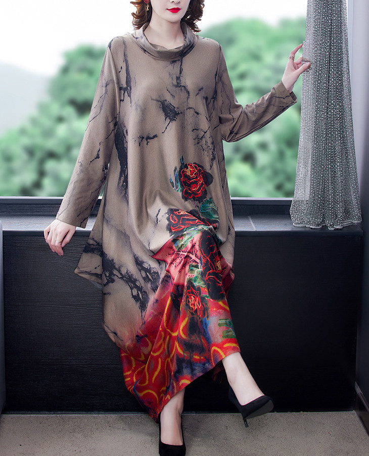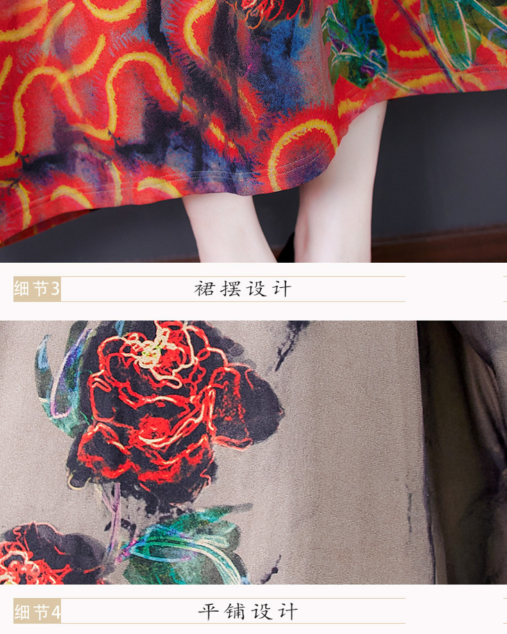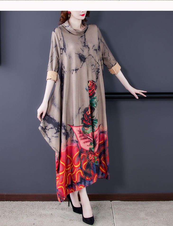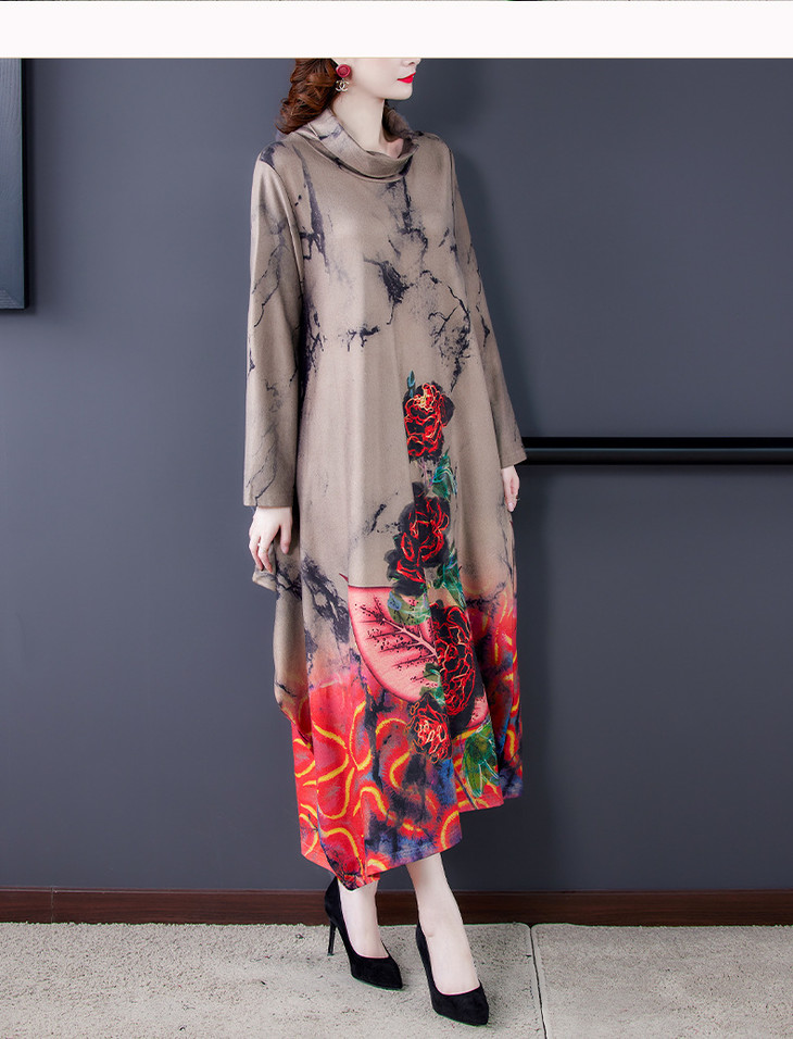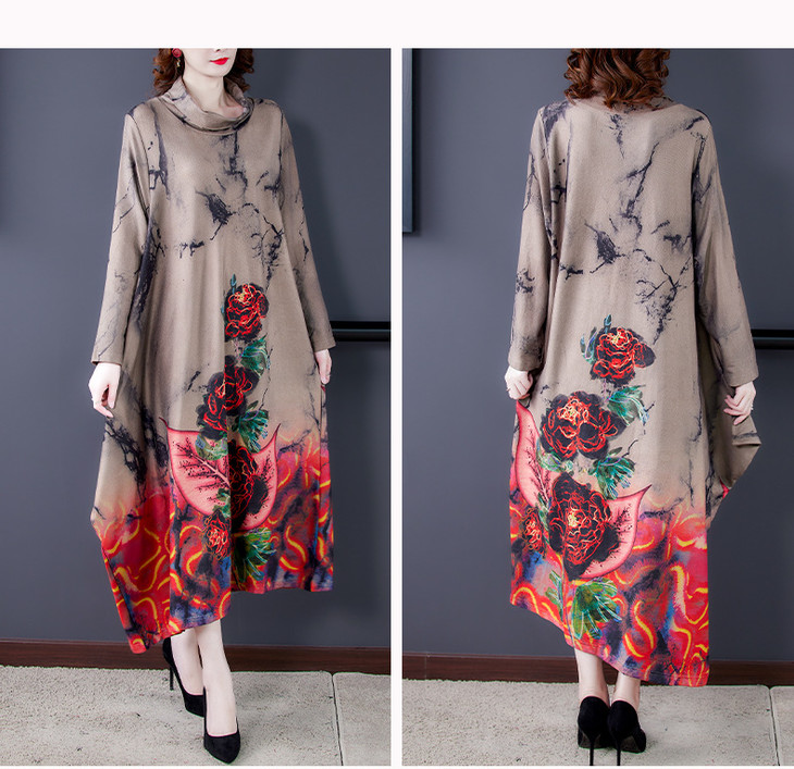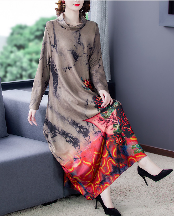 DJ-NRJ2FE220-F-MG8613优雅复古高领不规则印花连衣裙