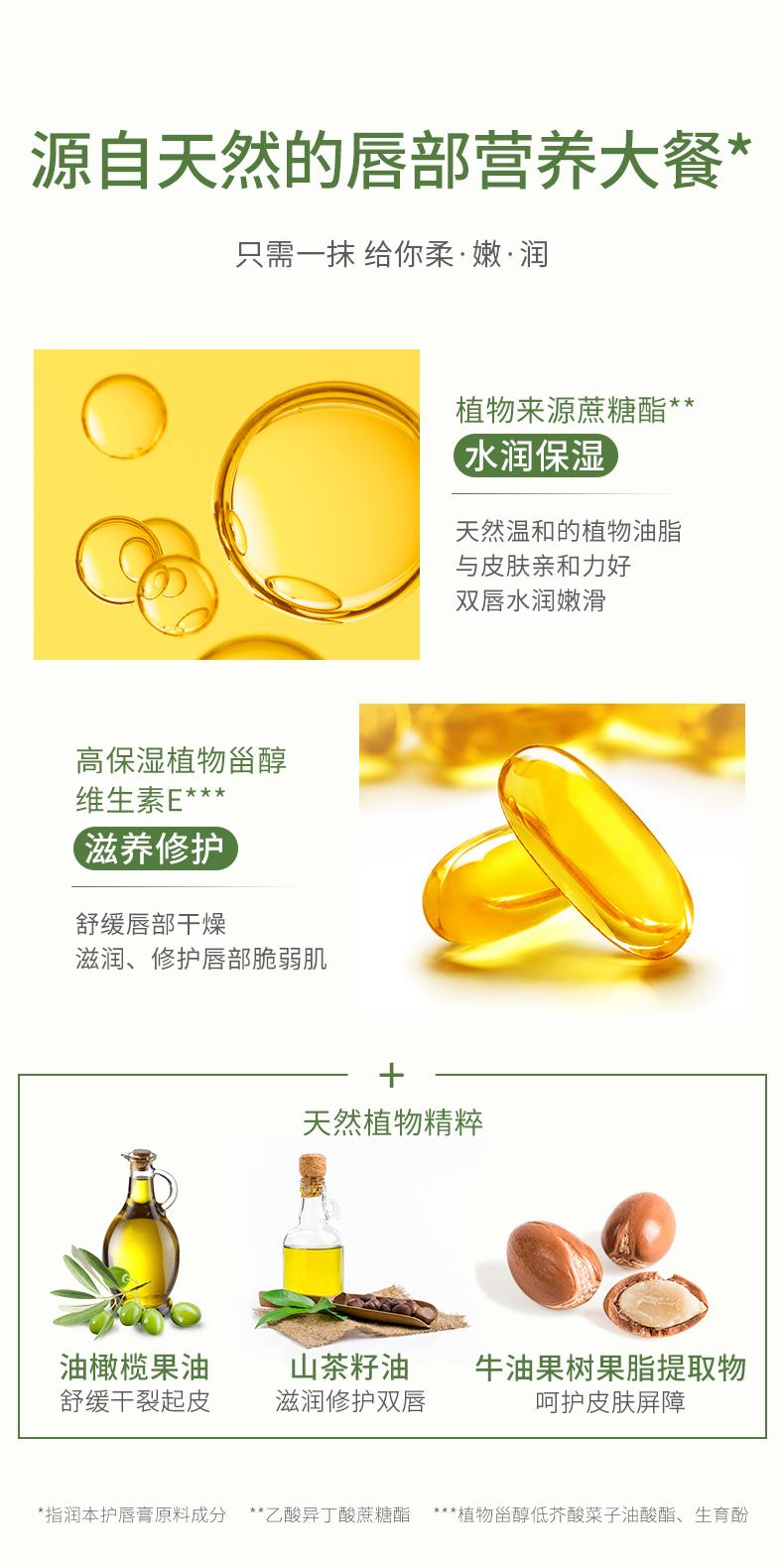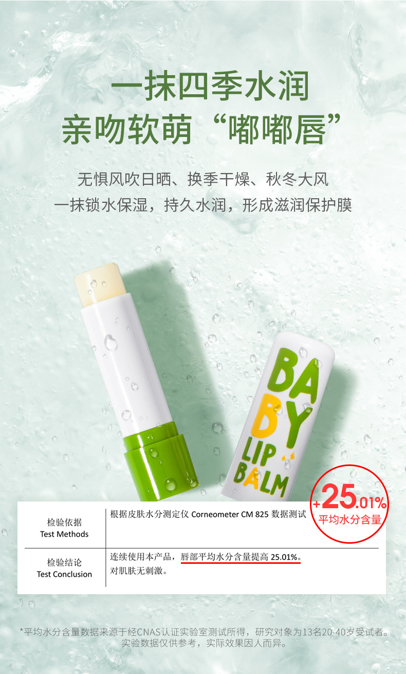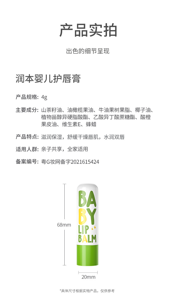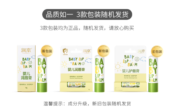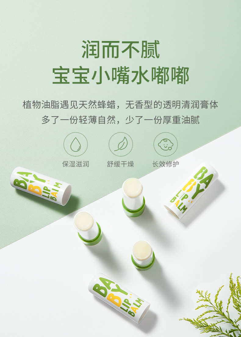 润本润唇膏的成分简单、安全,无矿物油,不添加防腐剂