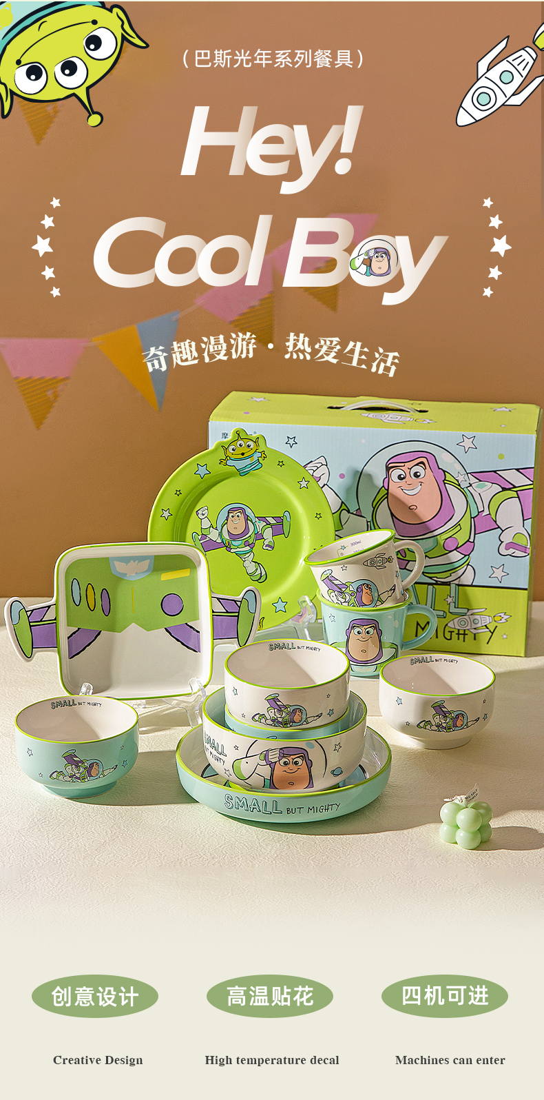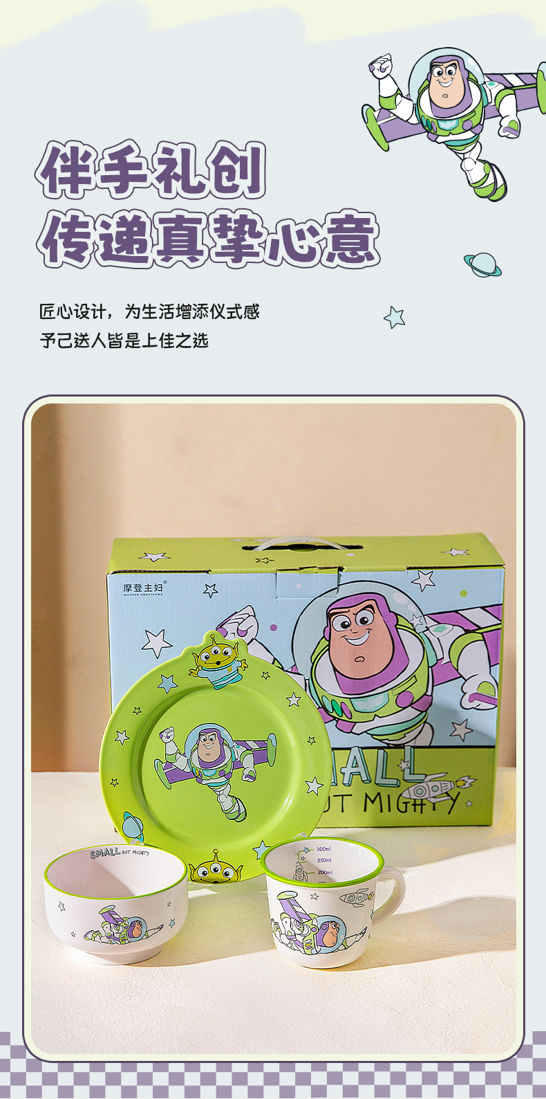 摩登主妇巴斯光年餐具碗碟套装儿童碗家用盘子一人食乔迁生日礼物