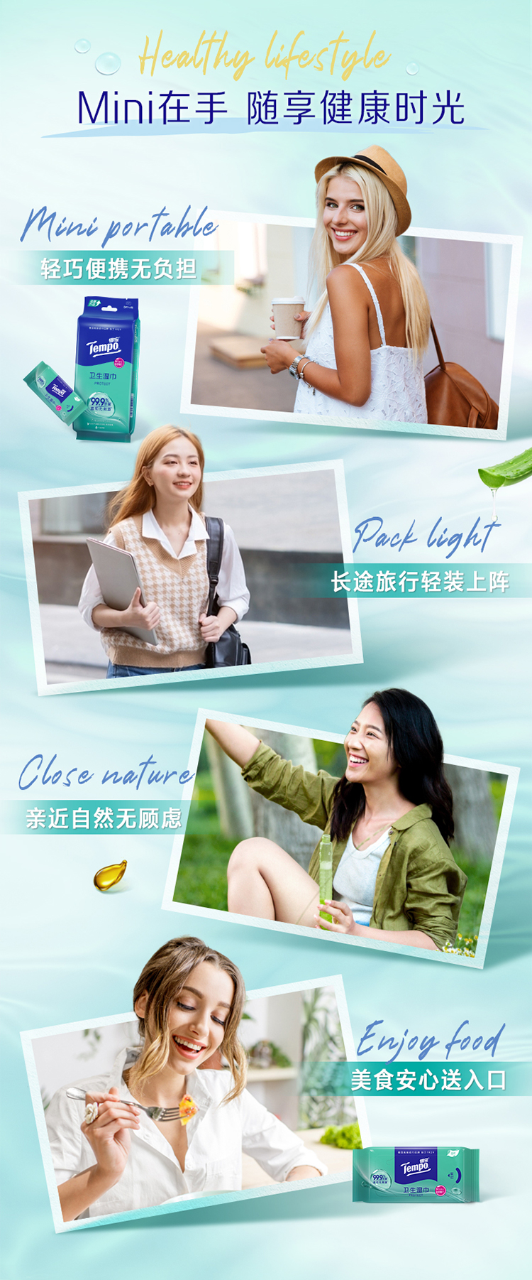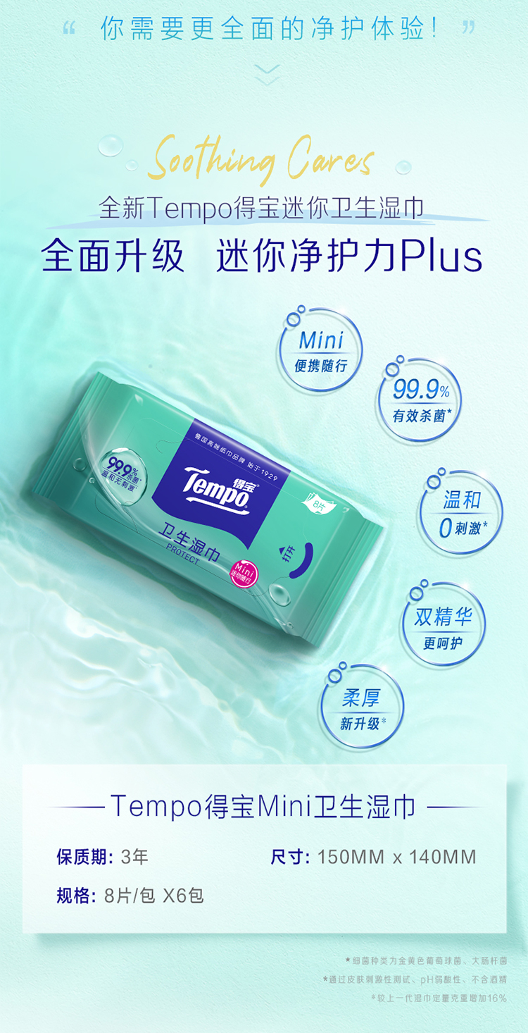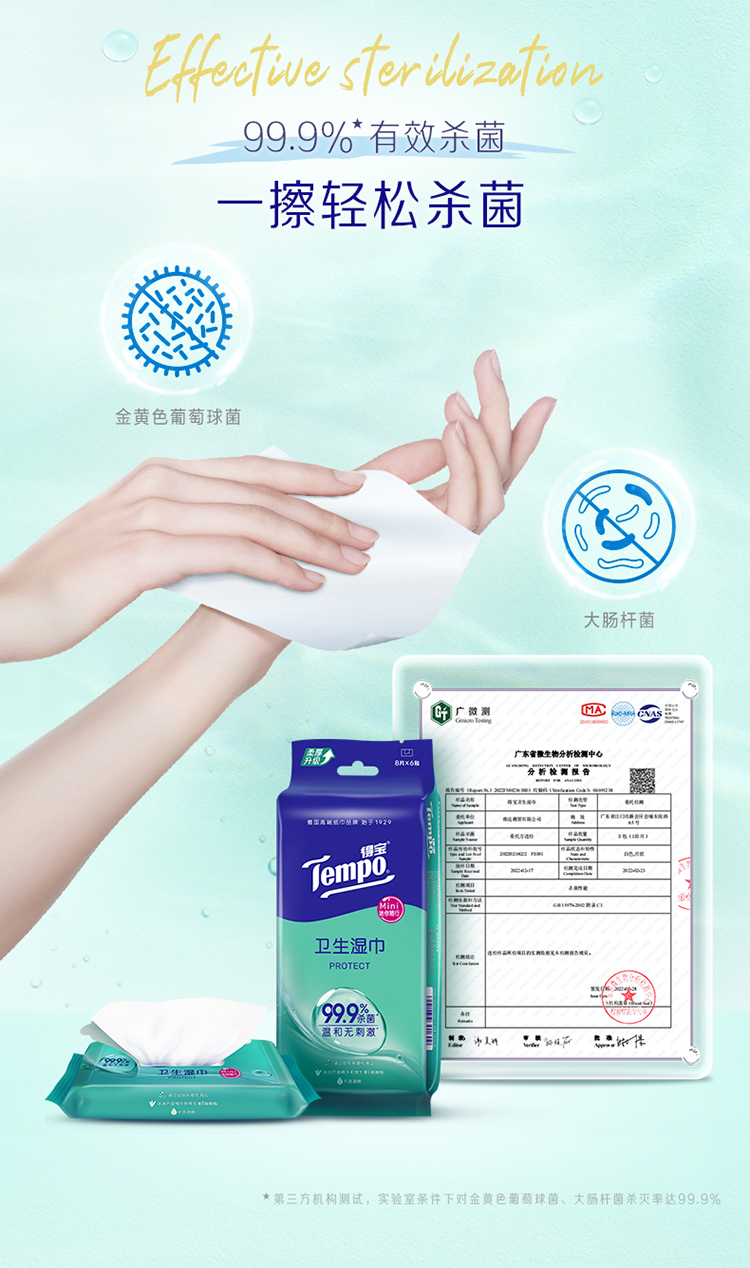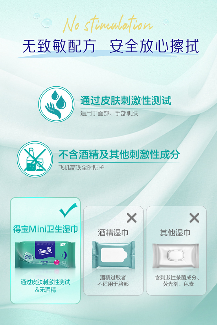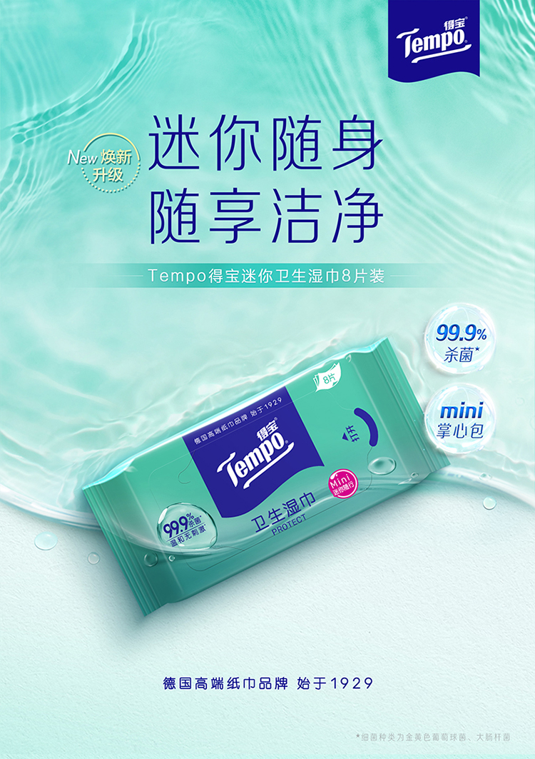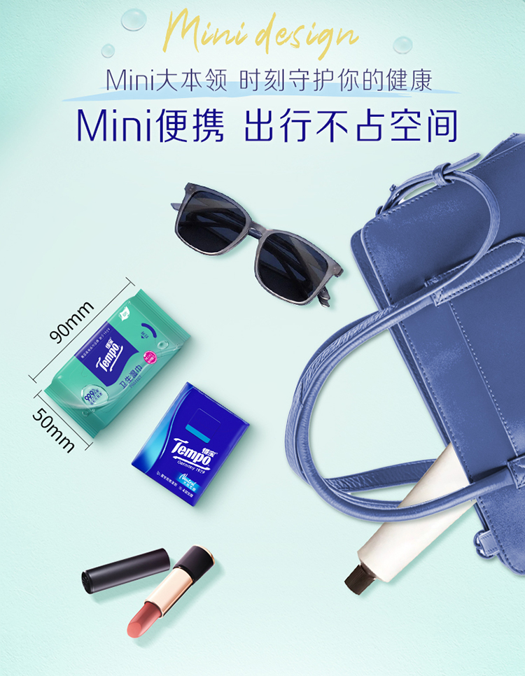 得宝(Tempo)迷你卫生湿巾8片/包*12小包 随身携带便携湿巾