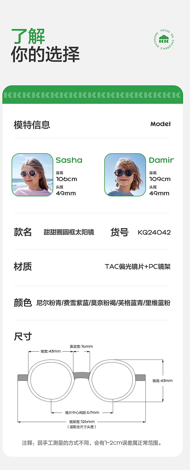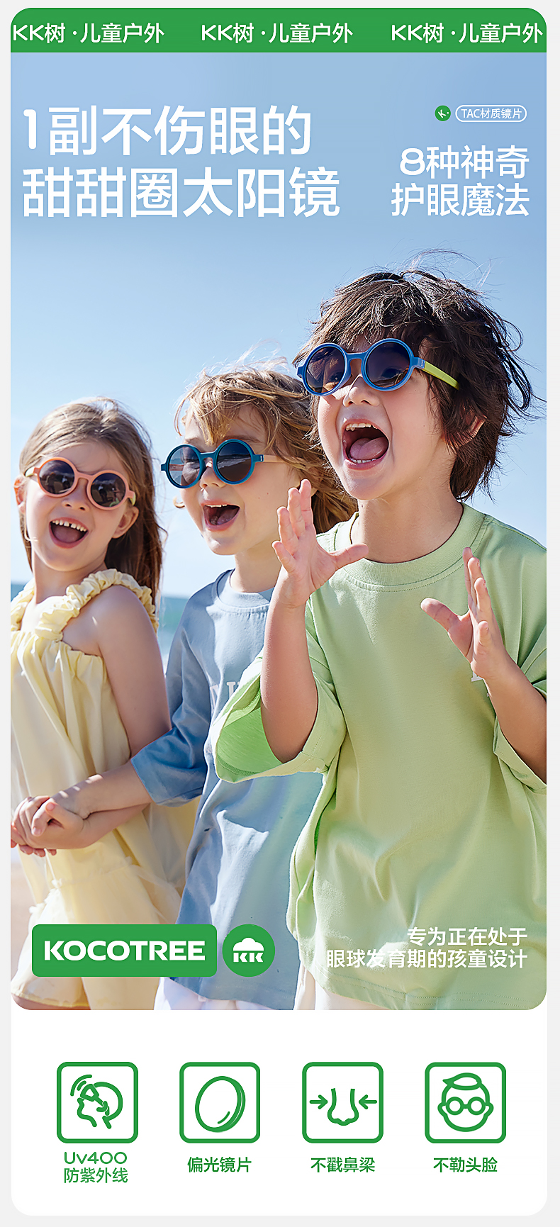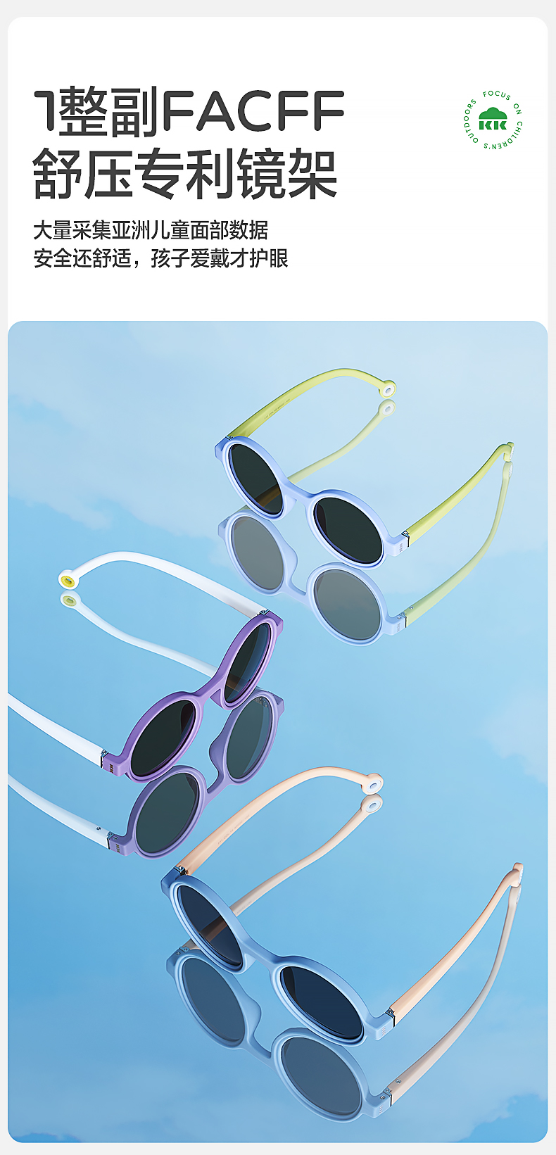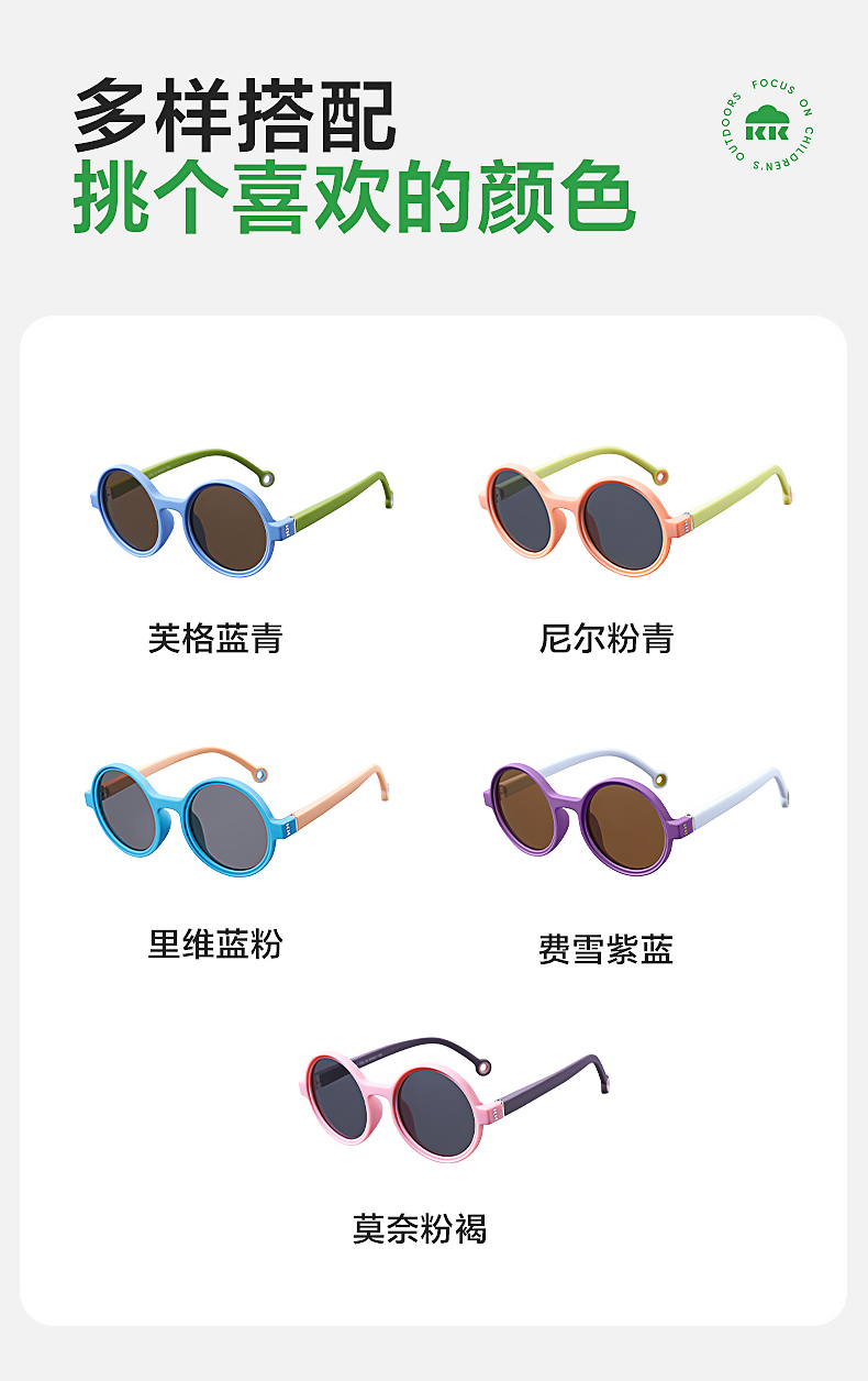 KK树不伤眼睛儿童墨镜男童防紫外线男女孩宝宝眼镜太阳镜防晒偏光甜甜圈圆框太阳镜