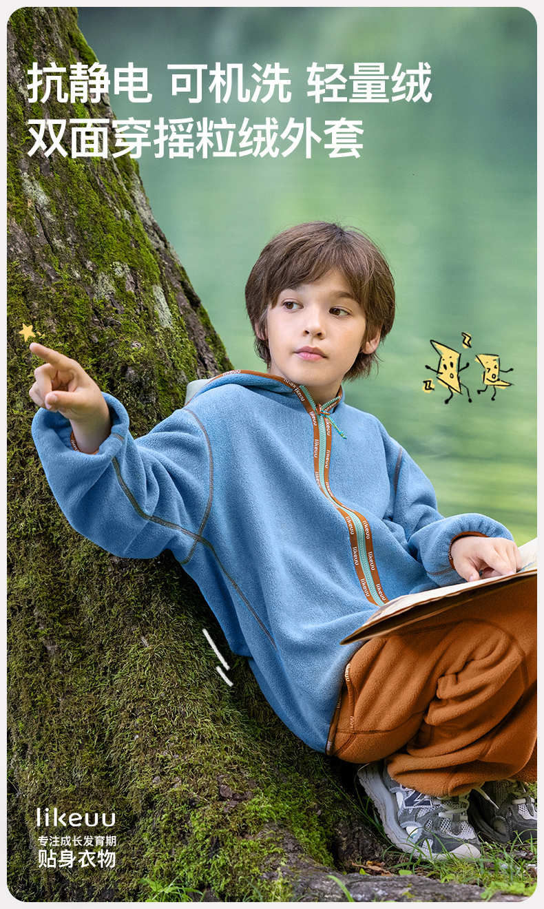likeuu男女童摇粒绒外套连帽双面穿保暖卫衣卫裤新款ZY